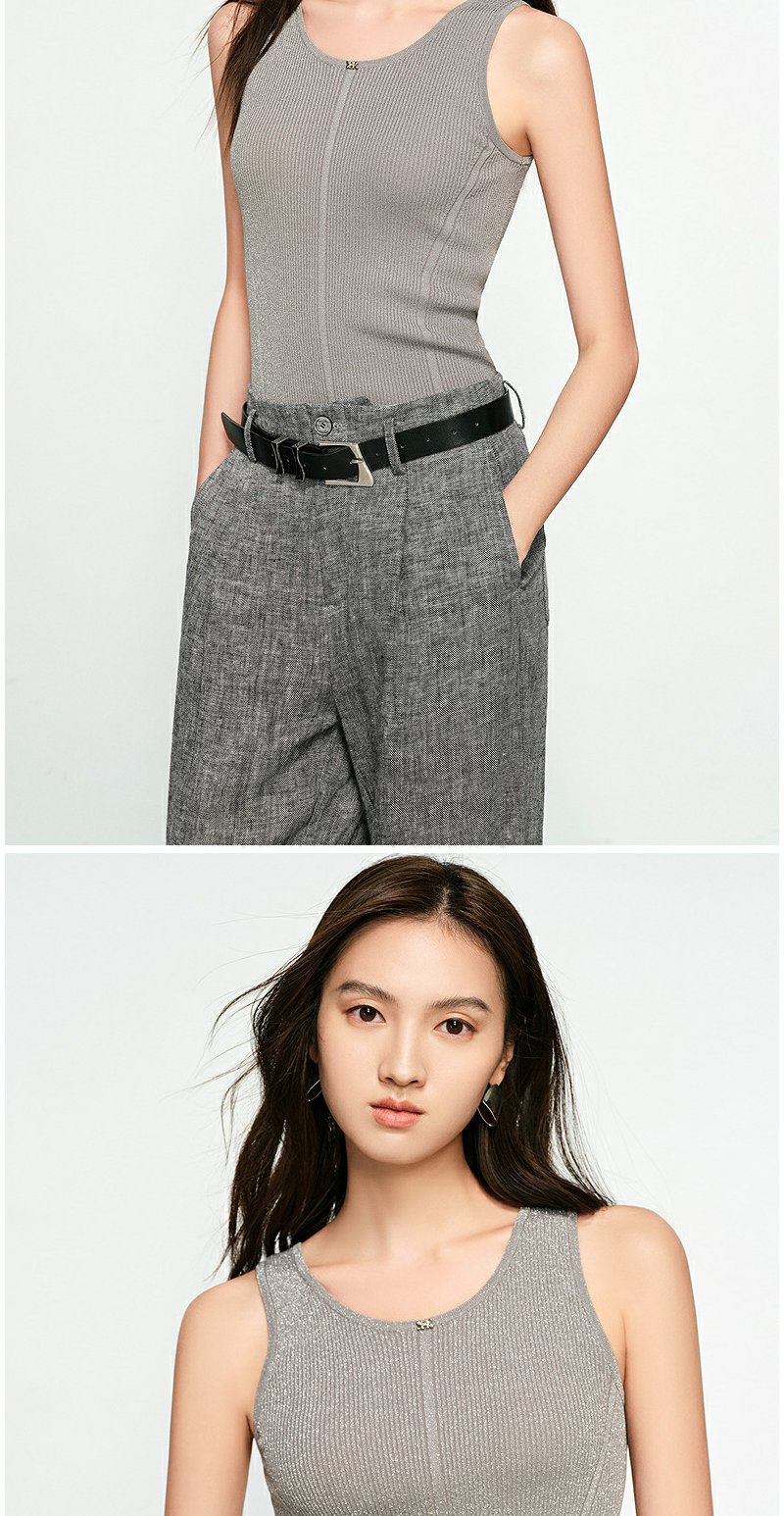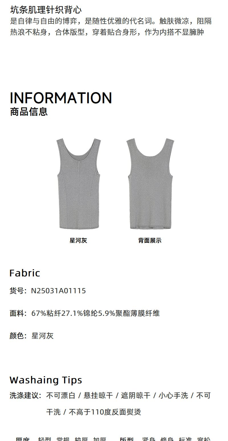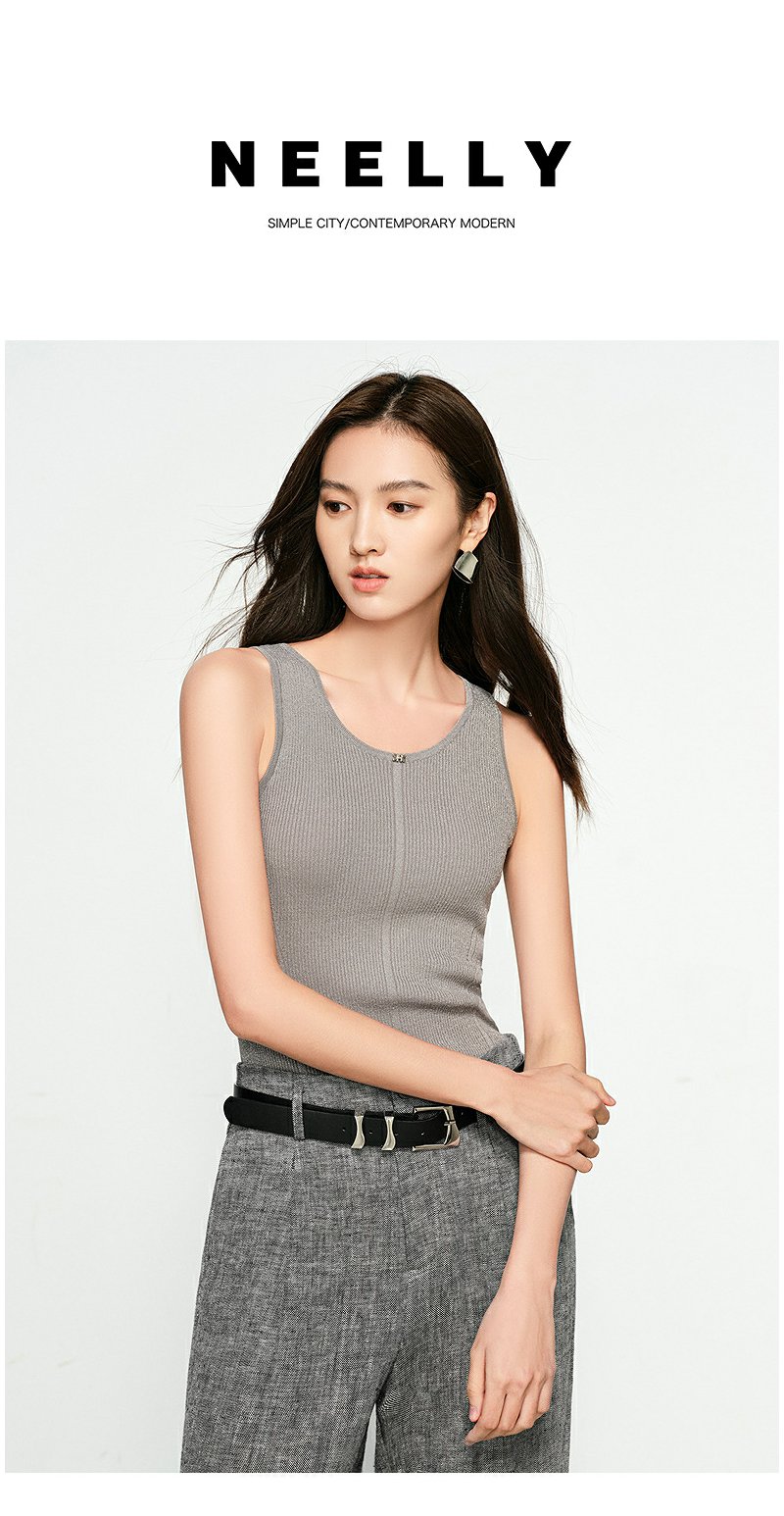 NEELLY纳俪商场同款春新款甜辣肌理吊带针织衫女时尚百搭修身背心N25031A01115