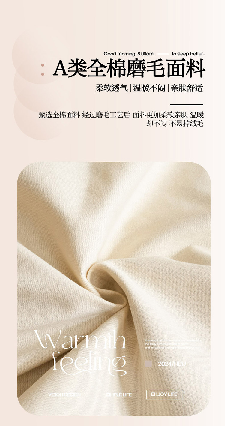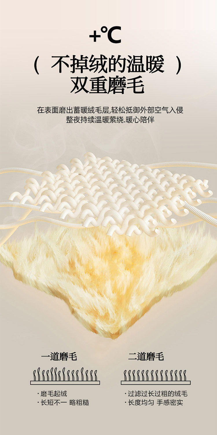 双重磨毛,绒絮厚密,有效抵御外部空气入侵,