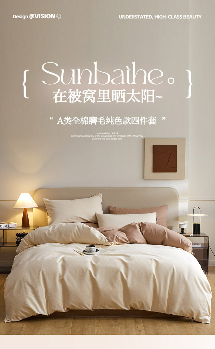 被窝里的暖阳触感:全棉磨毛纯色四件套