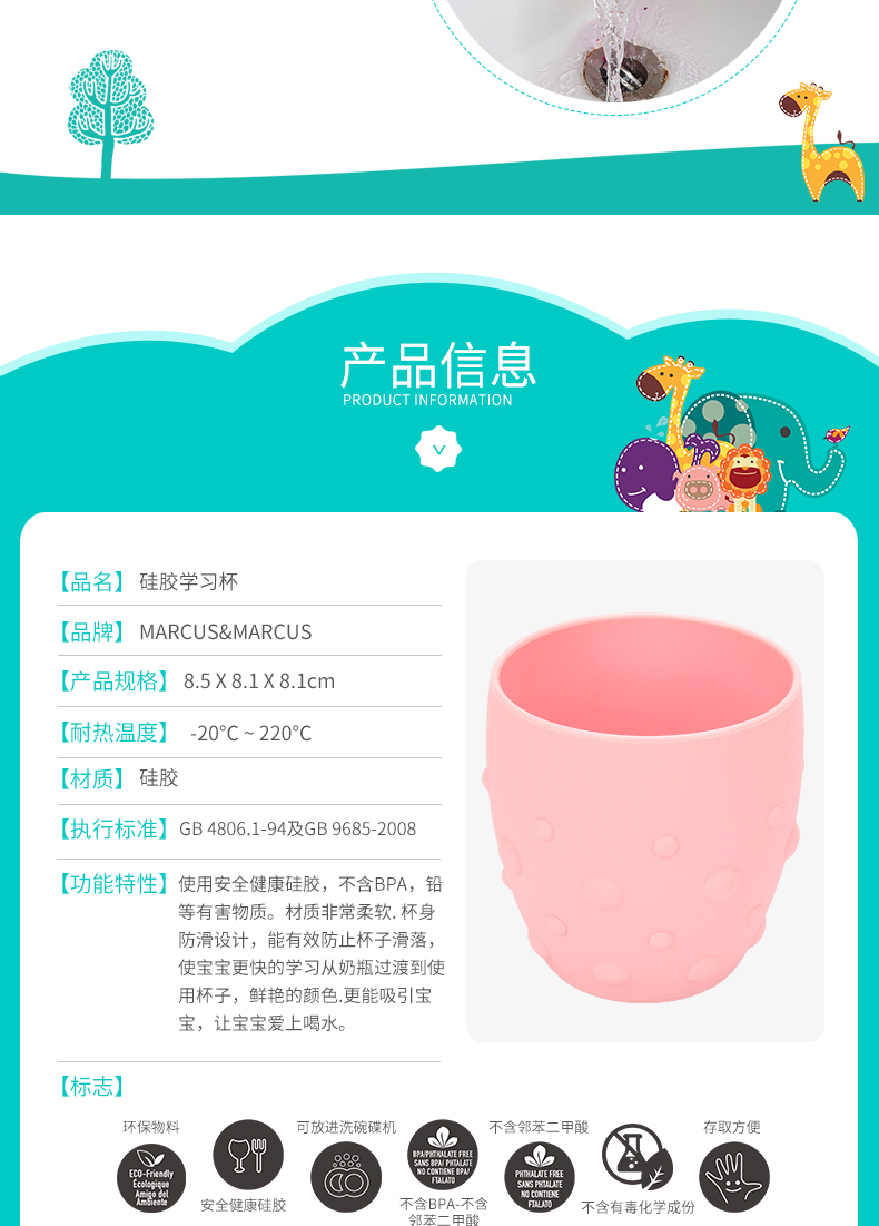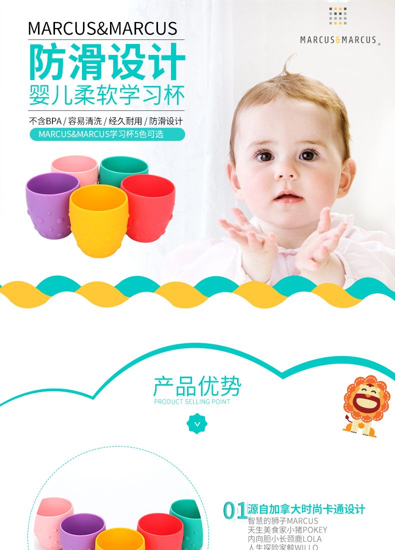 加拿大MARCUS&MARCUS硅胶学饮水杯【马库狮】