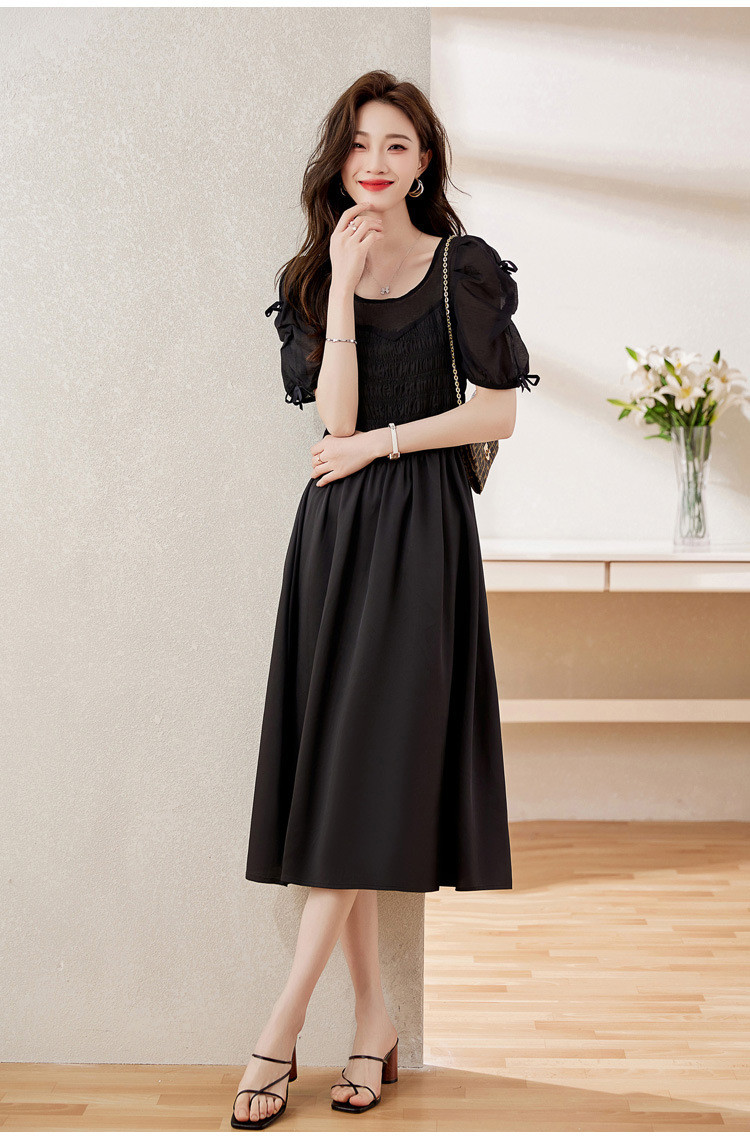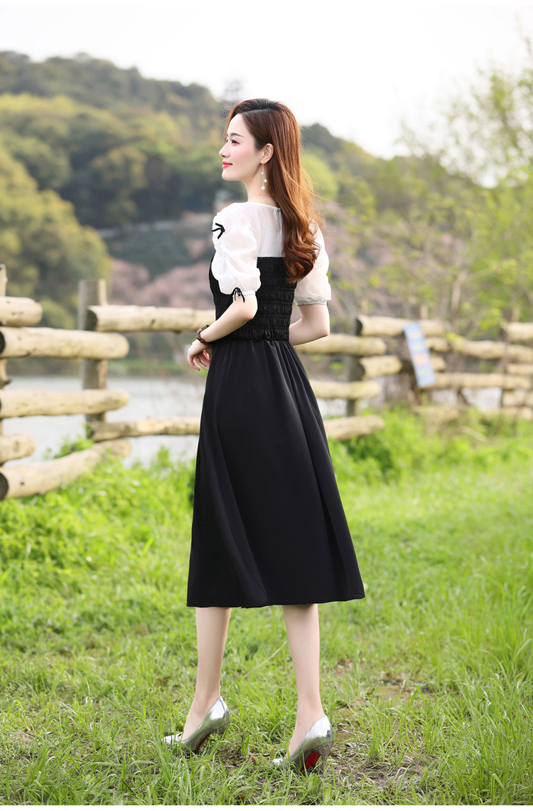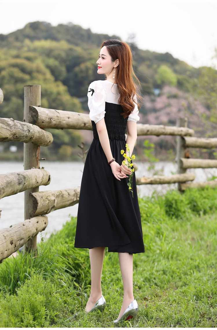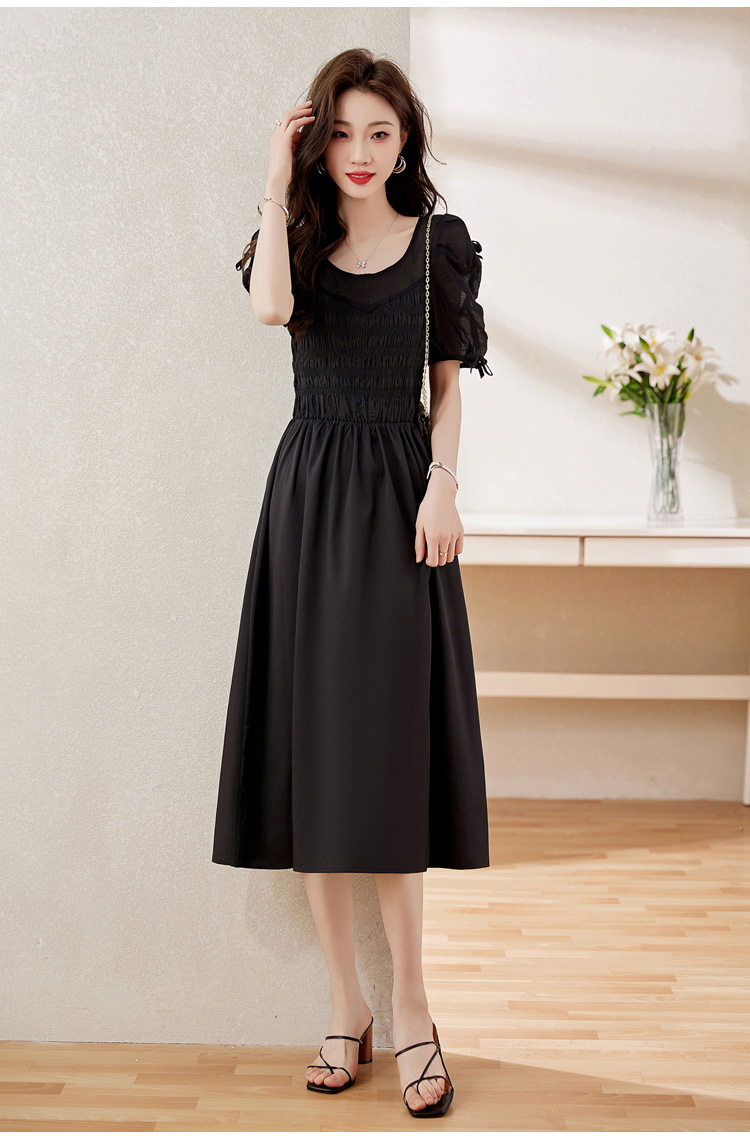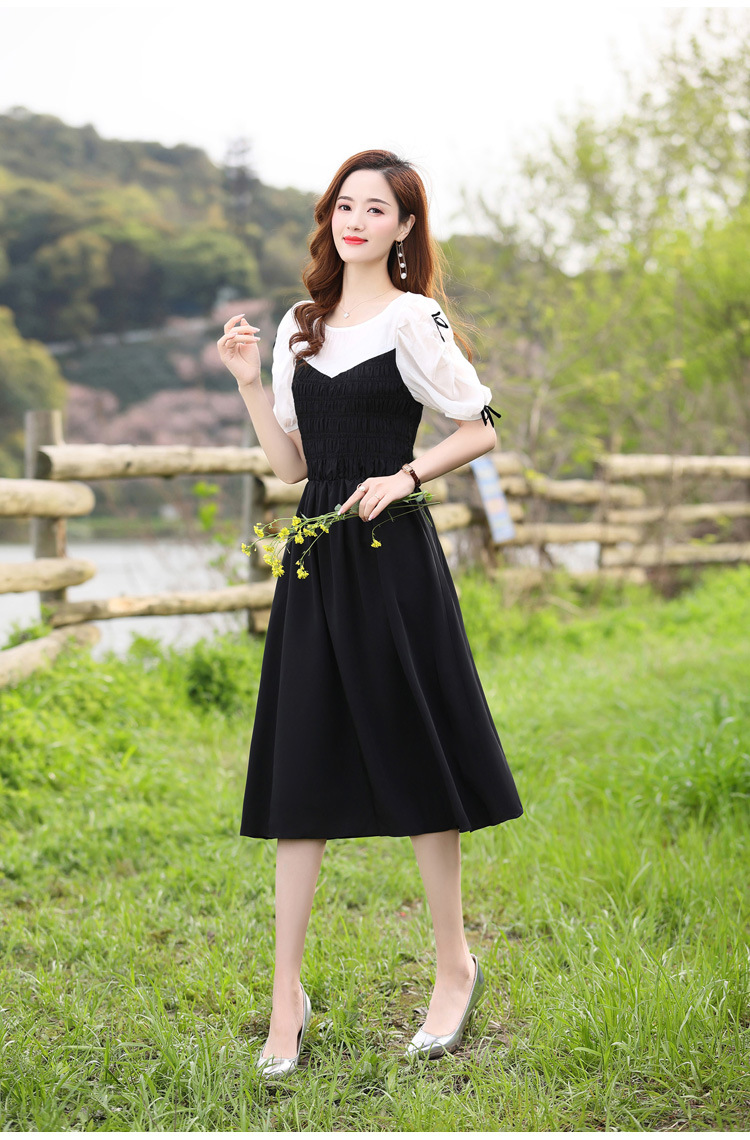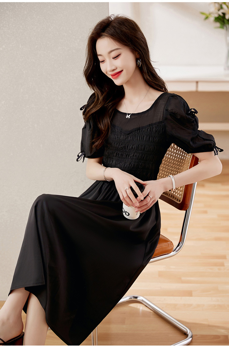 时尚潮流圆领气质通勤优雅蝴蝶结拼接连衣裙HR-WL22077-19