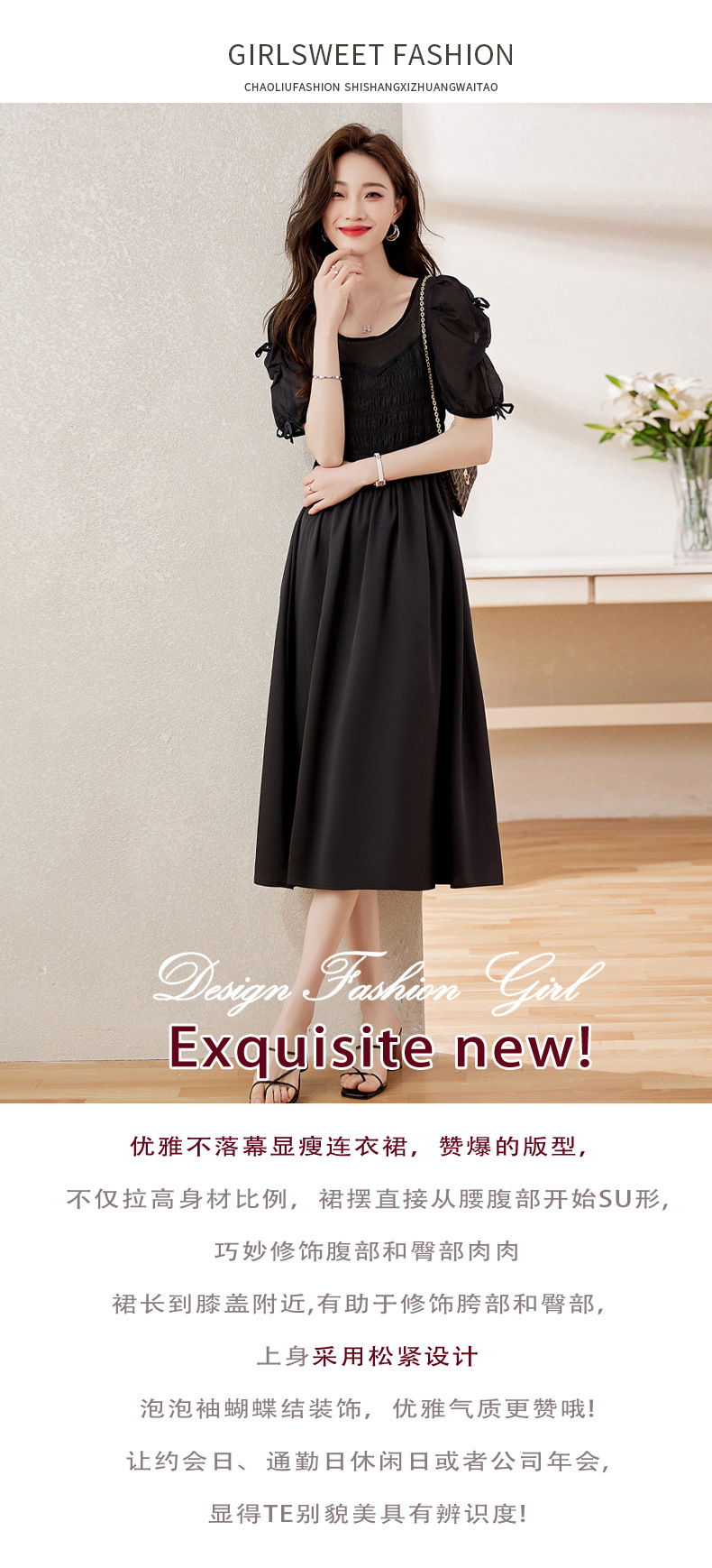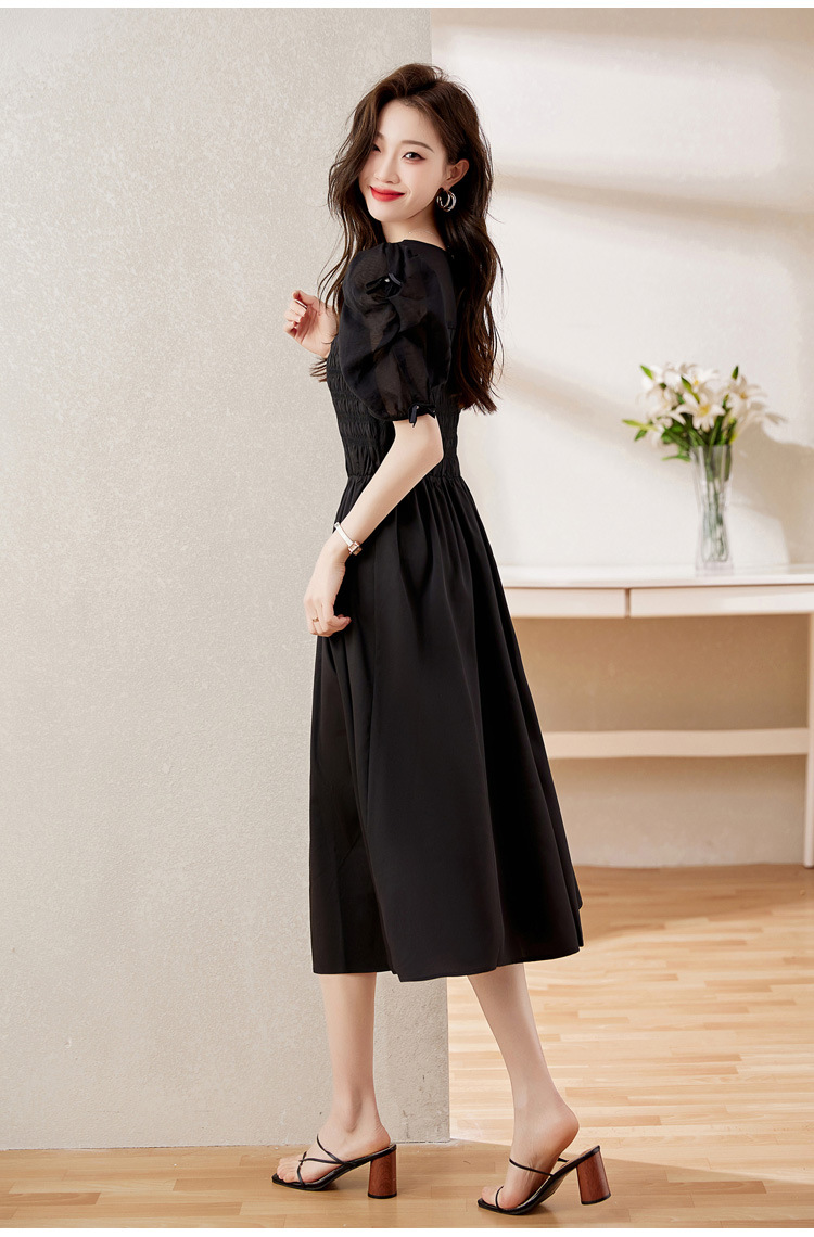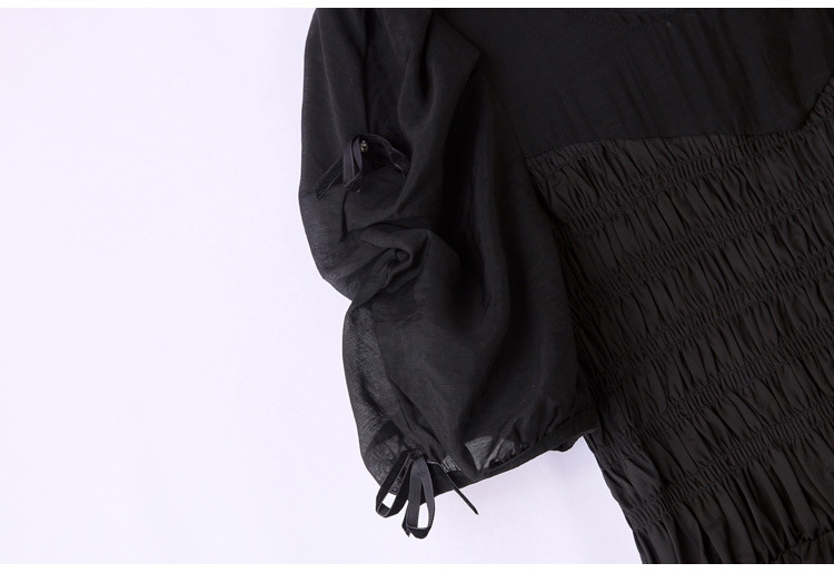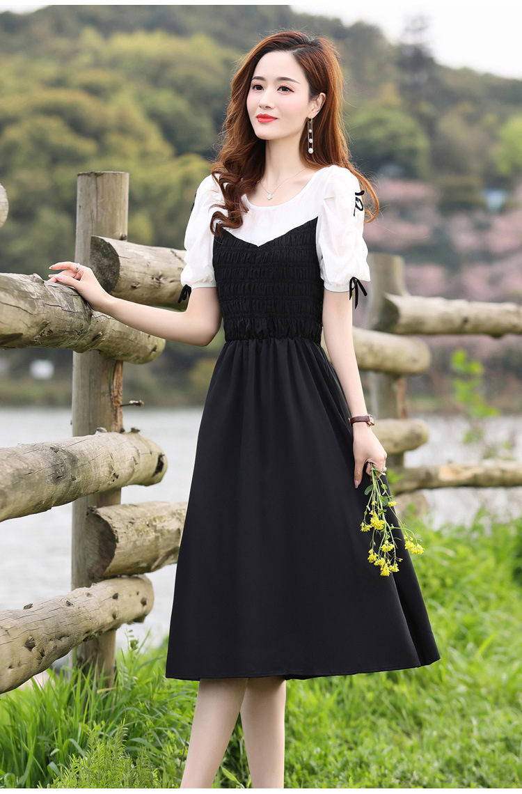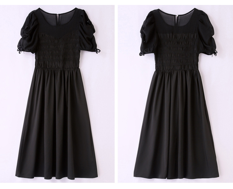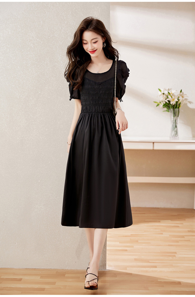 时尚潮流圆领气质通勤优雅蝴蝶结拼接连衣裙HR-WL22077-19