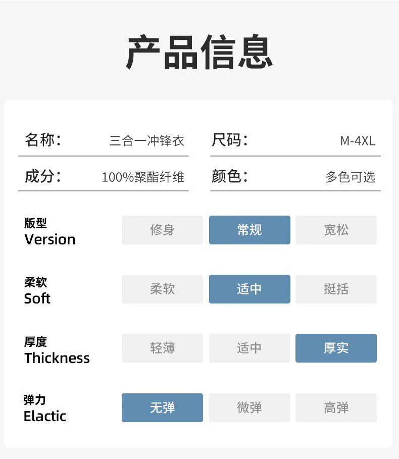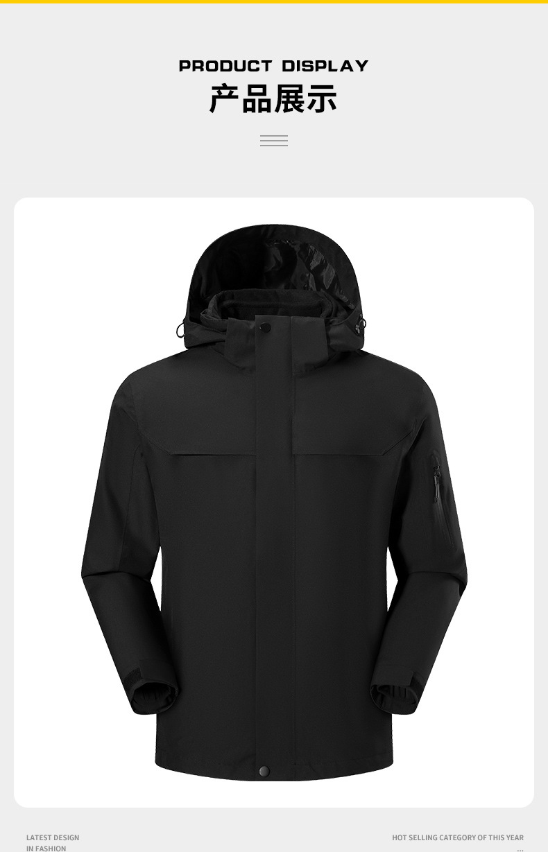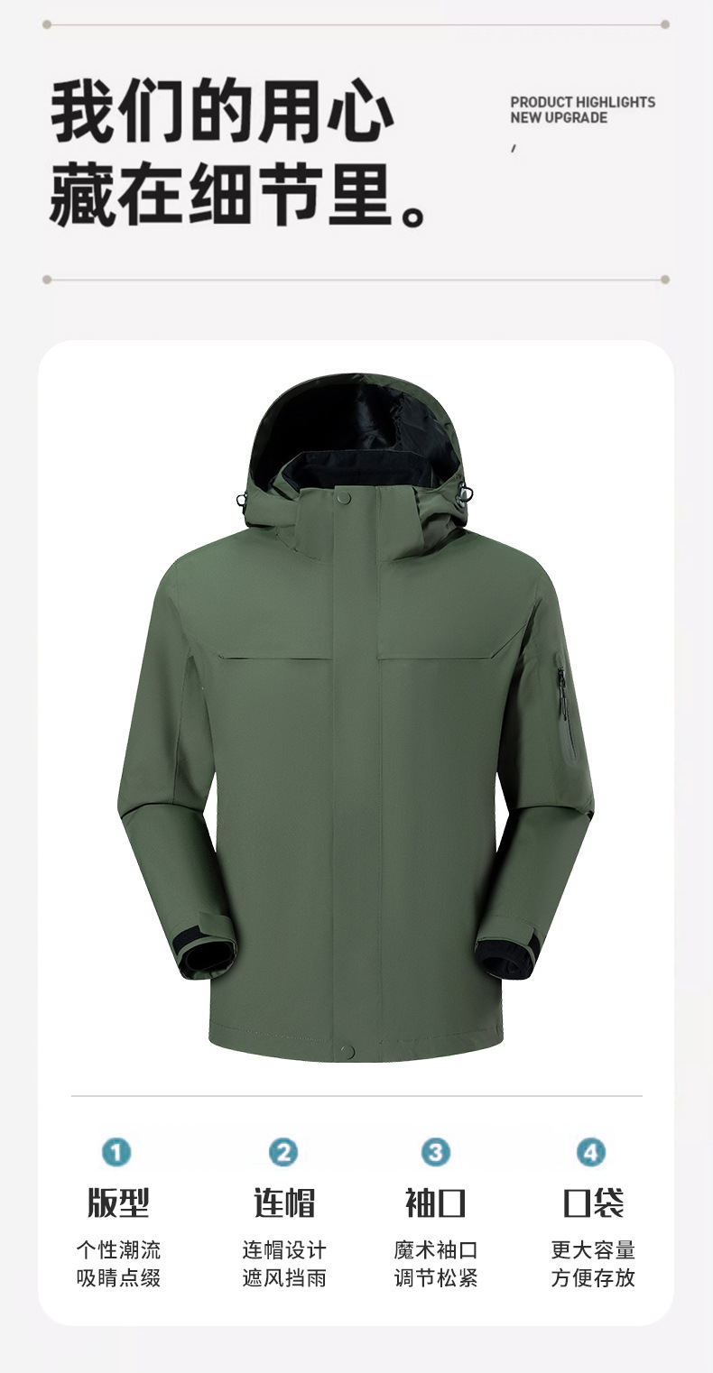 GB-T32614-2023标准冲锋衣核心重点:防水 防风 防寒 透湿4大功能,整件成衣面料的接缝处用12mm防水压胶条处理门襟和外部口袋,均做好防水结构细节。
