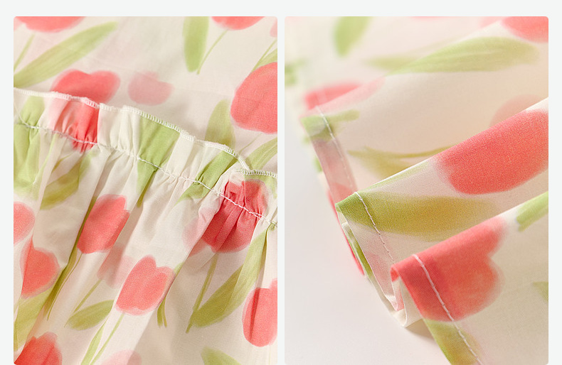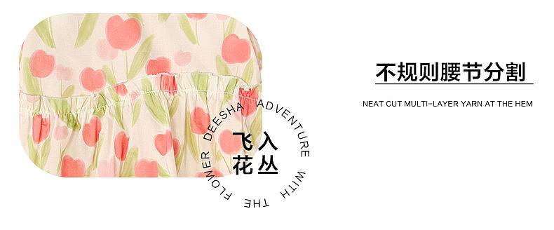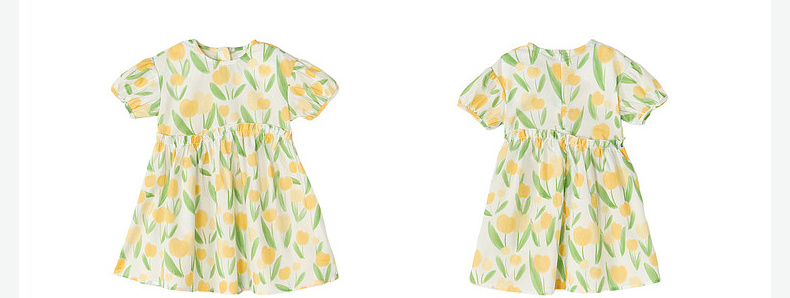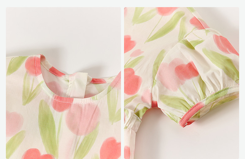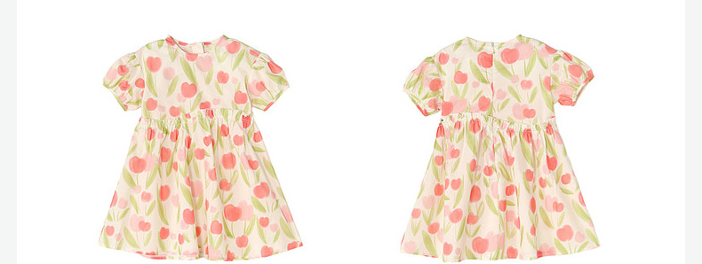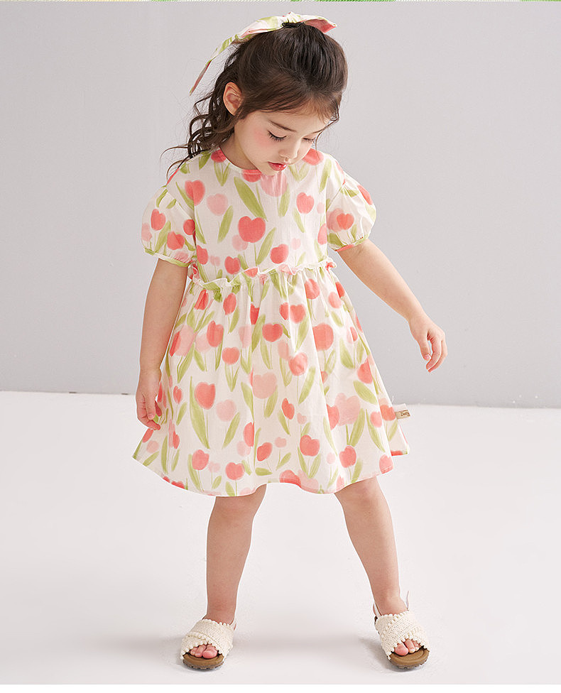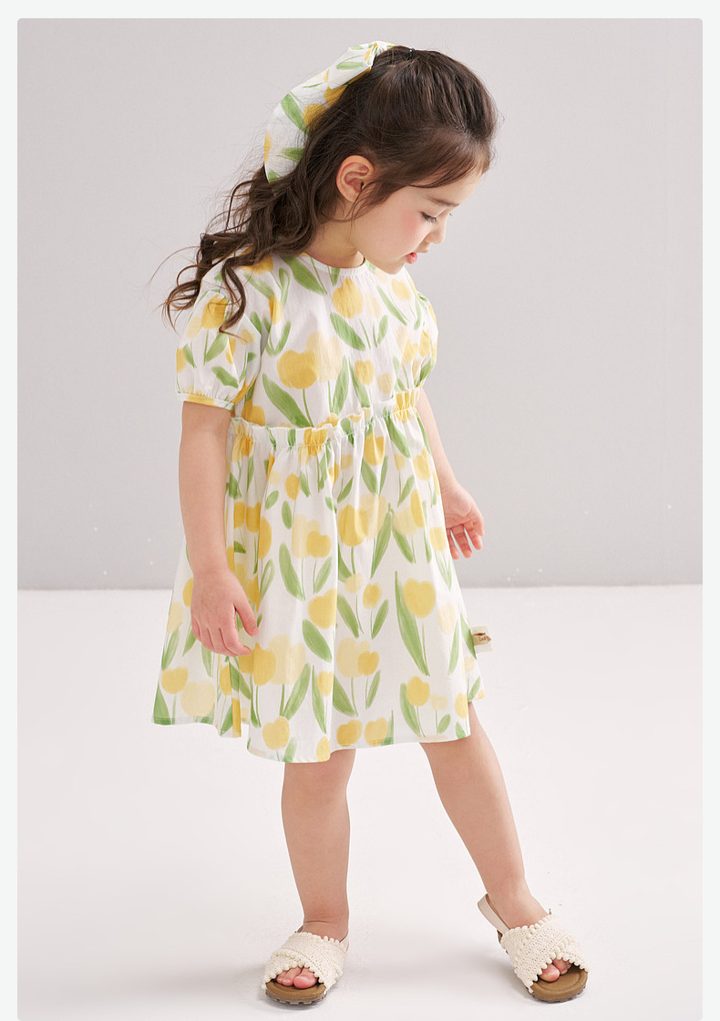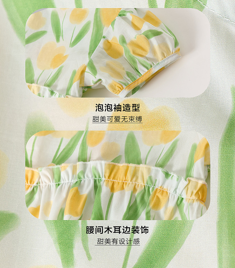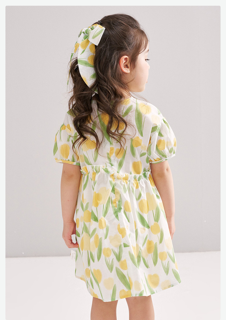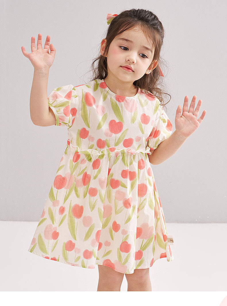 笛莎/Deesha 【松饼熊】2026年夏季新款女童泡泡袖水彩风花朵印花棉布连衣裙