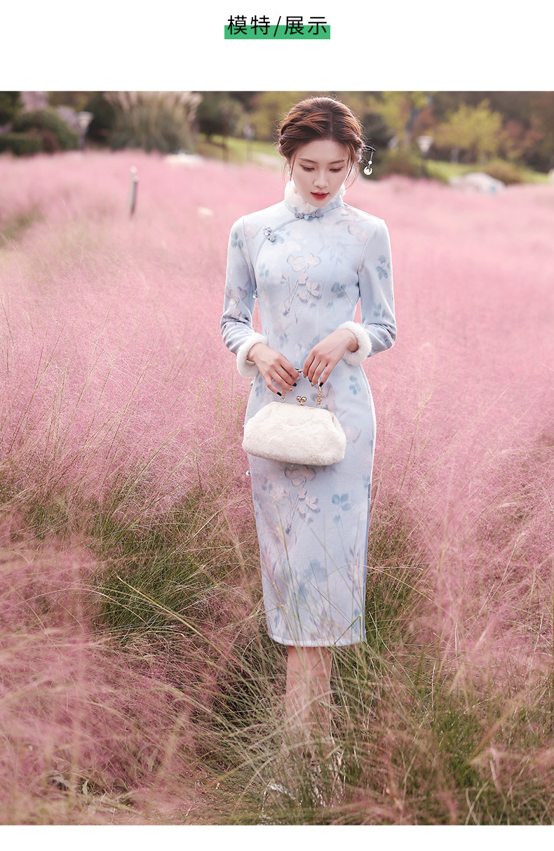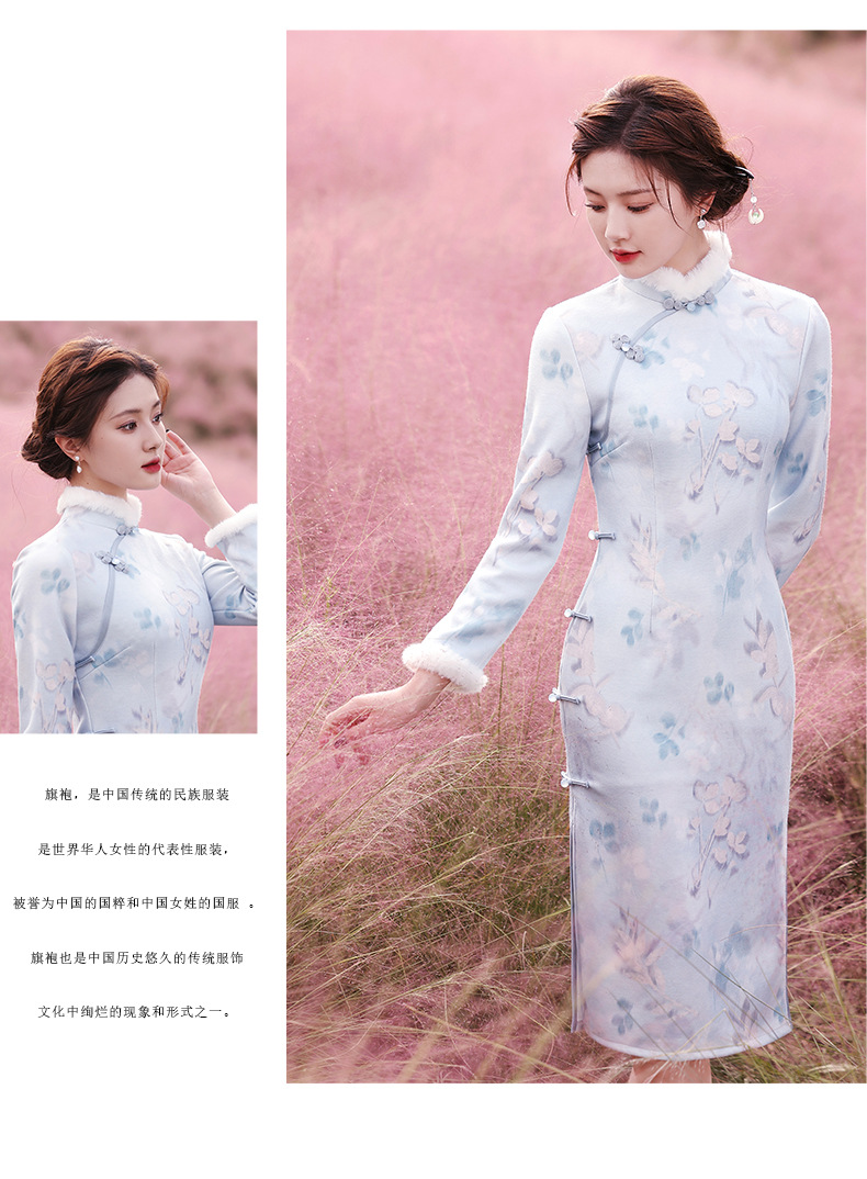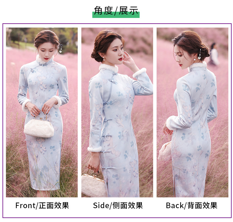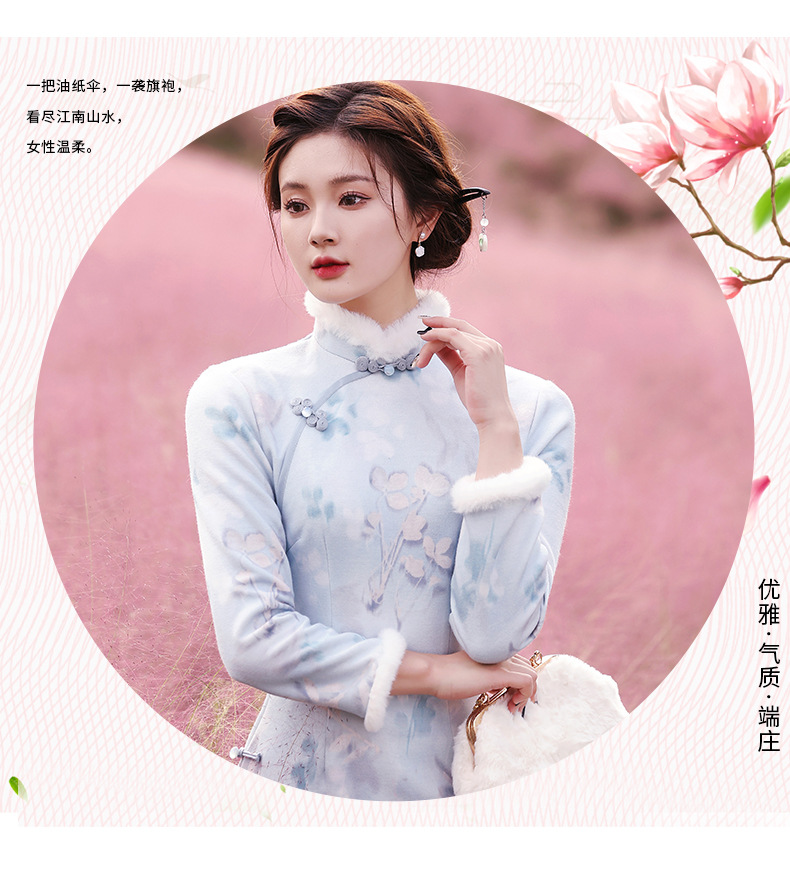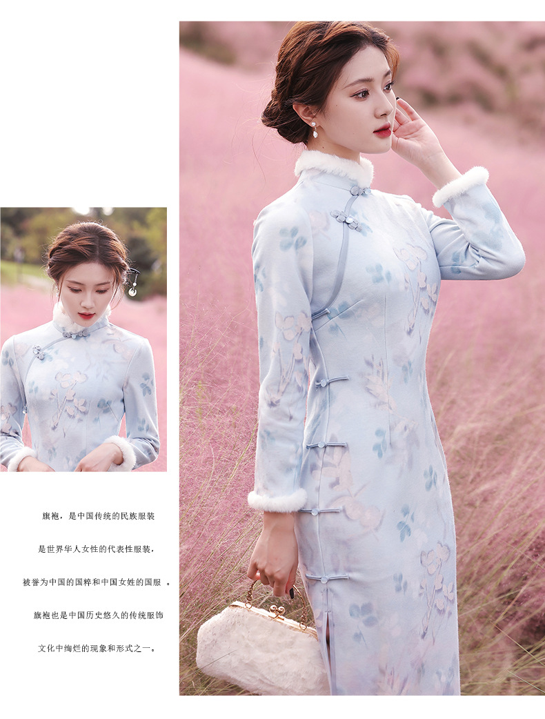 曼丽绒长款温婉少女,毛茸茸日常文艺风气质旗袍MLS-6821