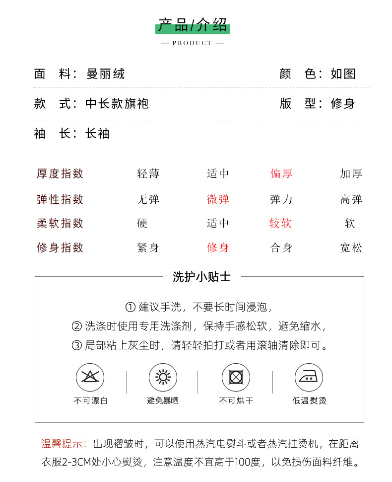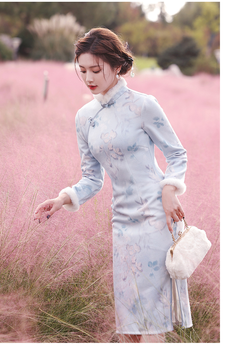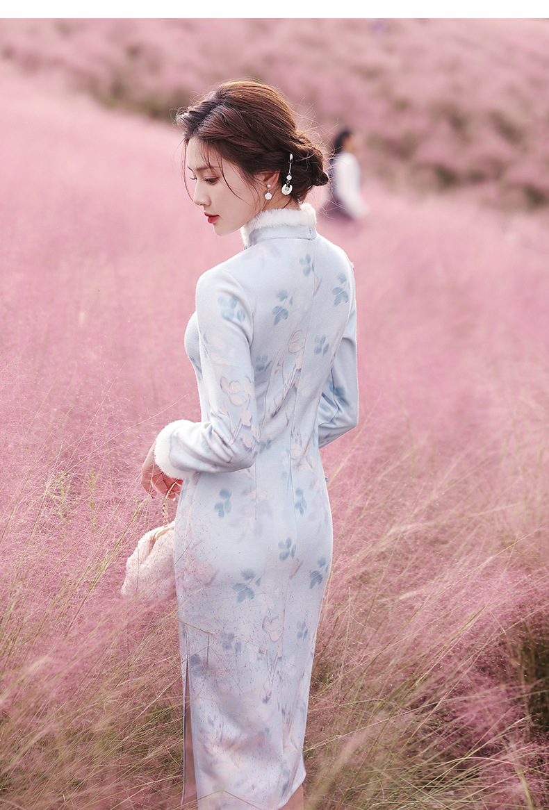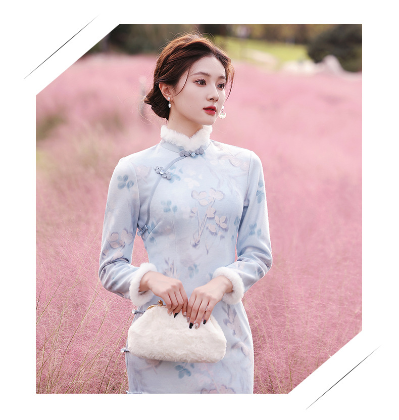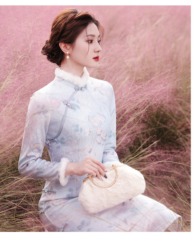 曼丽绒长款温婉少女,毛茸茸日常文艺风气质旗袍MLS-6821