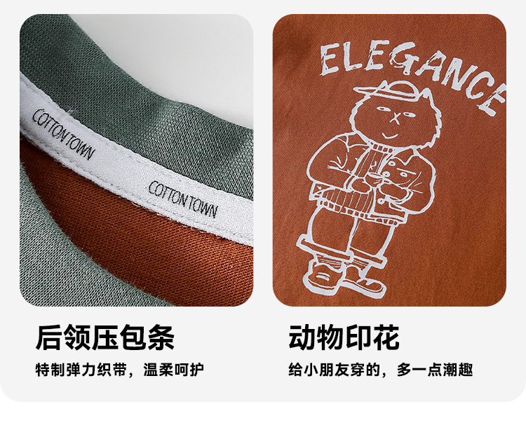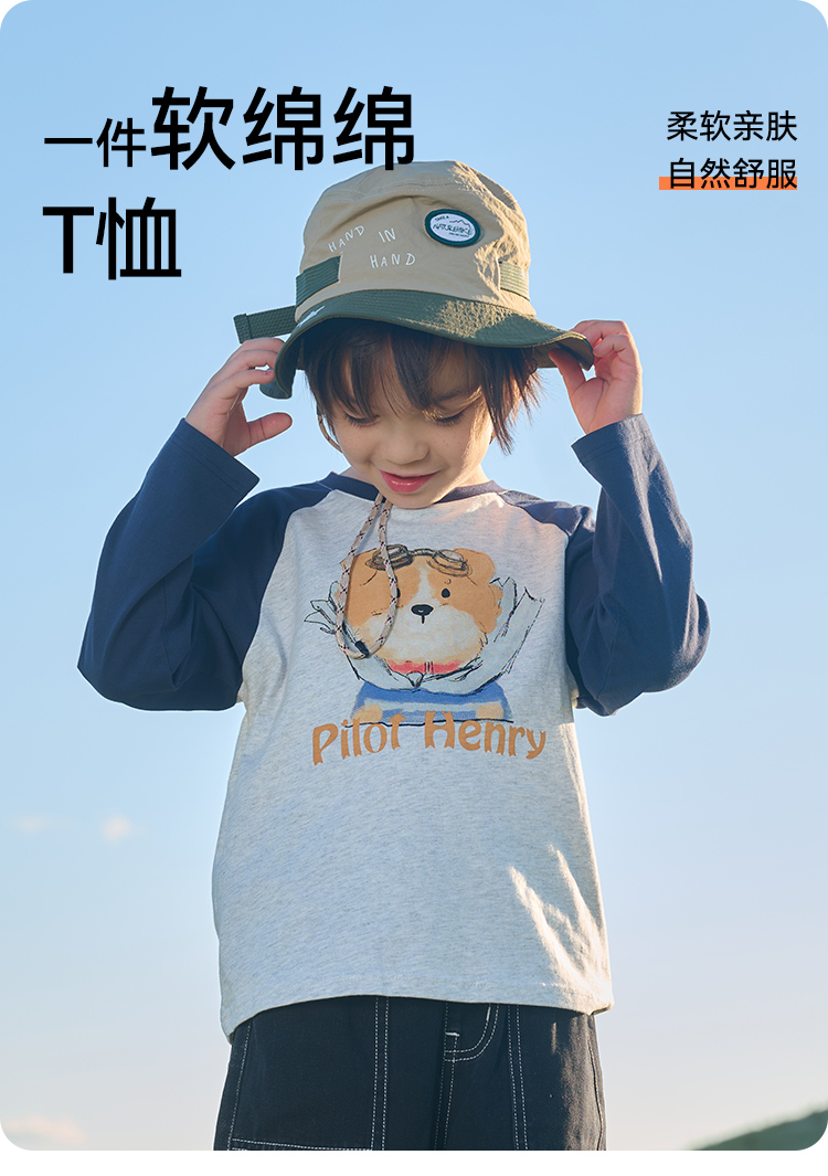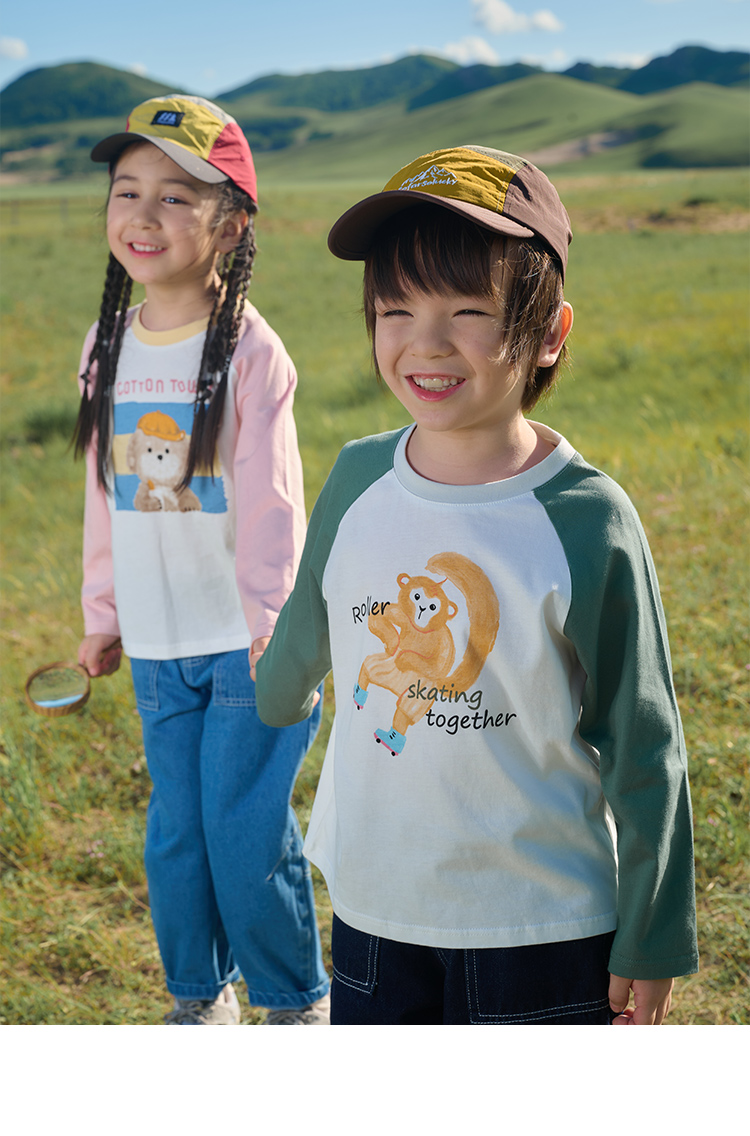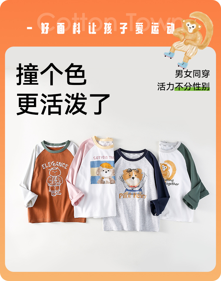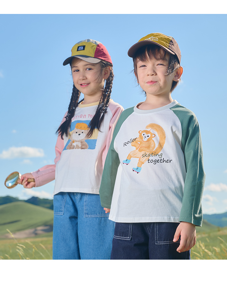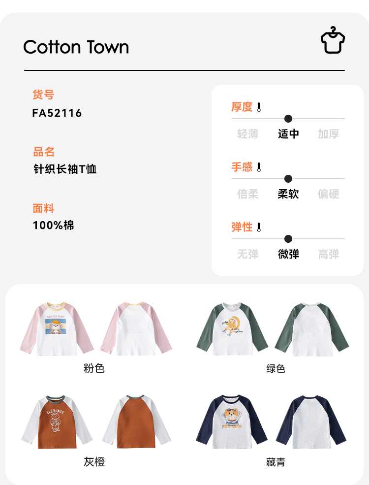 【纯棉防螨不起球】棉花堂25年春秋款纯棉透气动物长袖童装T恤——FA52116