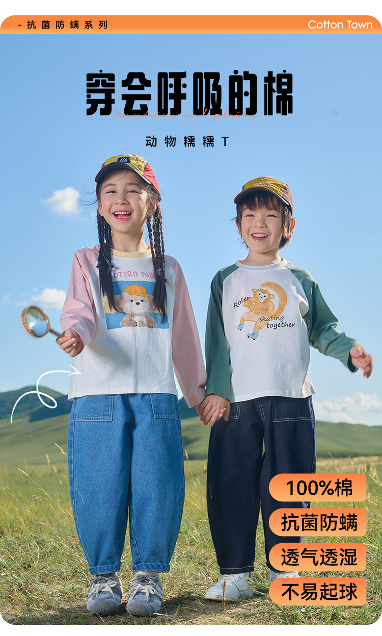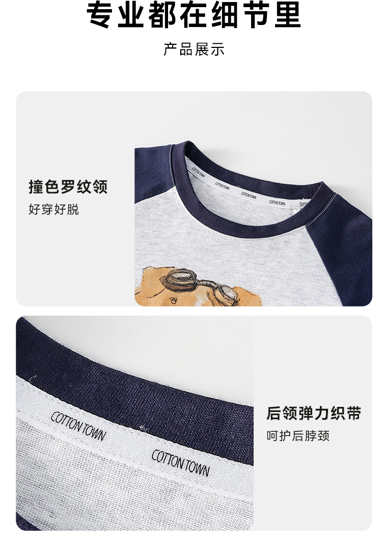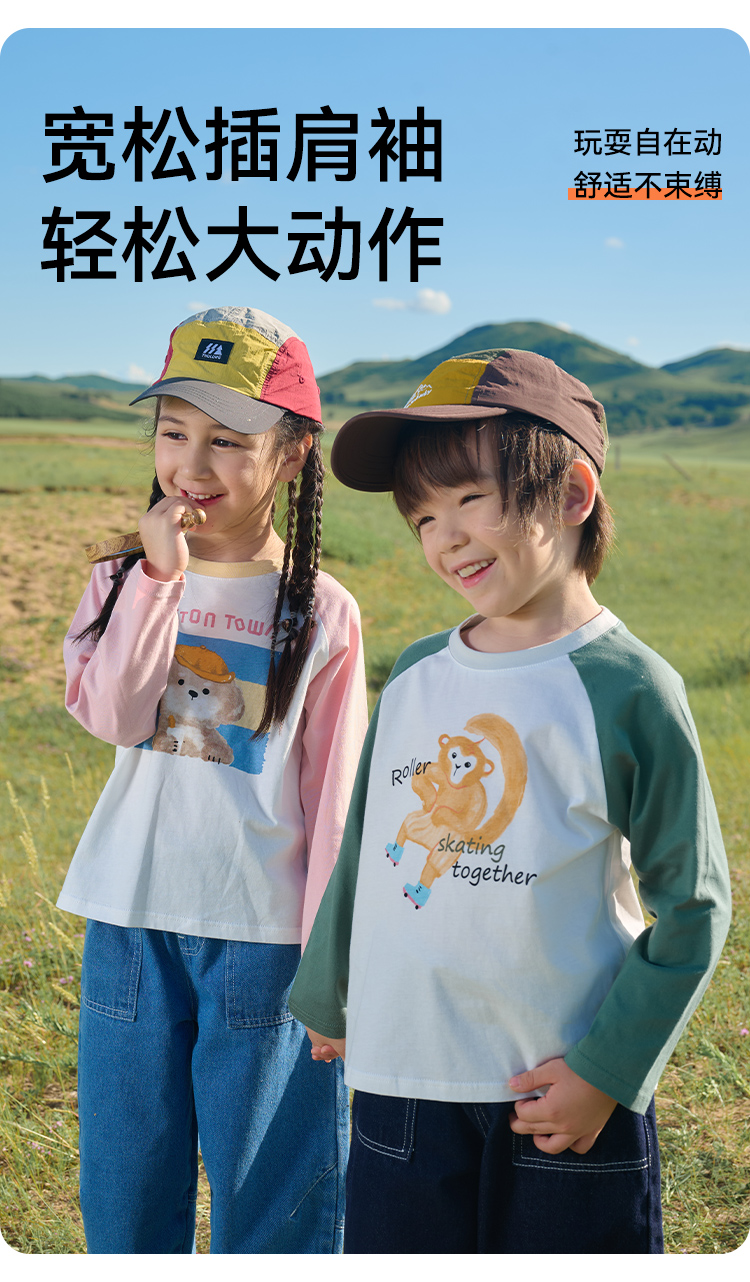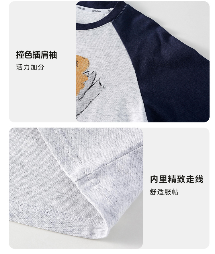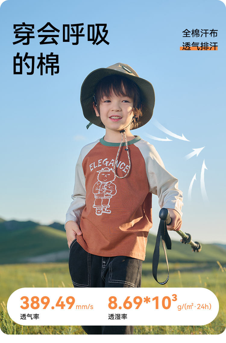 【纯棉防螨不起球】棉花堂25年春秋款纯棉透气动物长袖童装T恤——FA52116
