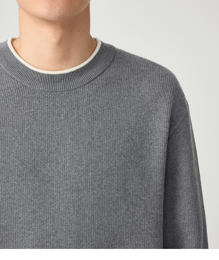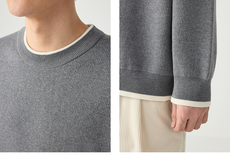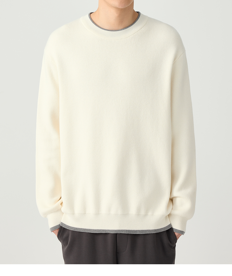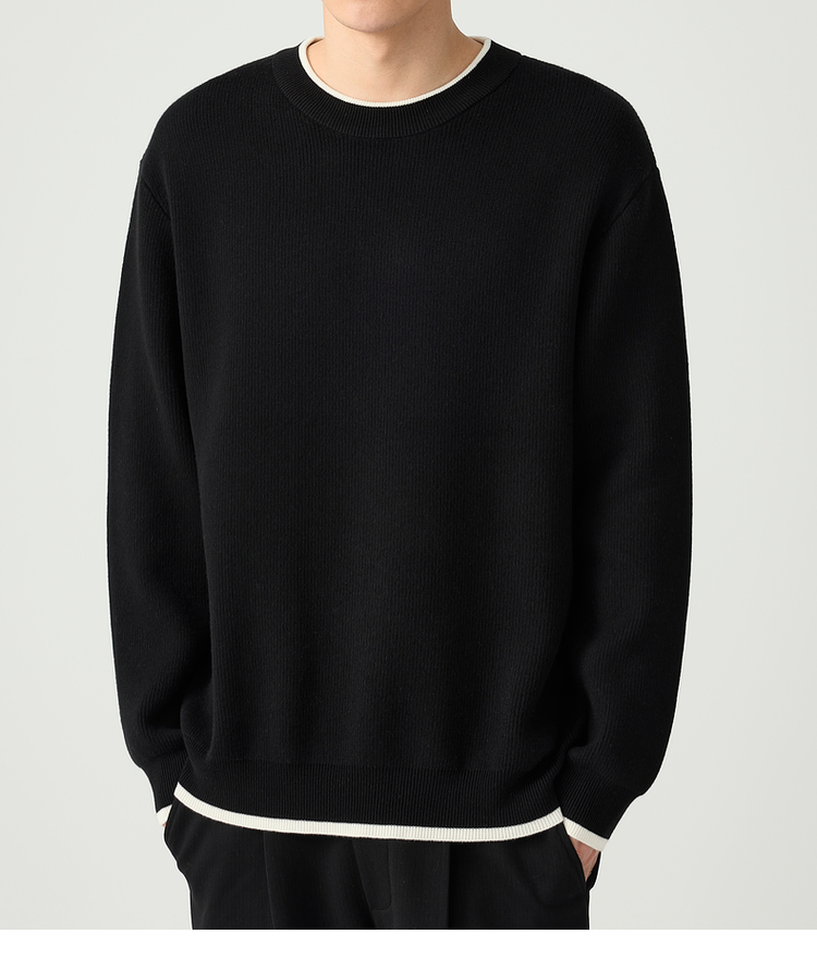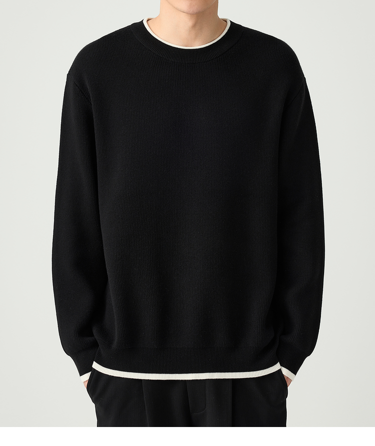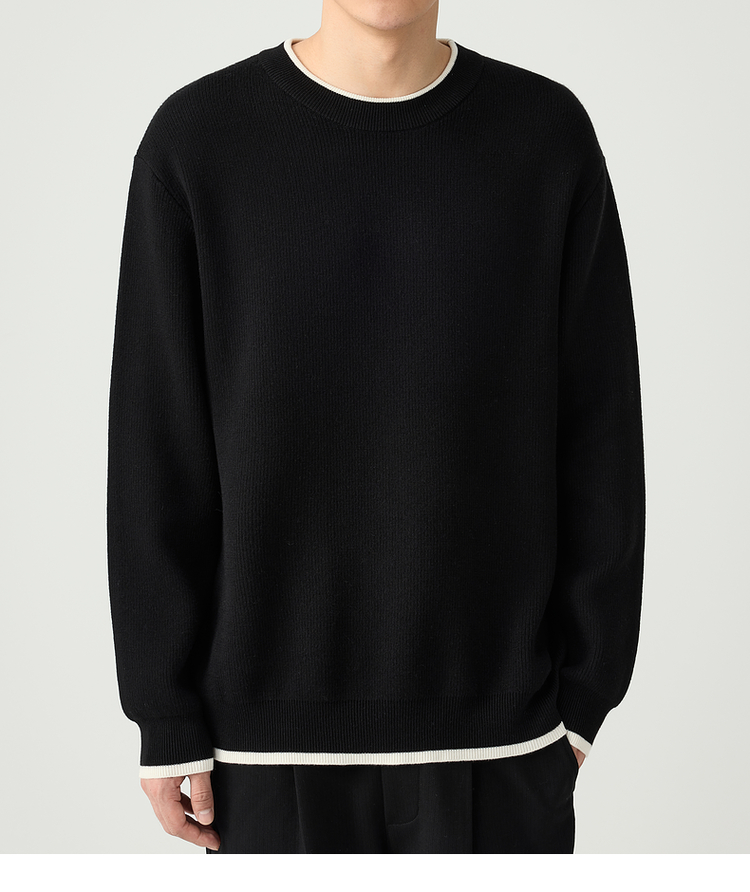 墨麦客 远红外升温 男士圆领针织衫秋冬新款休闲撞色毛衣男20579