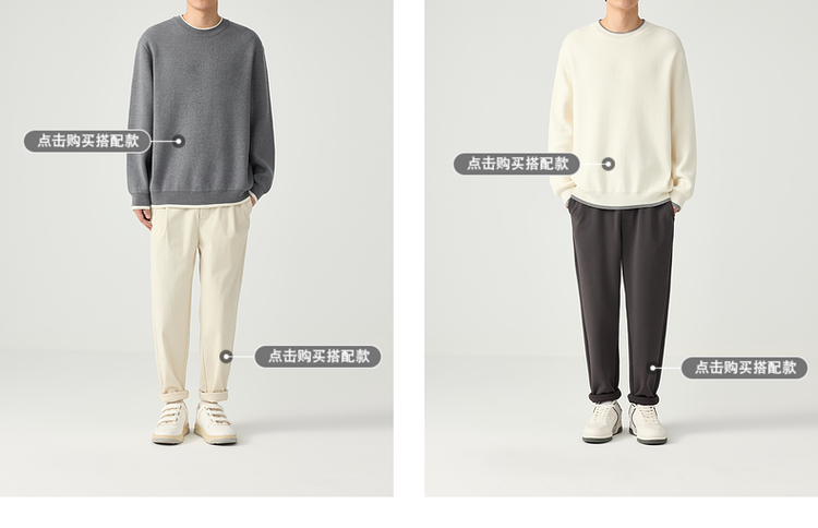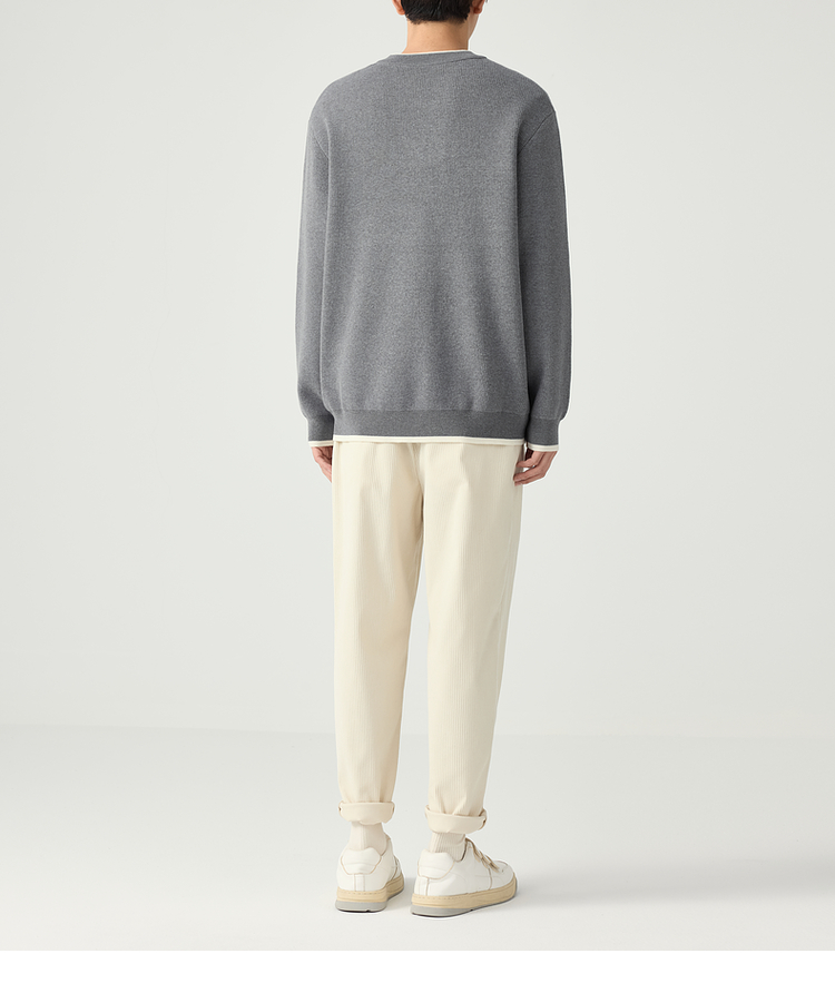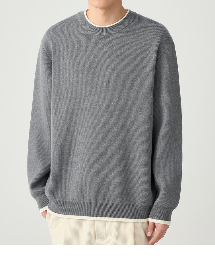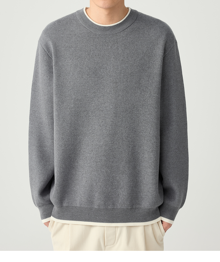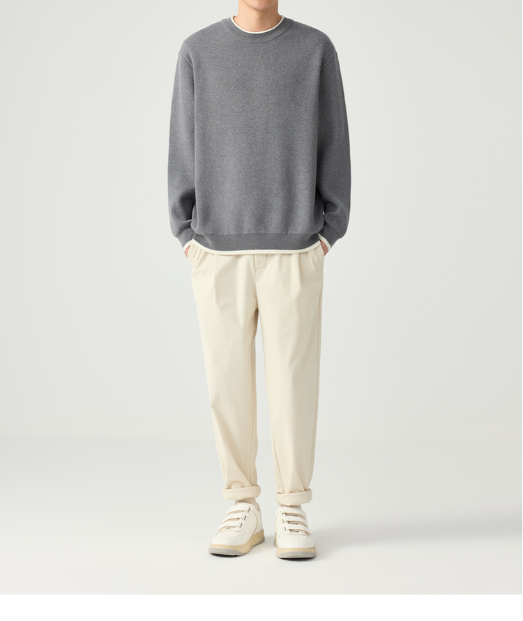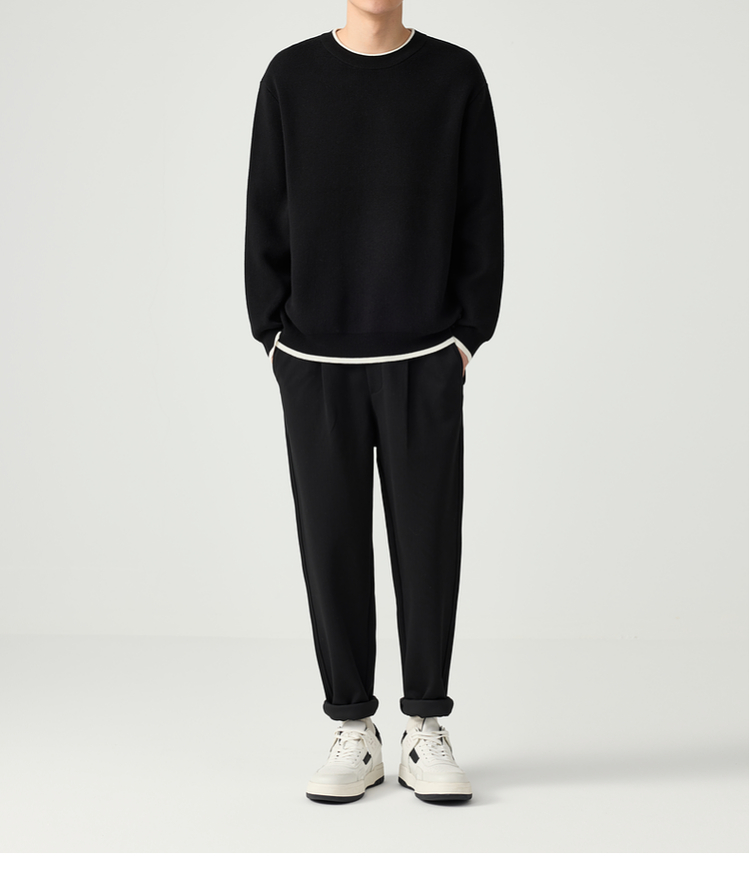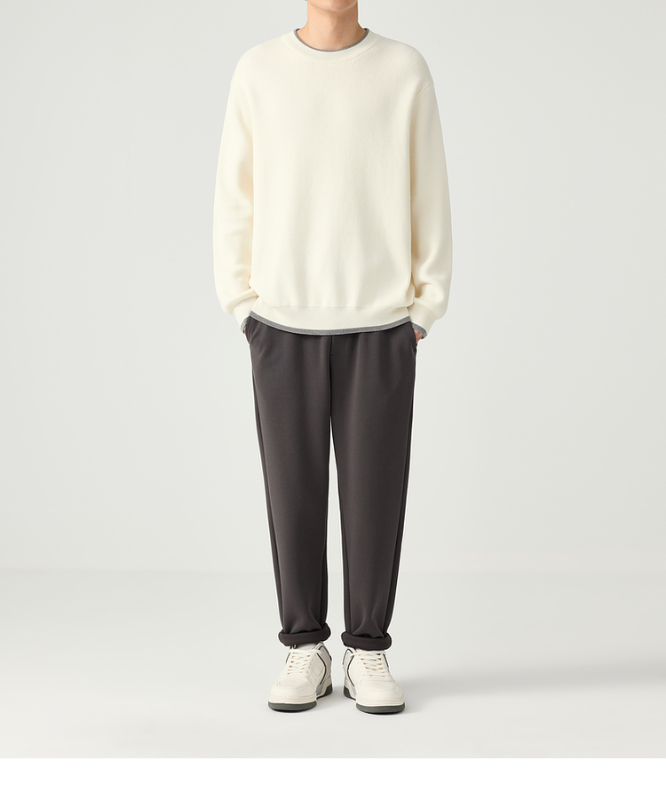 墨麦客 远红外升温 男士圆领针织衫秋冬新款休闲撞色毛衣男20579