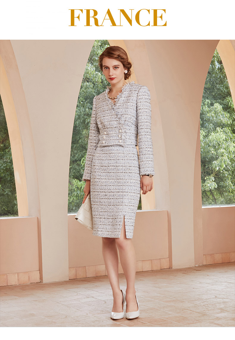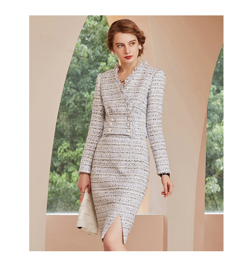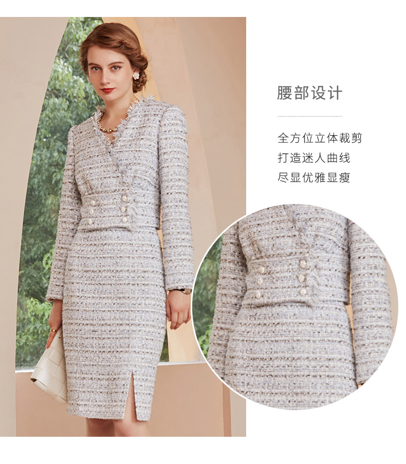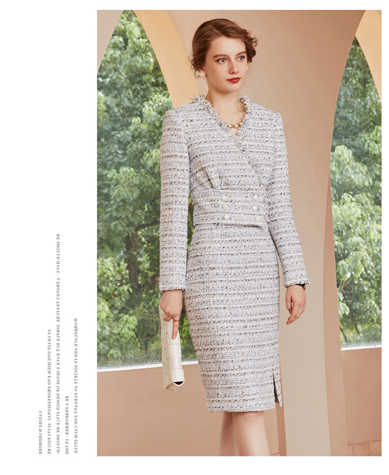IWY/蓝色粗花呢小香风西服西装套裙女职业商务通勤C1031+S1027