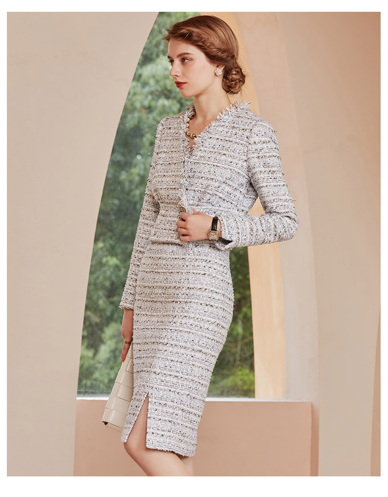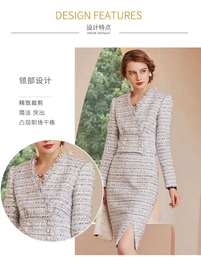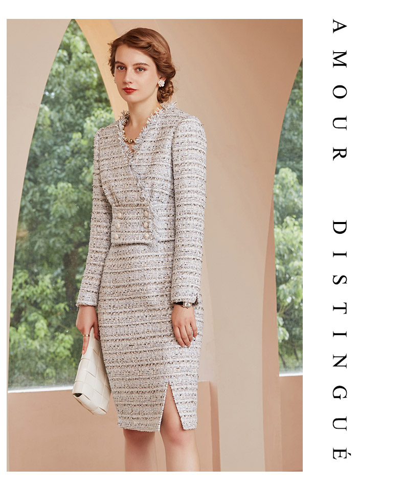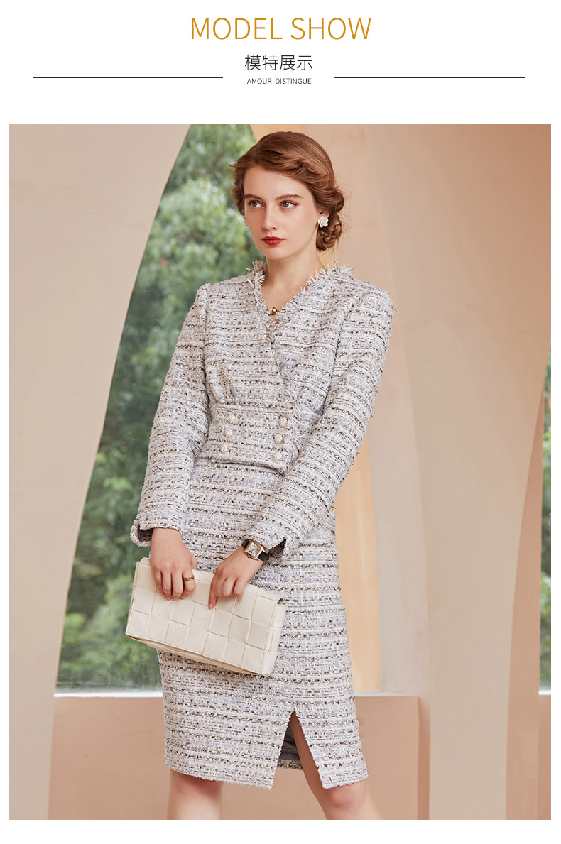 IWY/蓝色粗花呢小香风西服西装套裙女职业商务通勤C1031+S1027