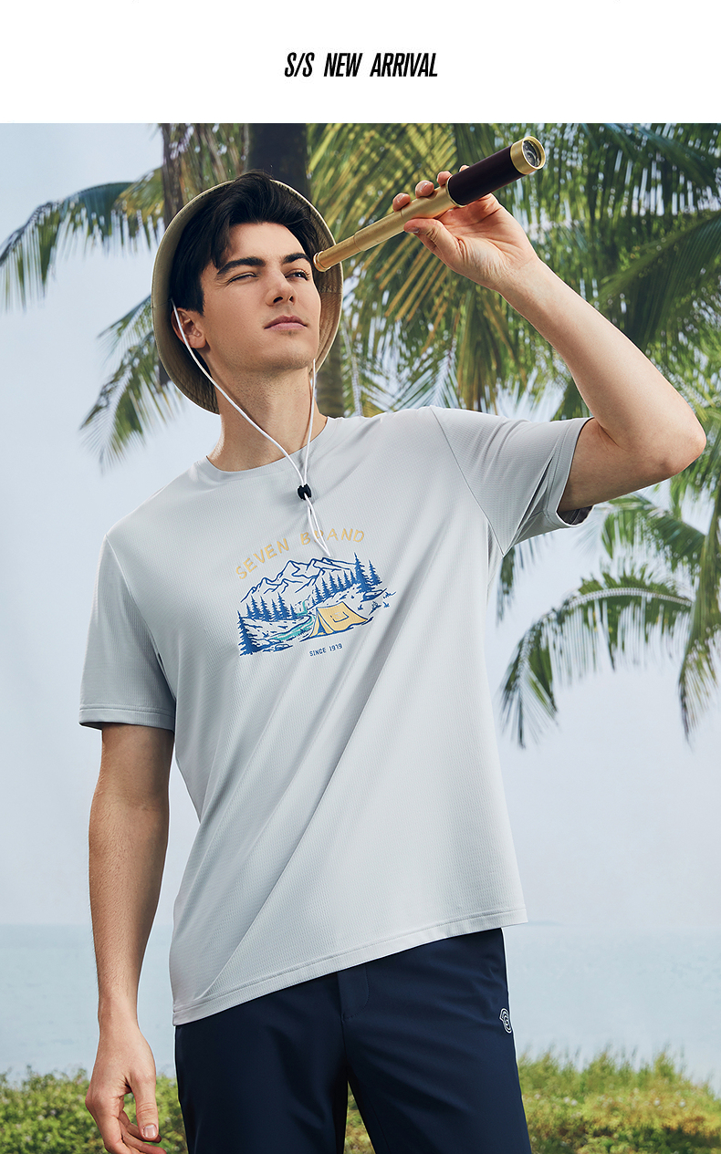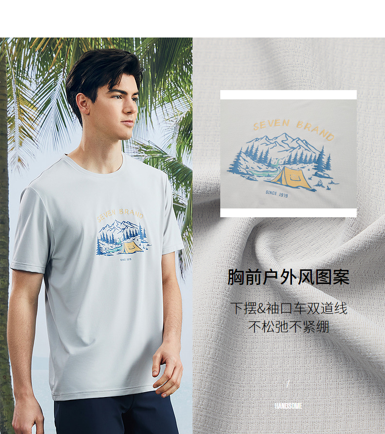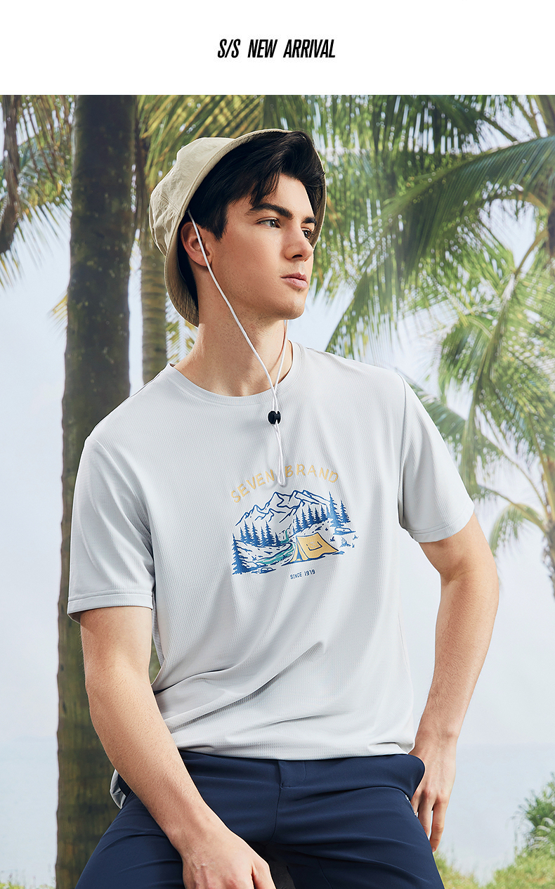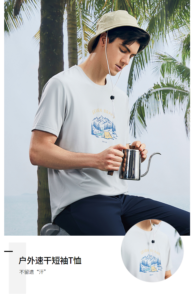 柒牌速干短袖T恤男2024夏季新款时尚百搭中青年休闲圆领体恤上衣 126T73330