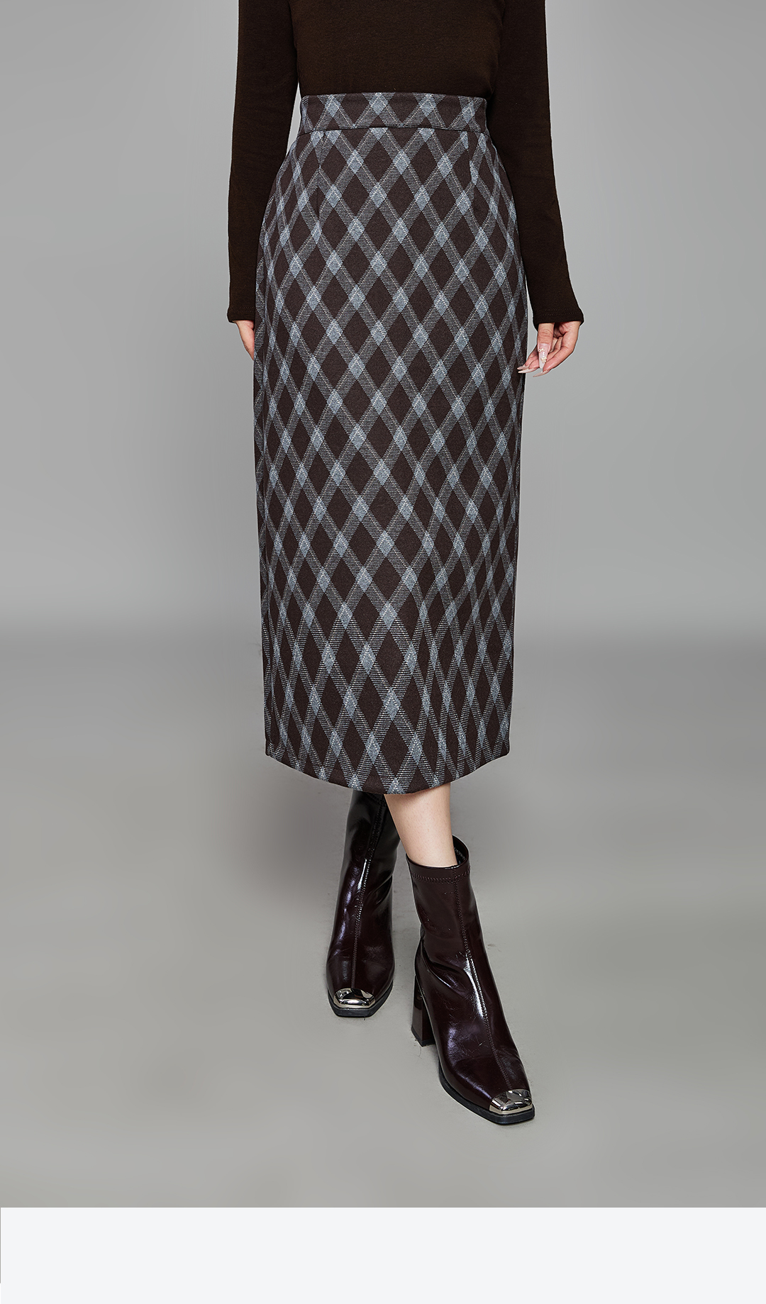冬上新通勤穿搭高级感拉满复古格纹包臀裙3254002 商品图0