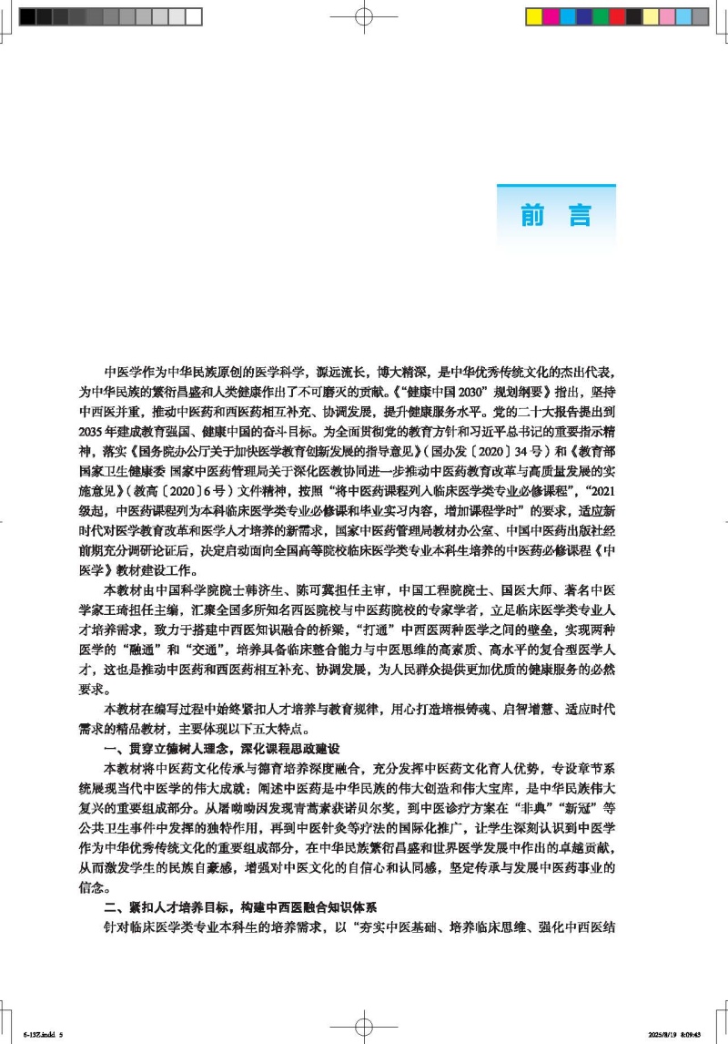 中医学 十五五规划教材 全国高等院校临床医学类专业中医药必修课程规划教材 王琦 主编 供临床医学类专业用 中国中医药出版社