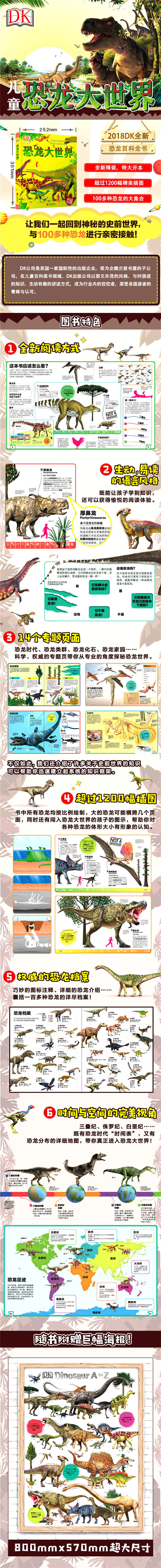 "全书详细介绍了100多种恐龙!在这里你可以了解恐龙们名字的含义,以及各种恐龙的特征、发现地等信息。书中细腻逼真的插图可以让你与恐龙来一次亲密接触:阿贝力龙、三角龙、伶盗龙、包头龙、霸王龙……它们徜徉在神秘的史前世界,等待你发现的脚步。在恐龙大世界中,恐龙真正成了你的朋友!