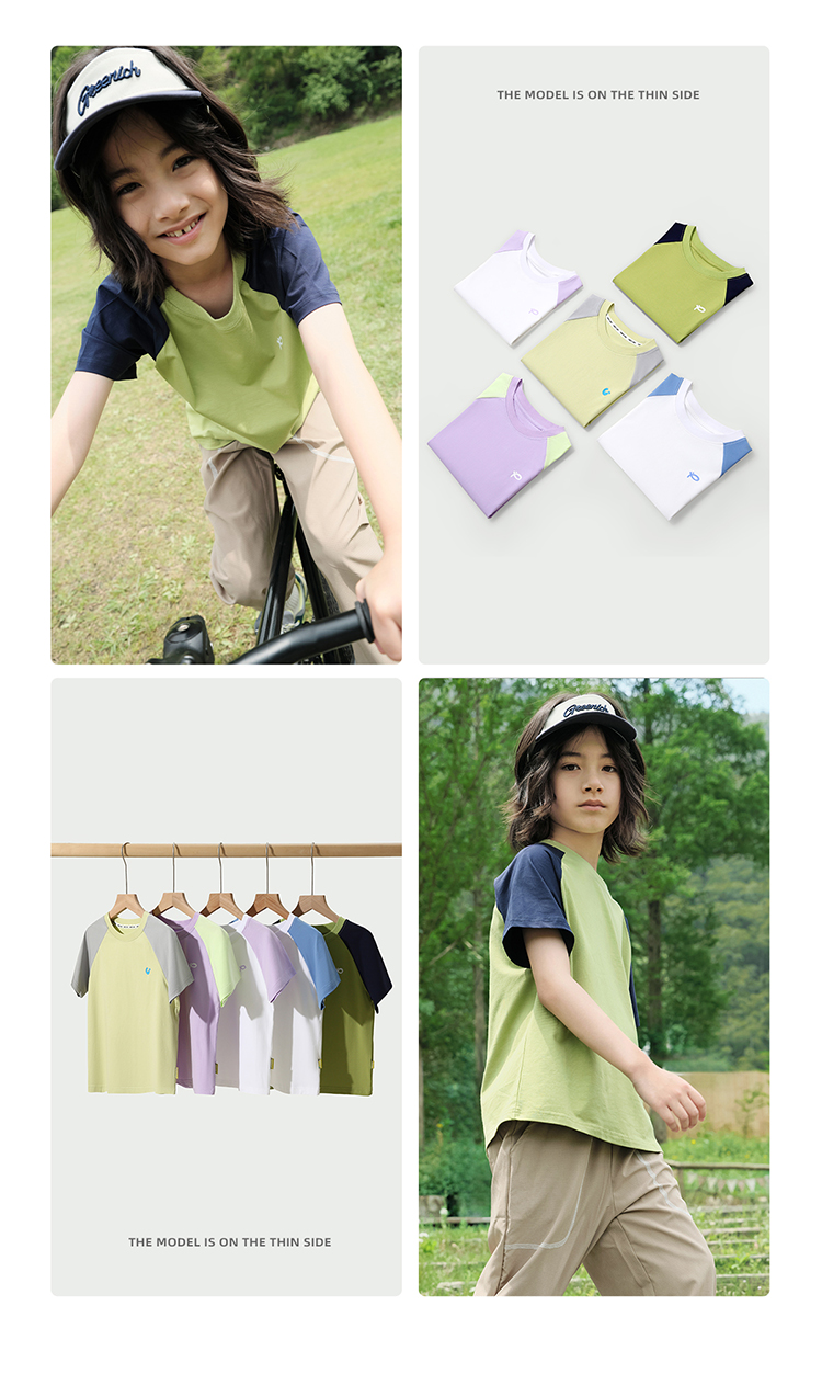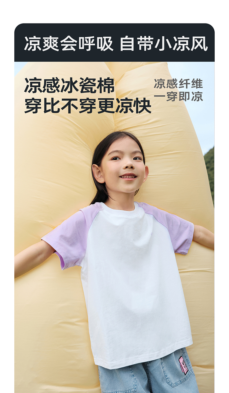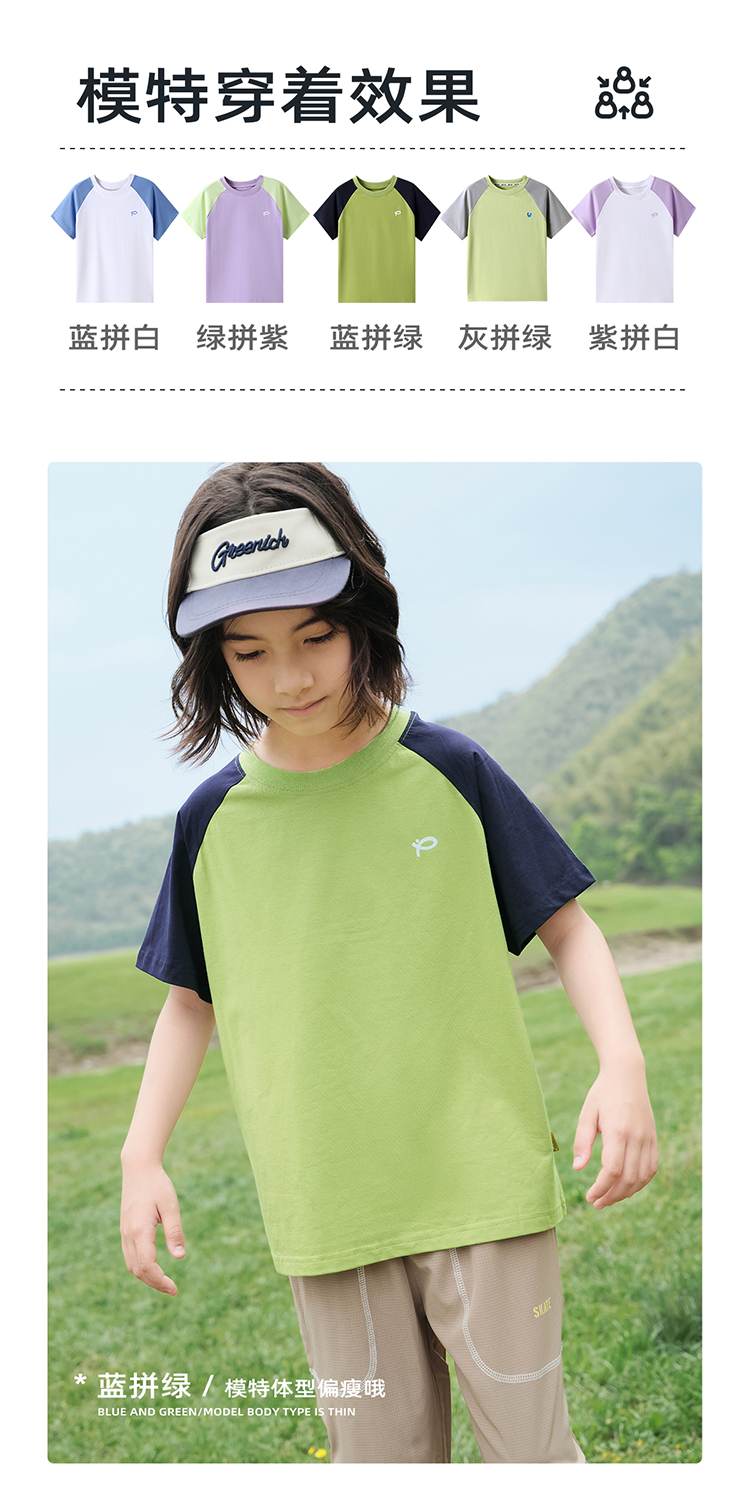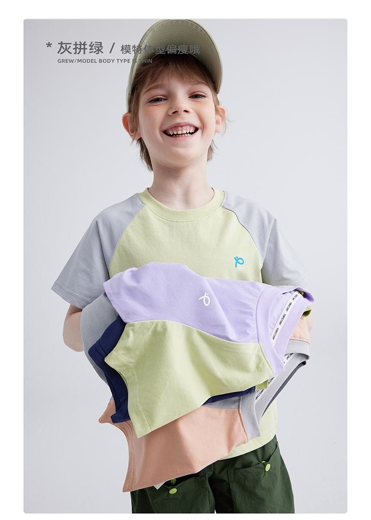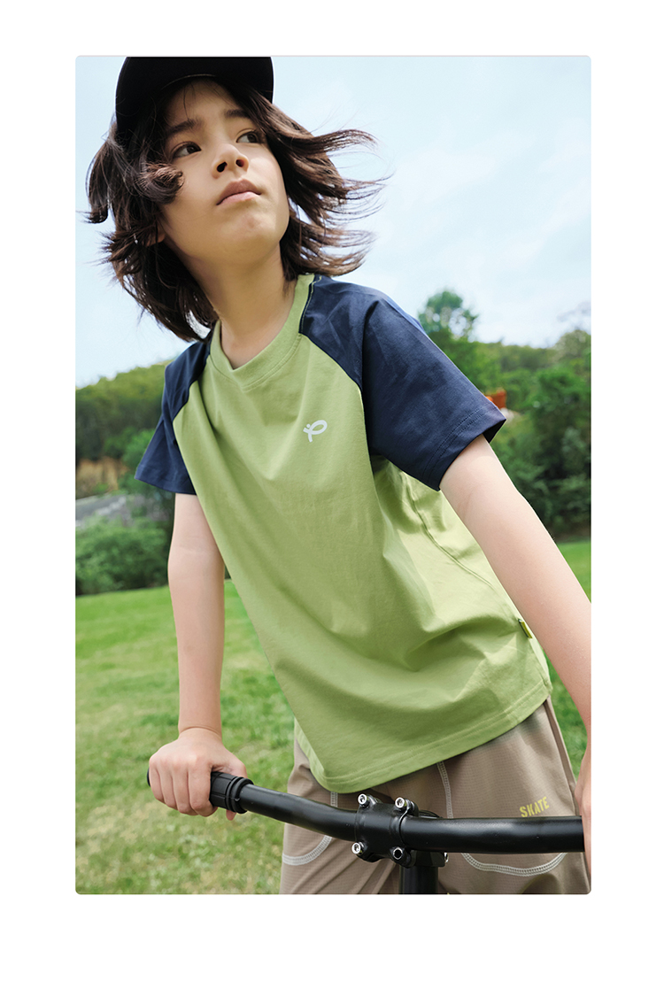 【100元任选5件】【凉爽冰瓷棉】儿童插肩袖拼色T恤 PXT2411