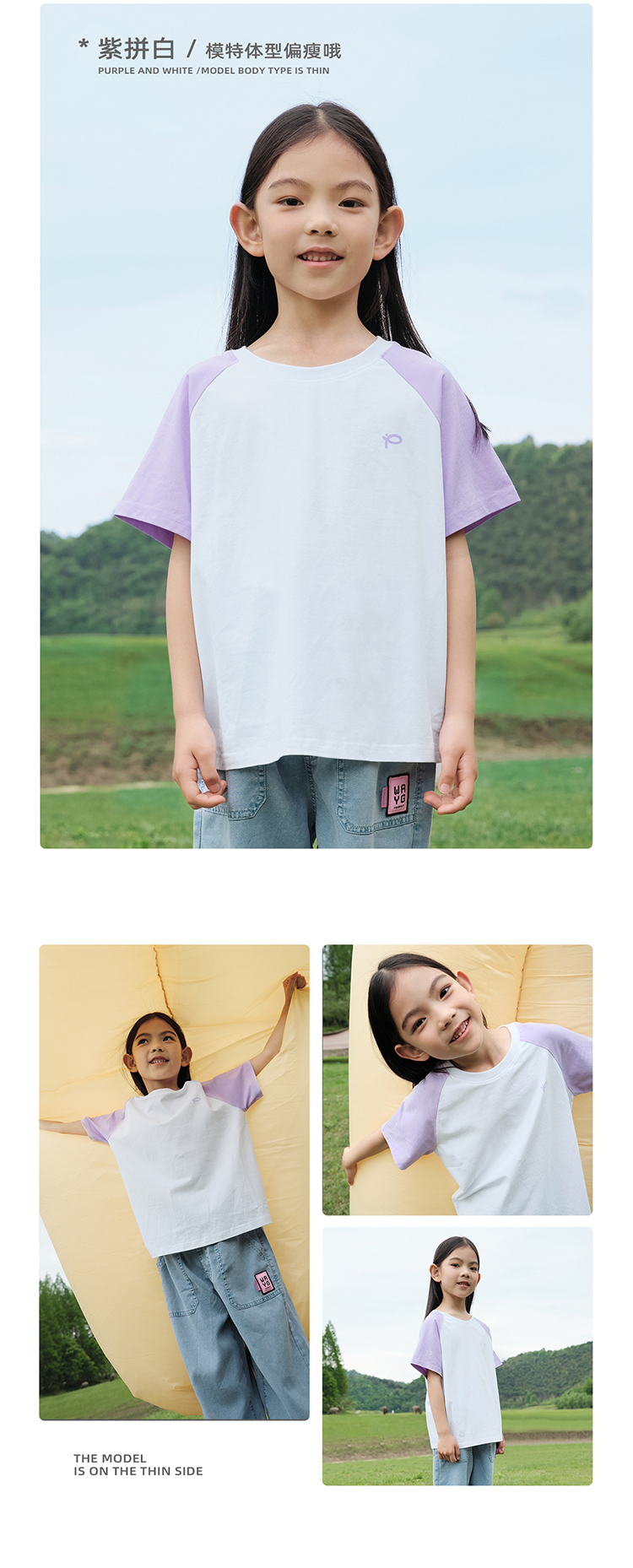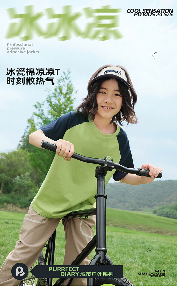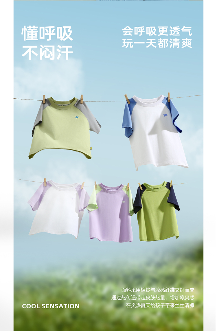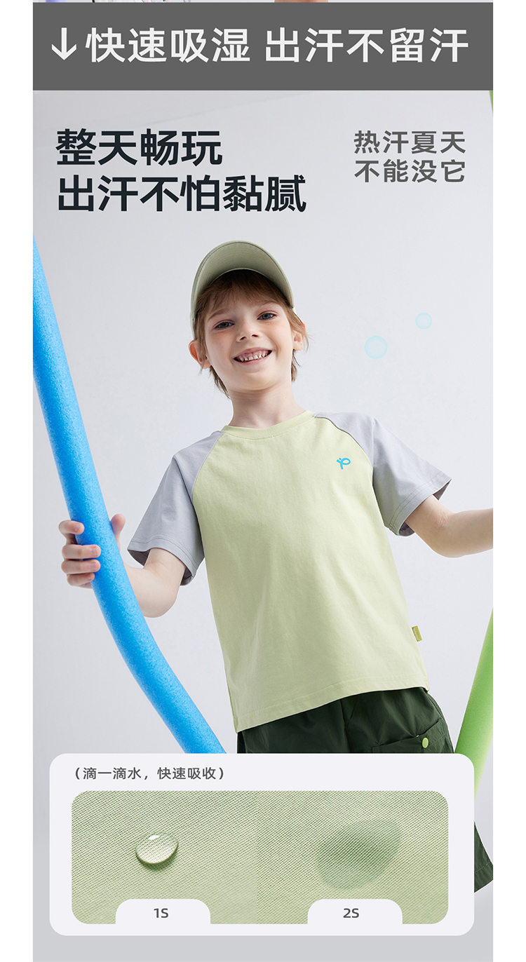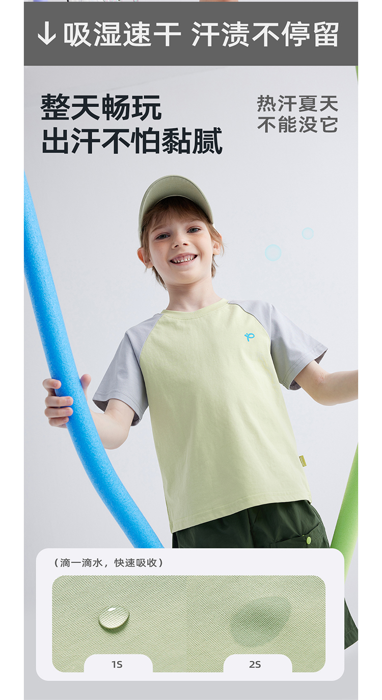 【100元任选5件】【凉爽冰瓷棉】儿童插肩袖拼色T恤 PXT2411