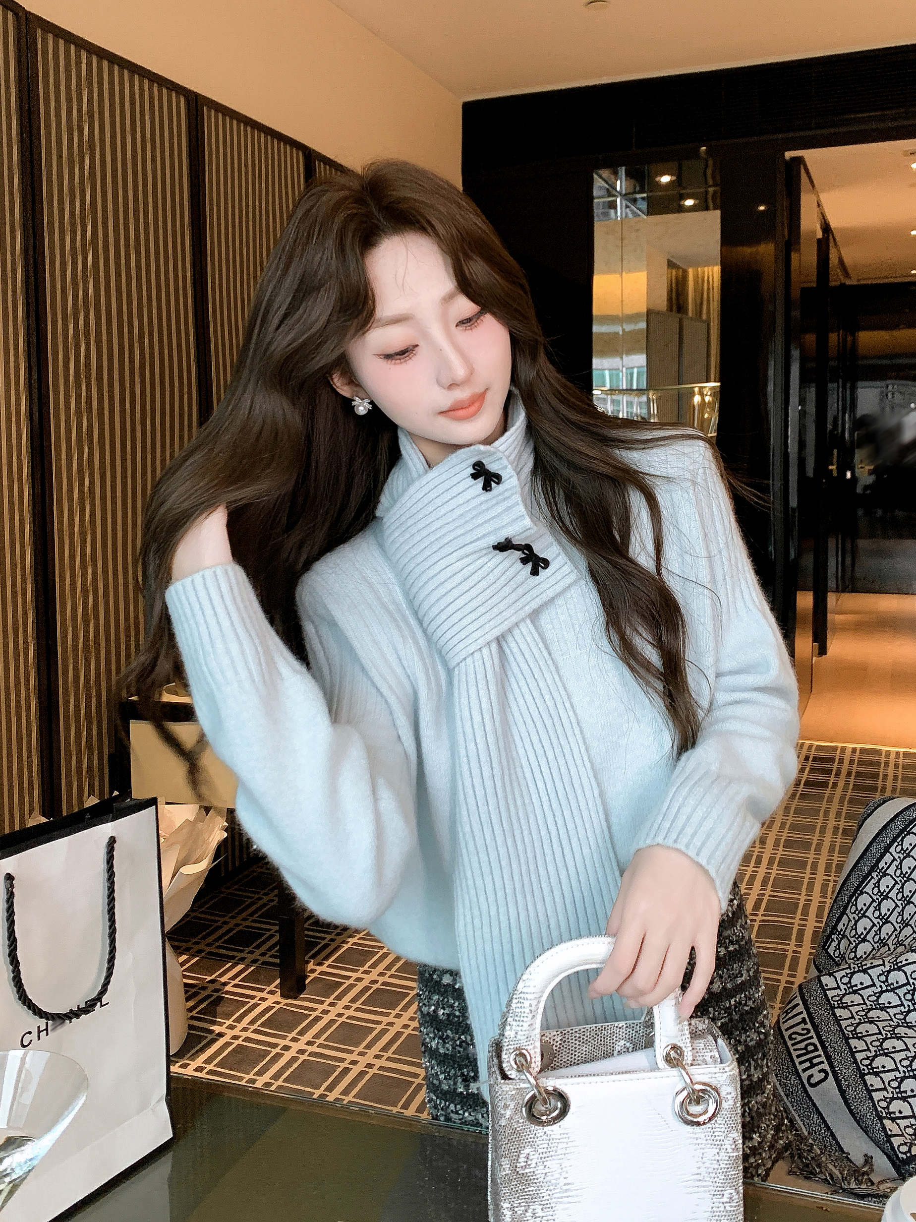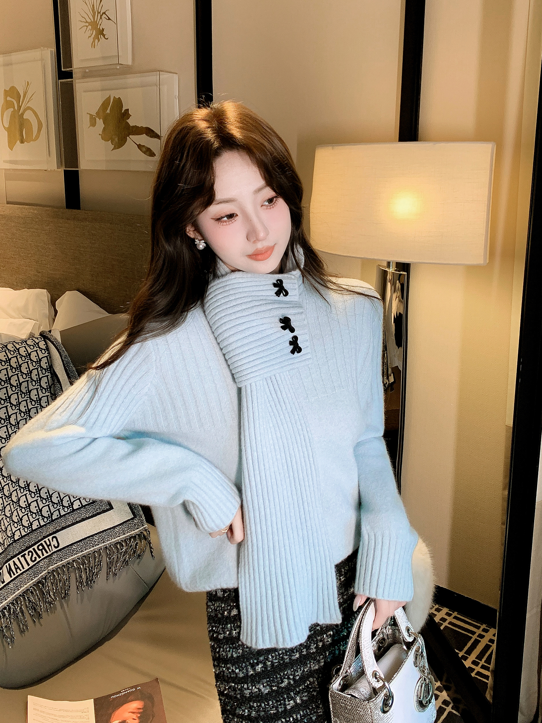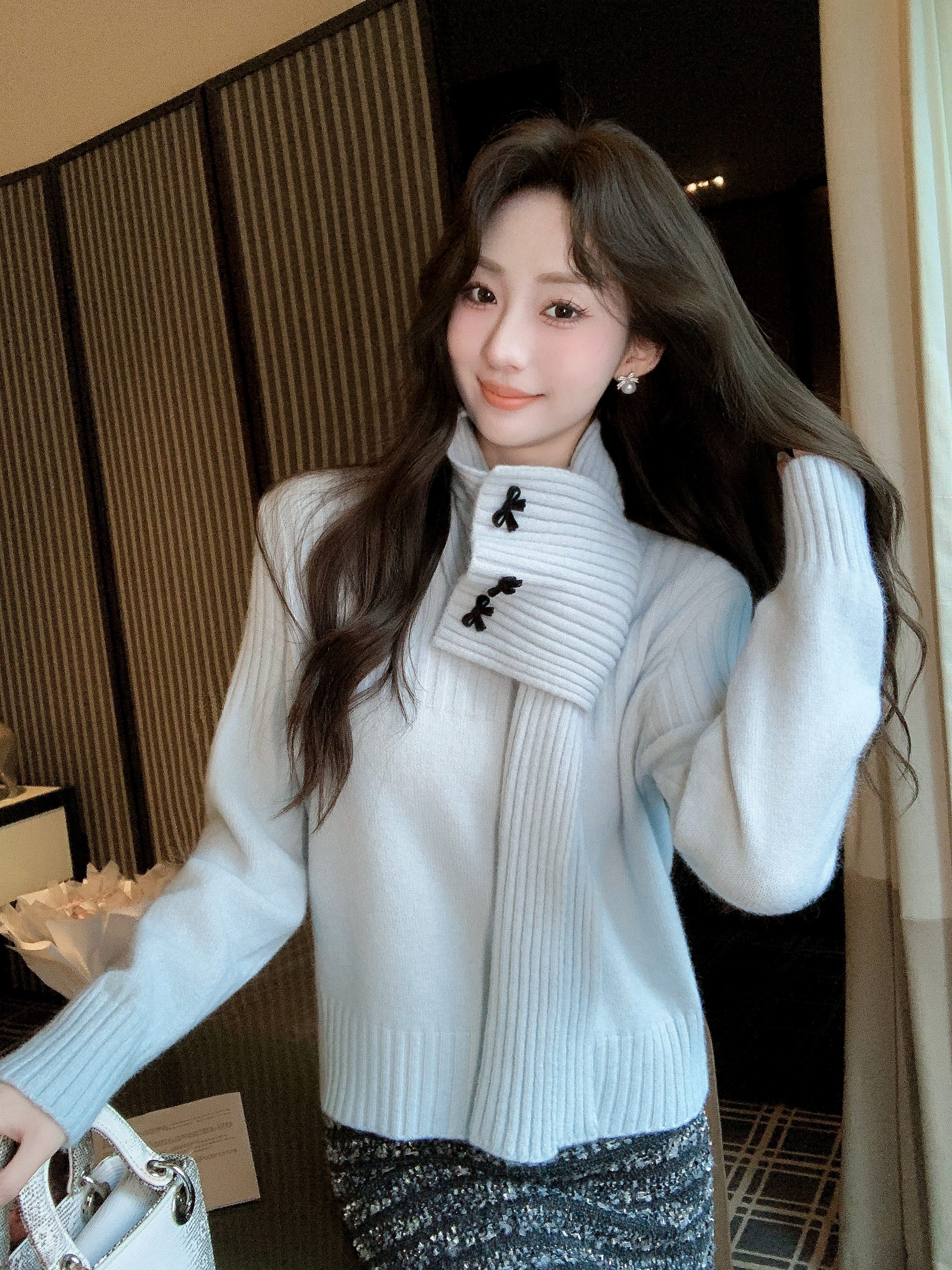张心子【午后花园】法式立体花气质秋款长袖女新款显瘦百搭针织衫 U2508010