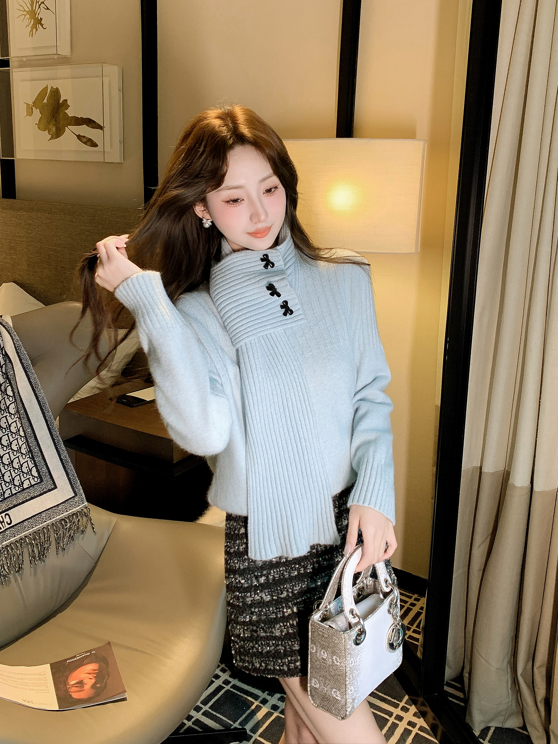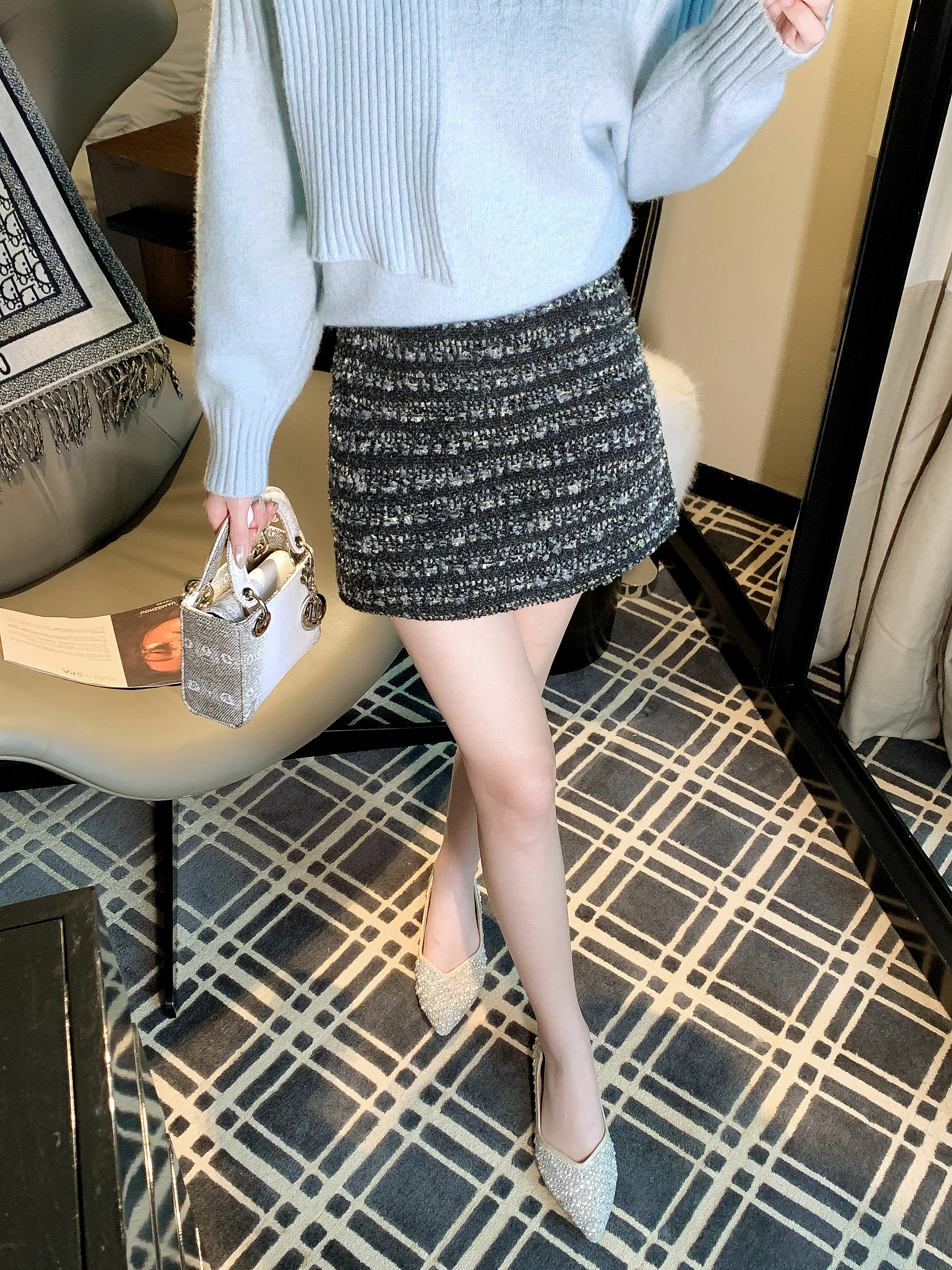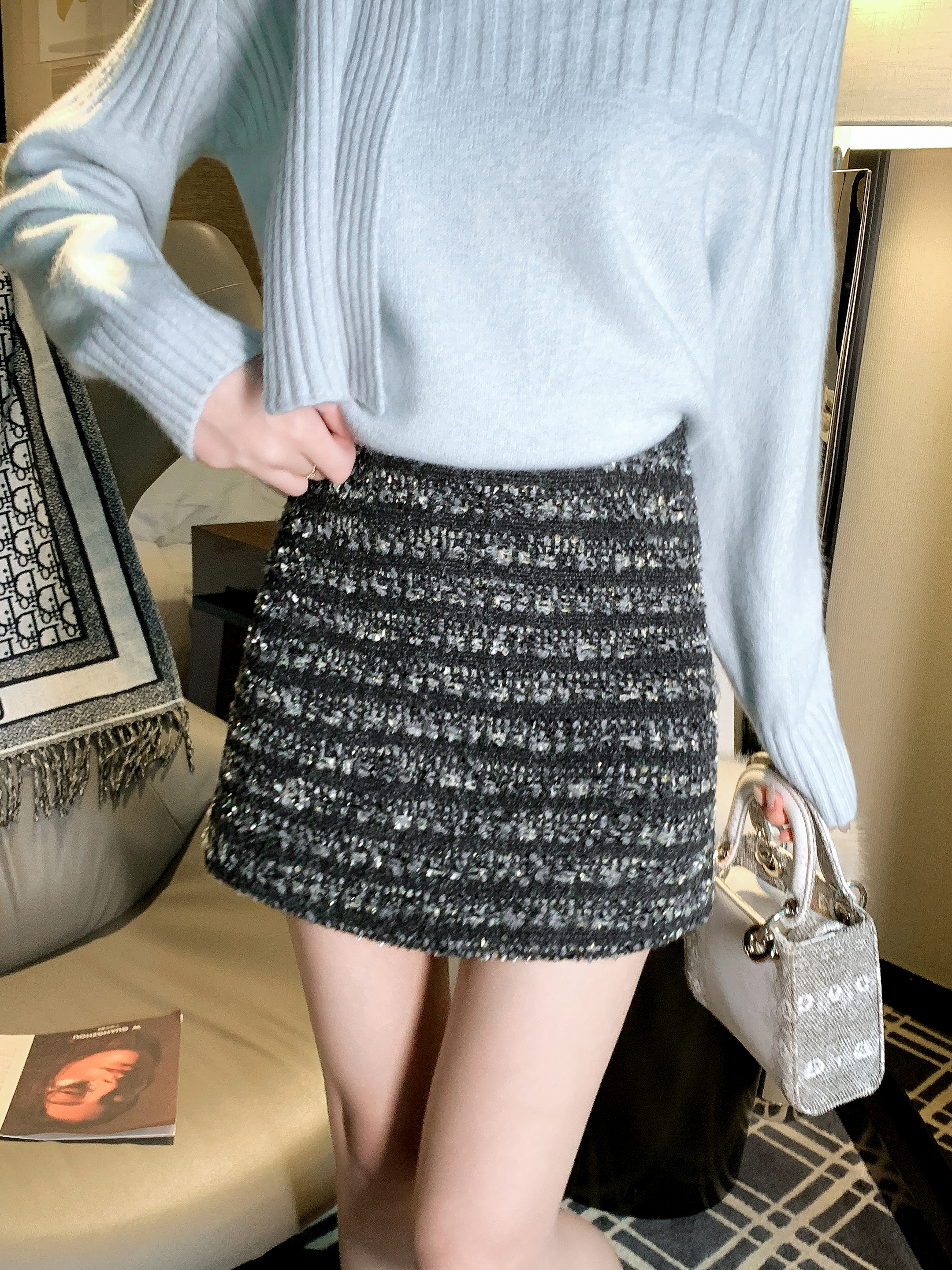张心子【心动旋律】高腰遮胯显瘦小香风半身裙 U2601026