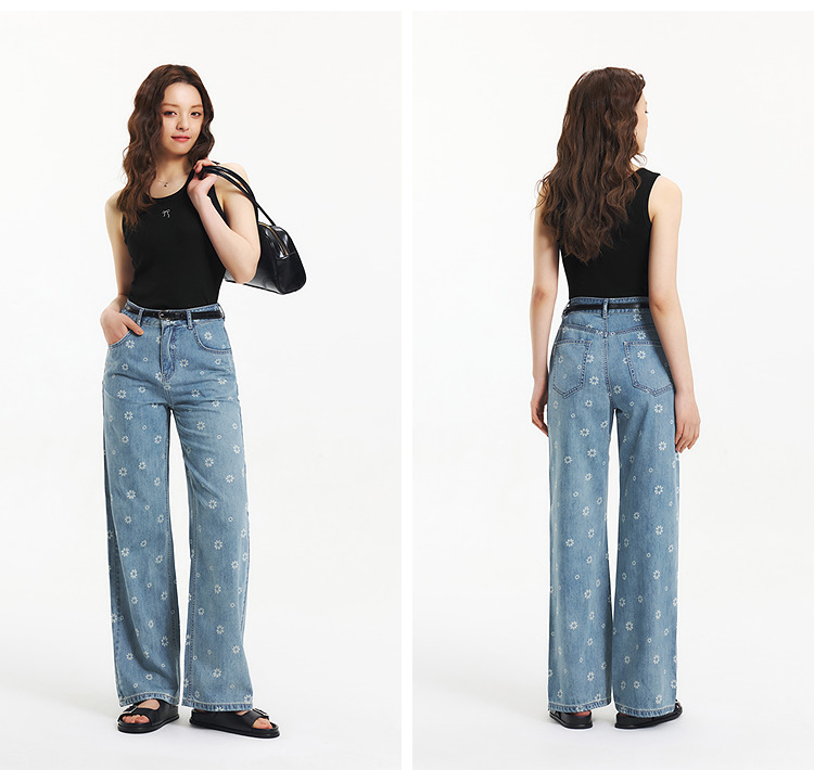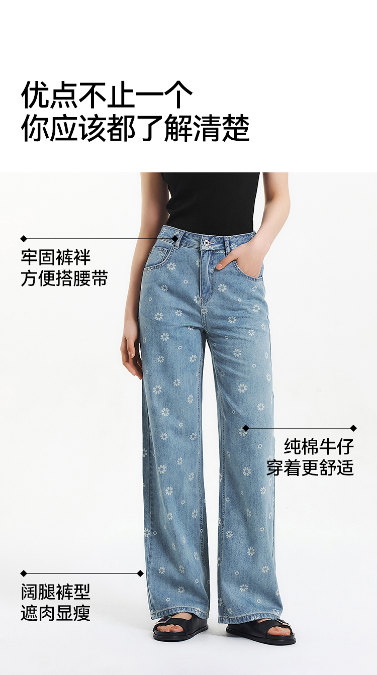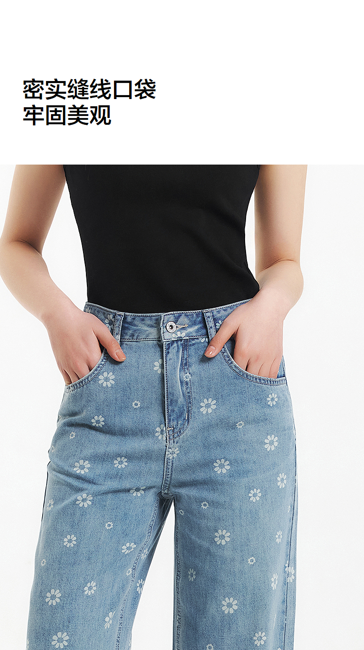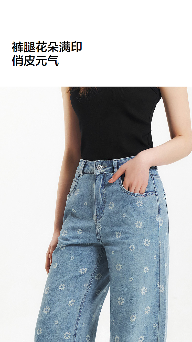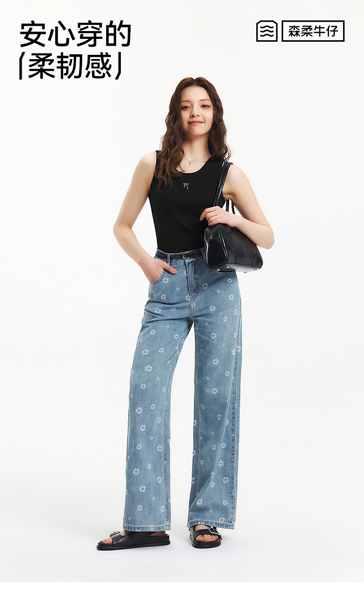 森柔牛仔|森马牛仔裤女满印长裤甜美小众2025夏季新款纯棉阔腿裤