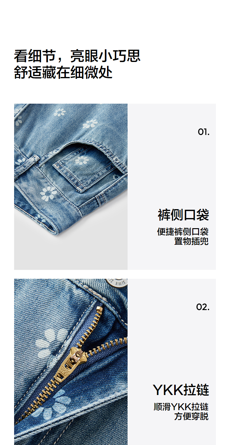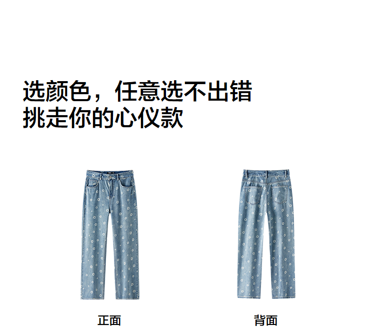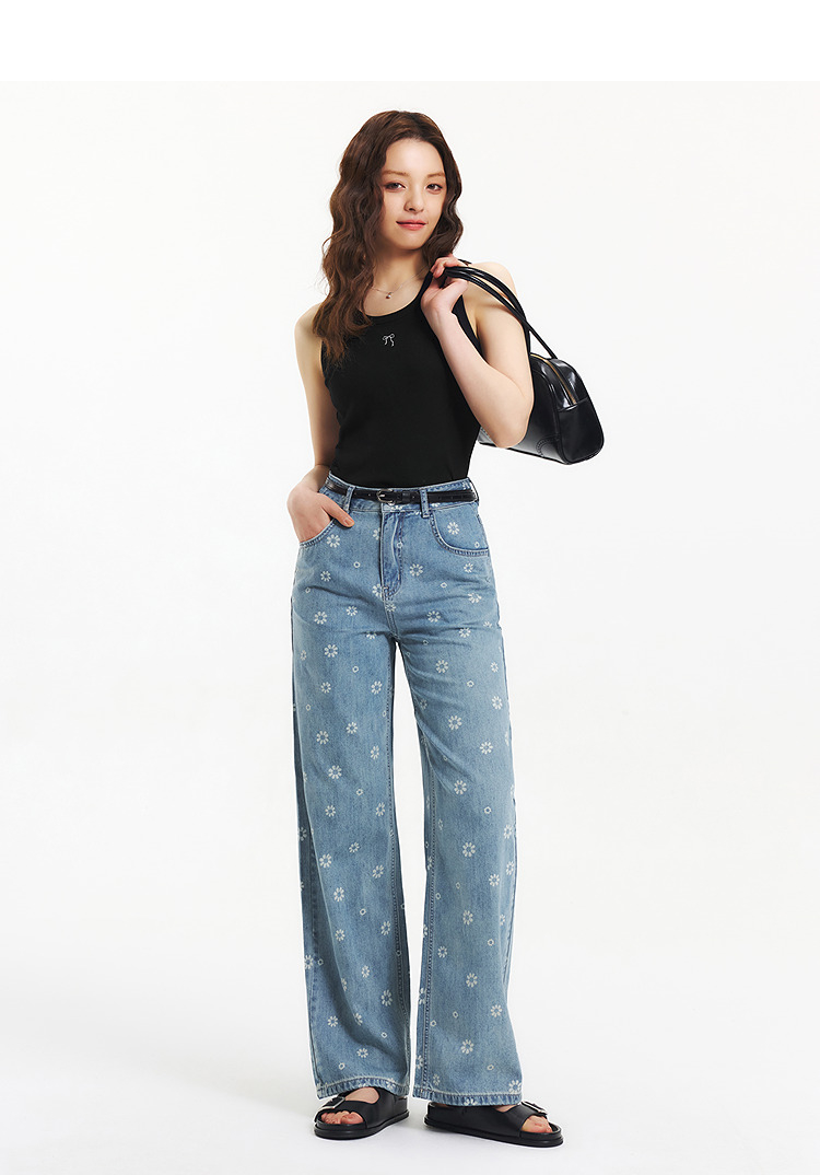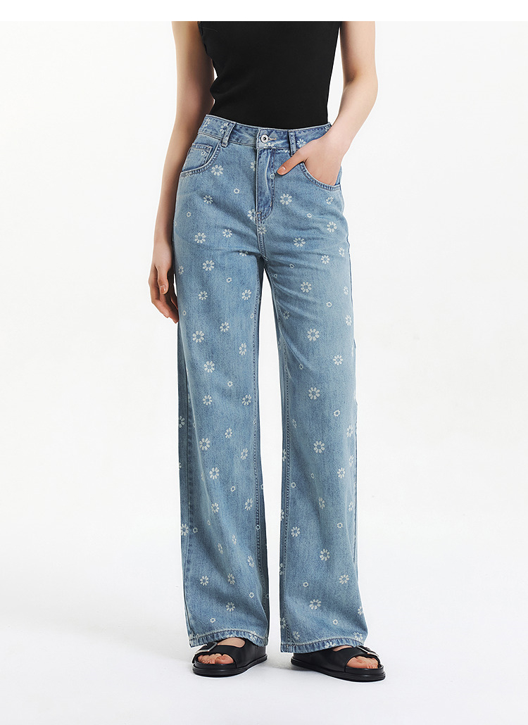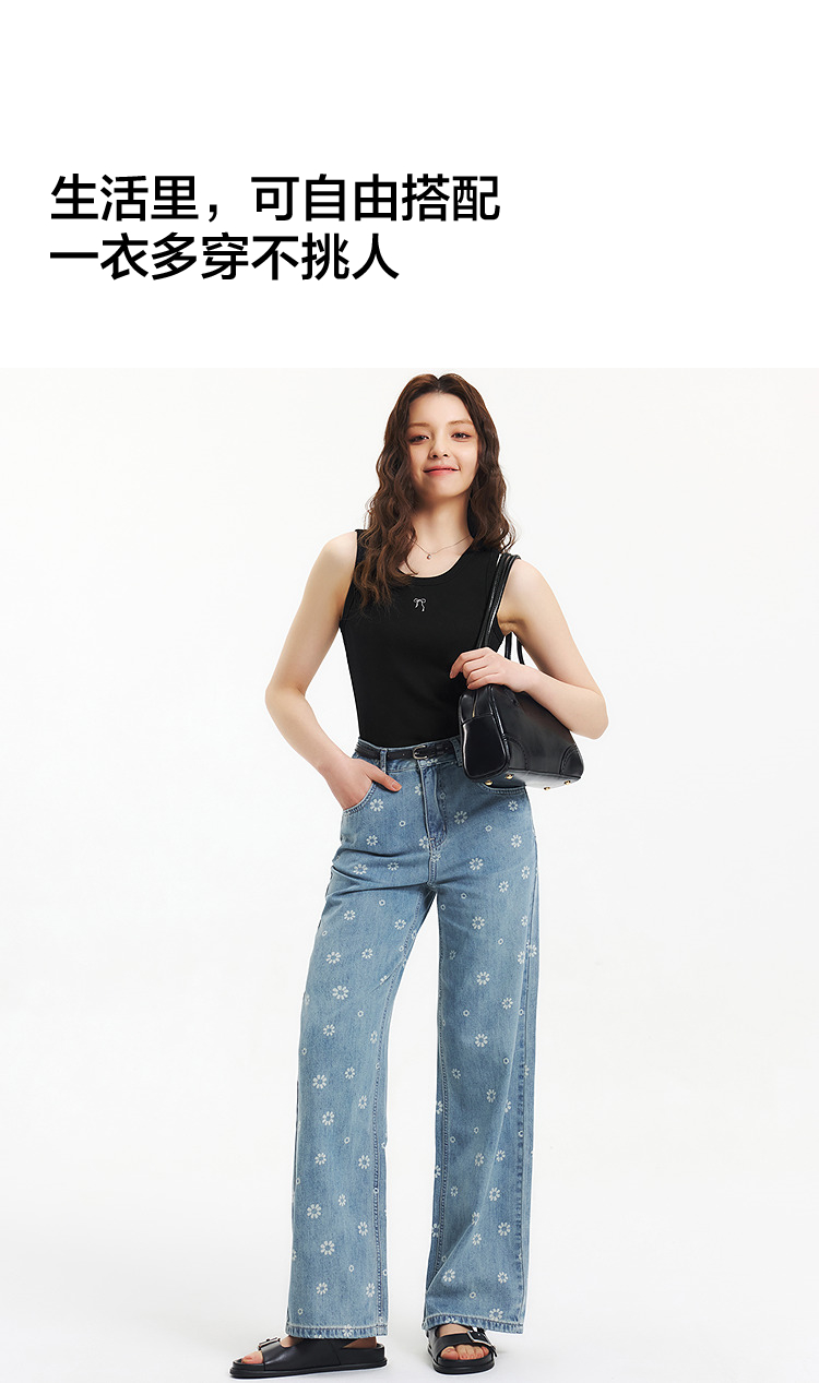 森柔牛仔|森马牛仔裤女满印长裤甜美小众2025夏季新款纯棉阔腿裤