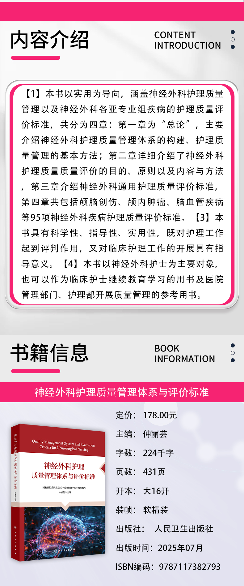 神经外科护理质量管理体系与评价标准 仲丽芸 涵盖神经外科护理质量管理及神经外科各亚专业组疾病的护理质量评价标准人民卫生出版社