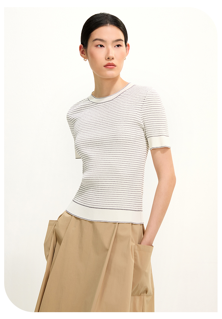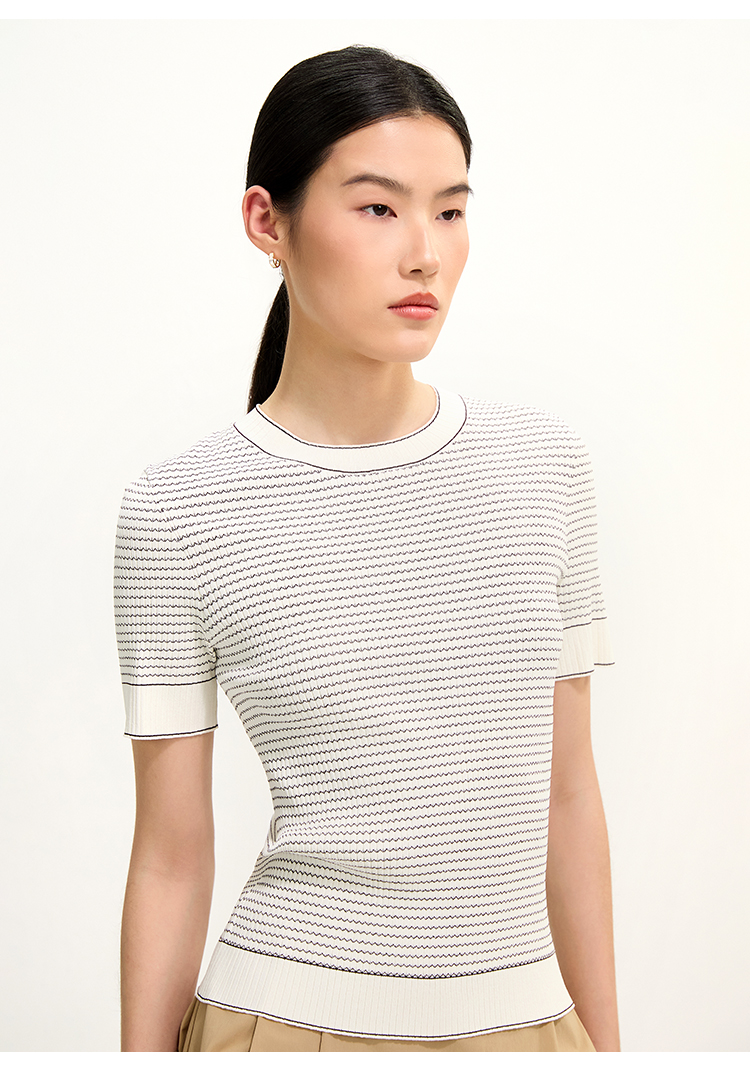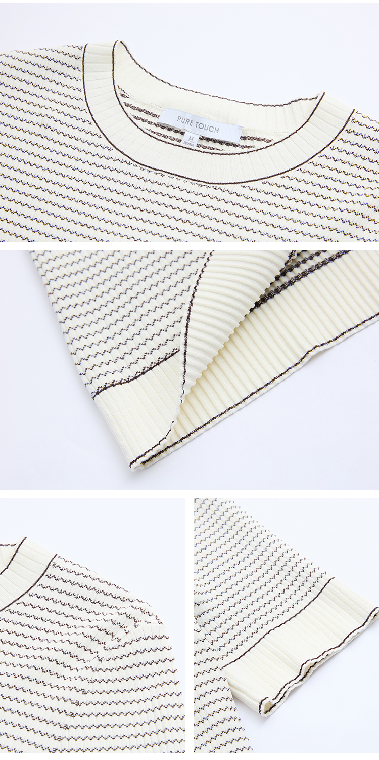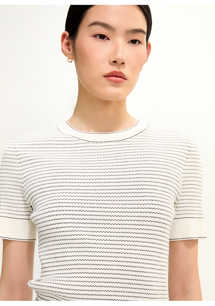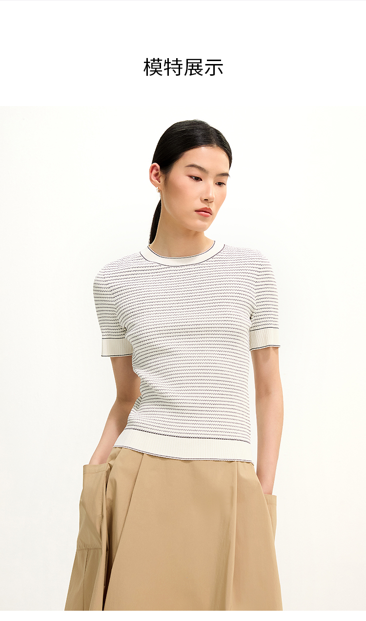 PURE TOUCH简约黑白条纹圆领短袖针织衫 1346242115