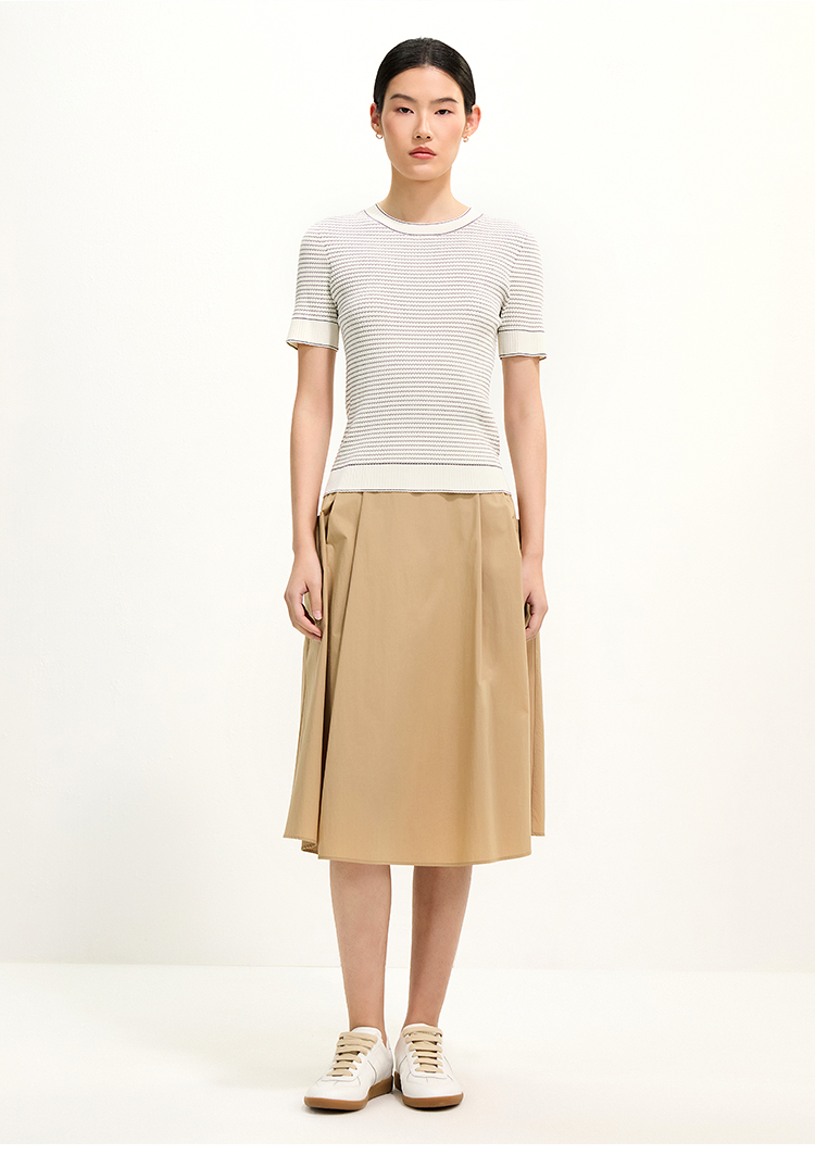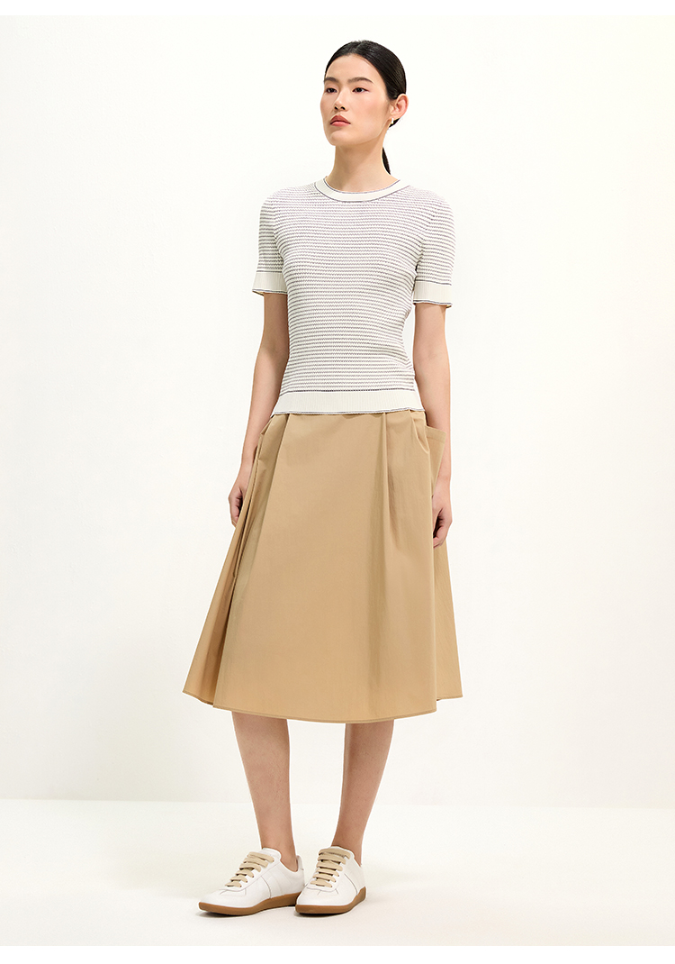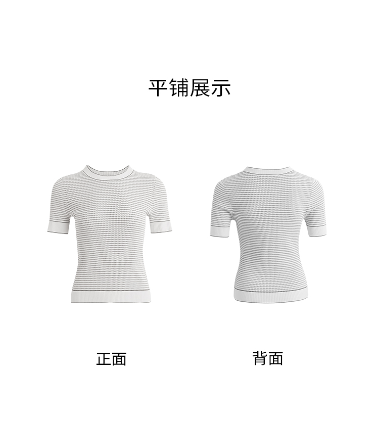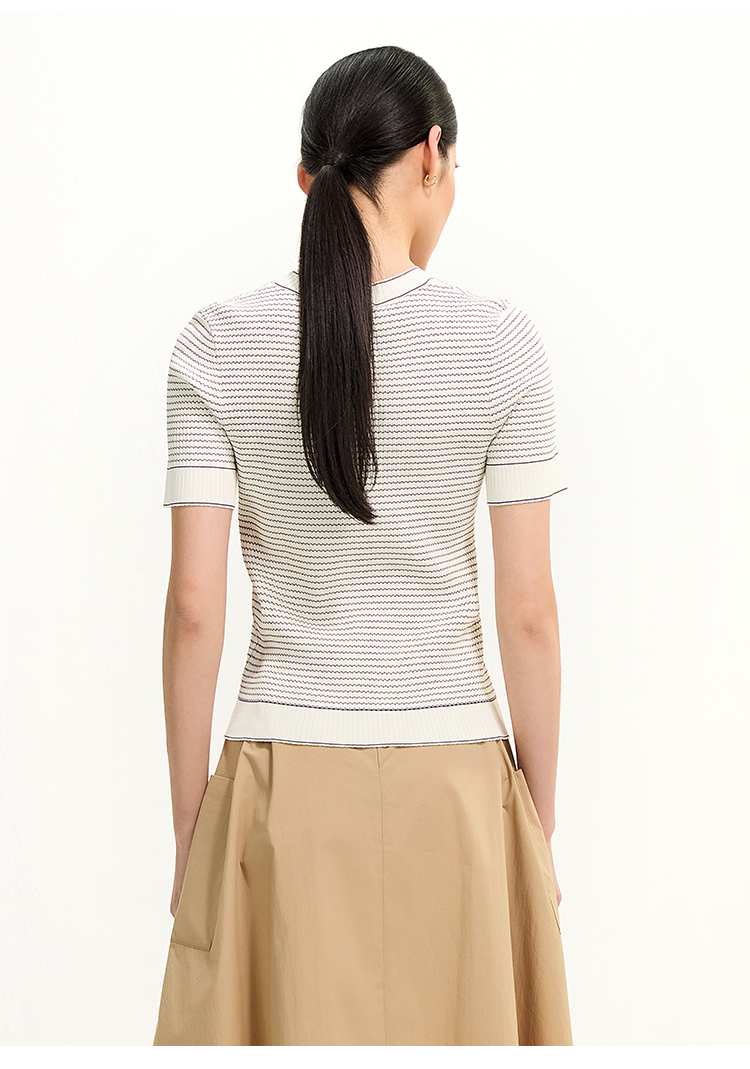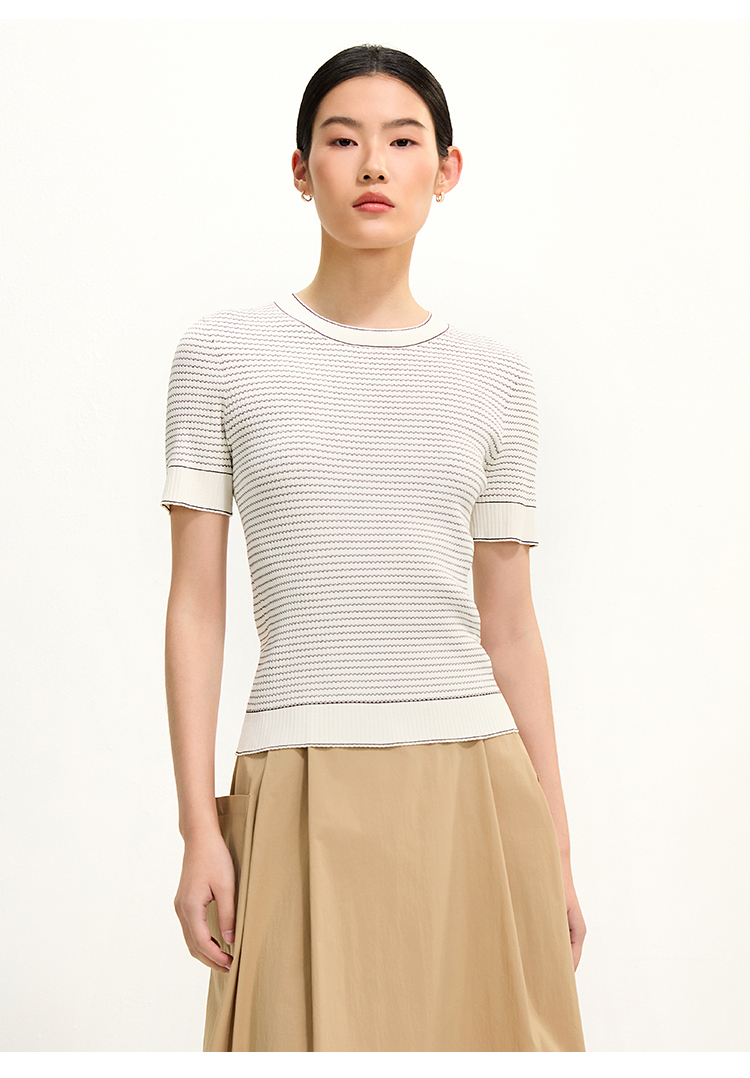 PURE TOUCH简约黑白条纹圆领短袖针织衫 1346242115