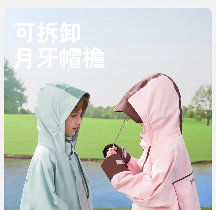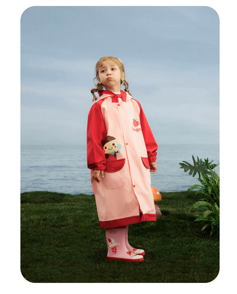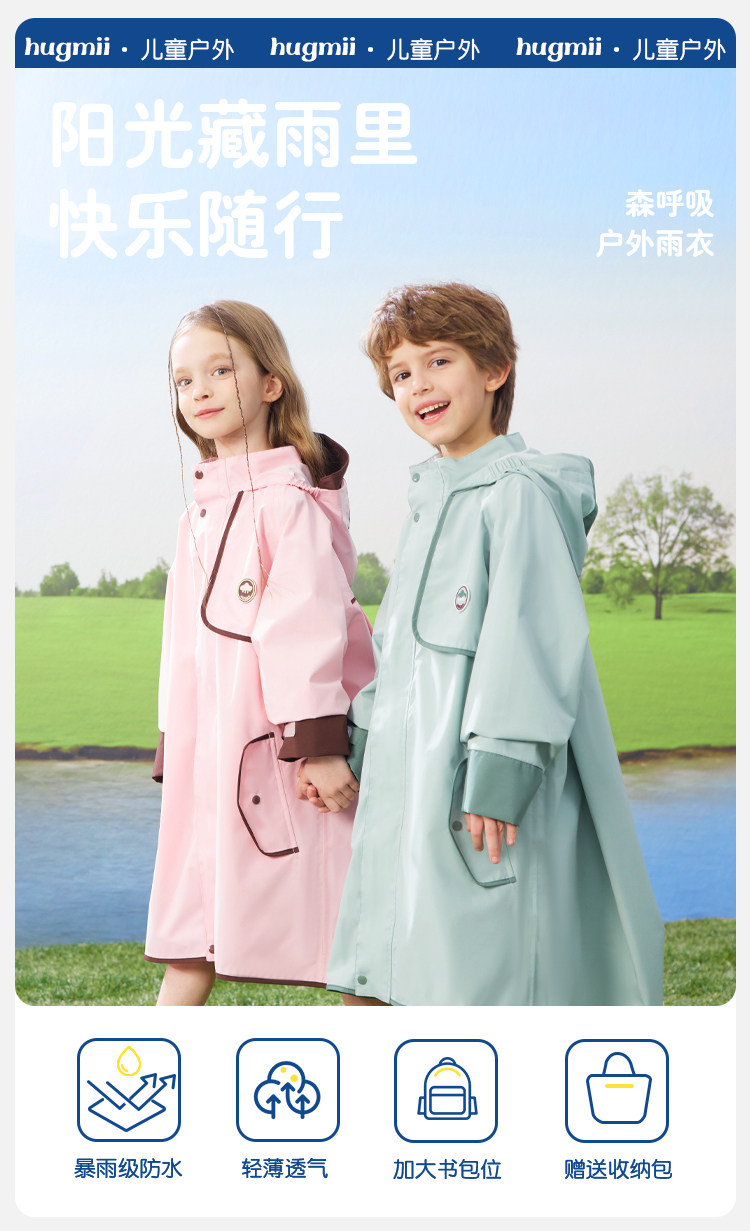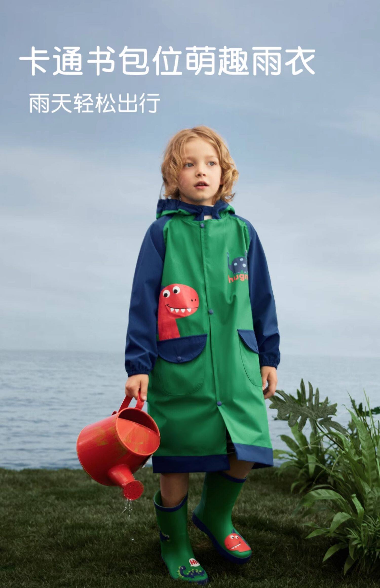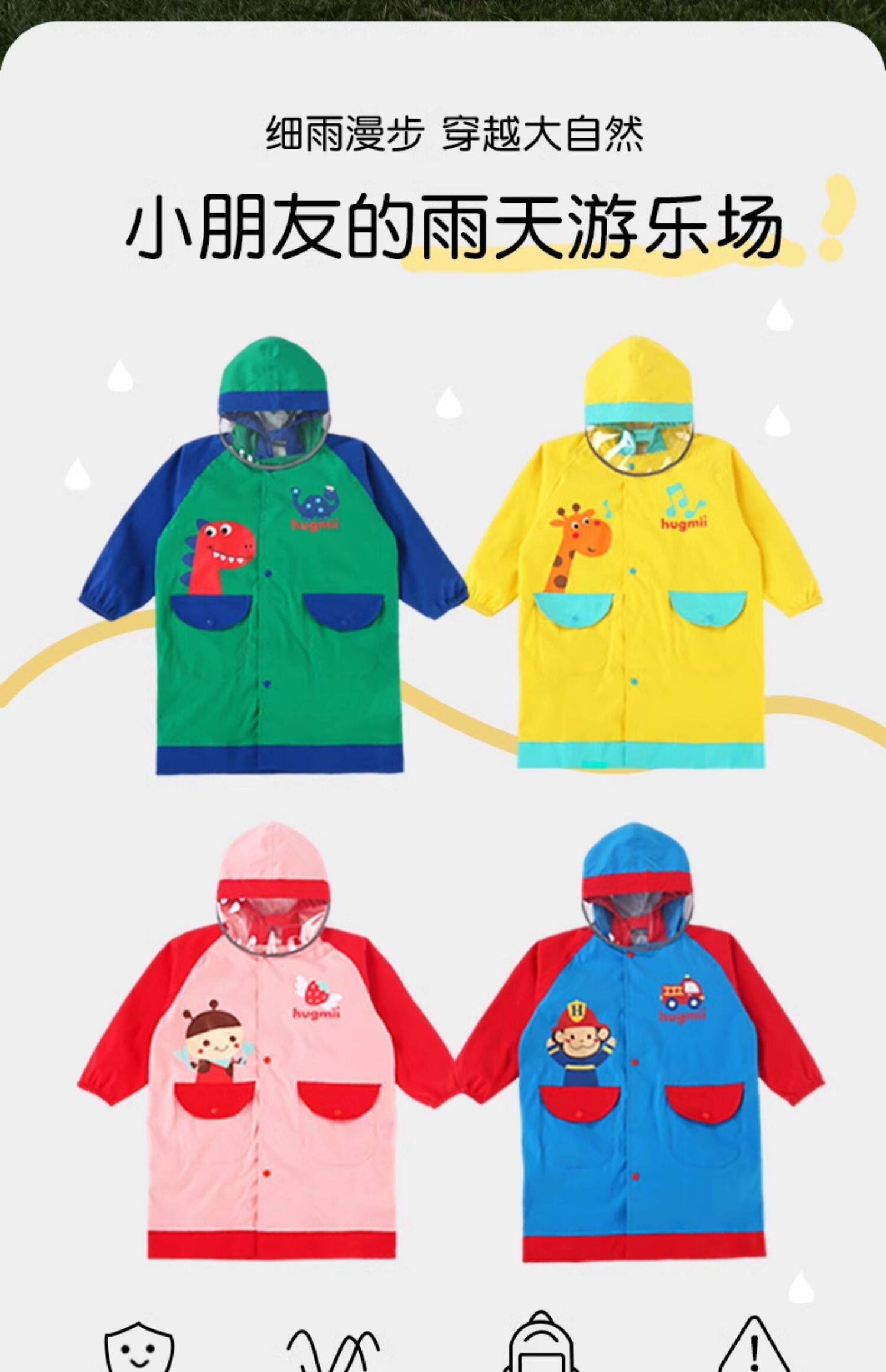 【清仓!!】hugmii哈格美儿童雨衣系列女童超轻云感雨披男童上学专用大帽檐雨衣带书包位