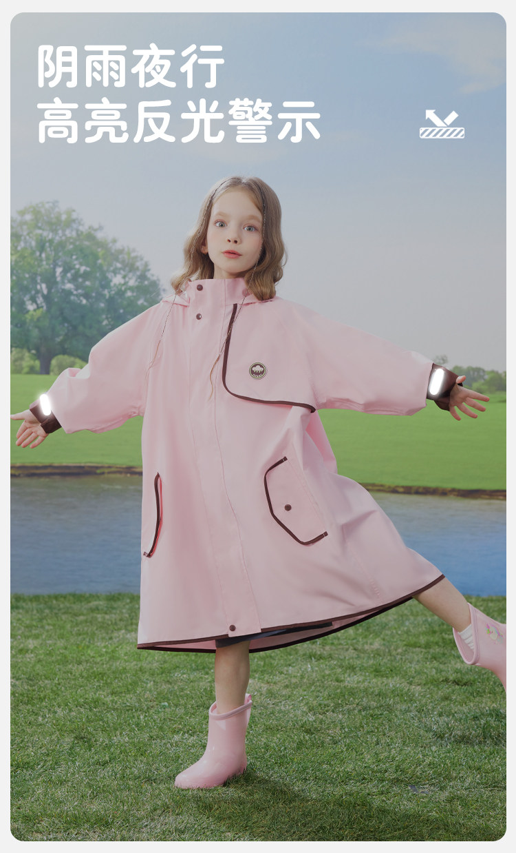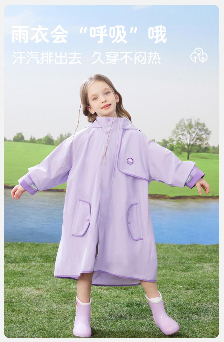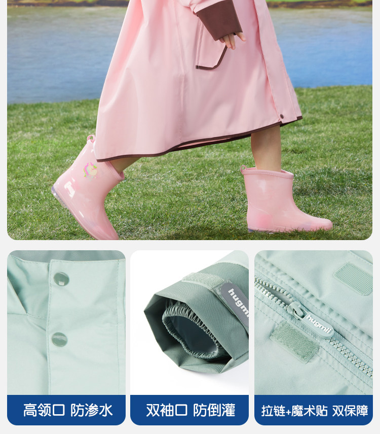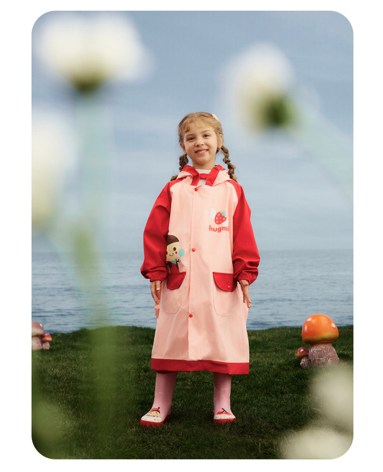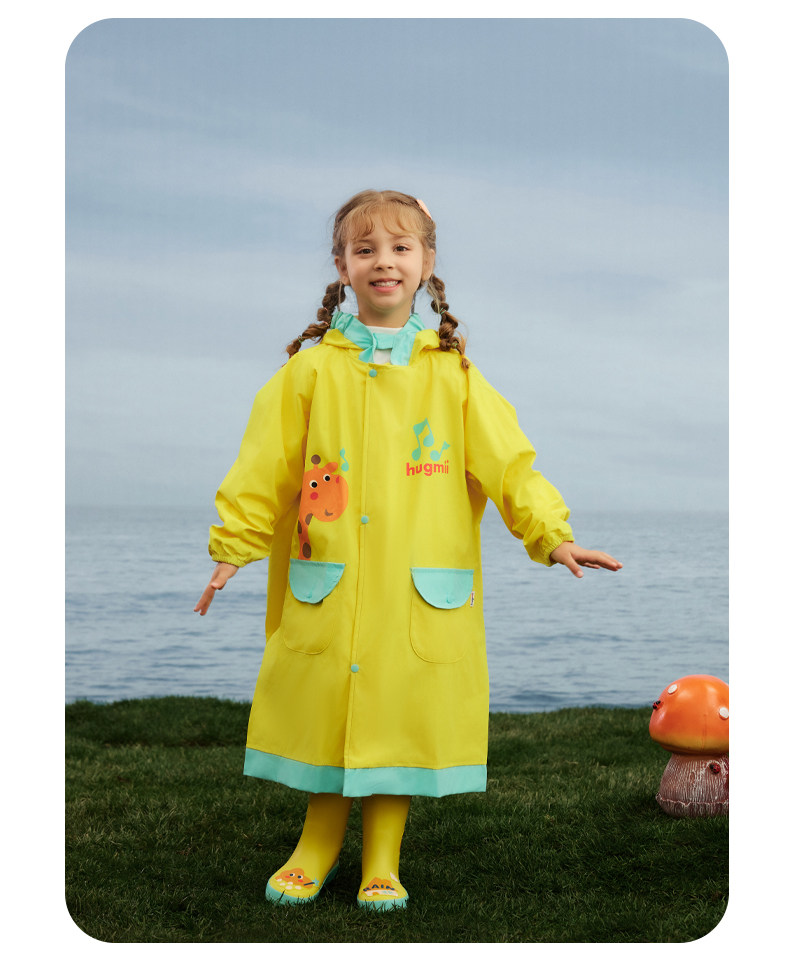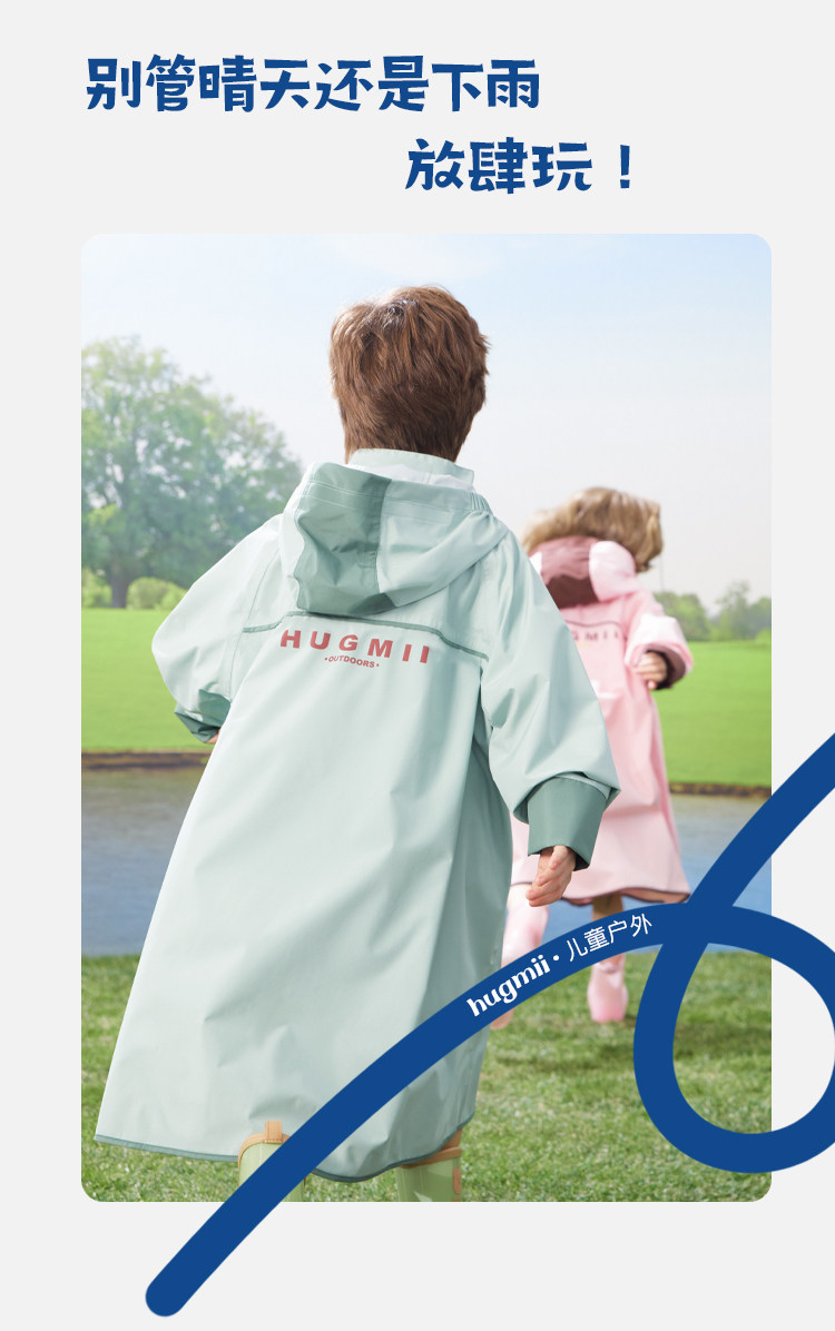 【清仓!!】hugmii哈格美儿童雨衣系列女童超轻云感雨披男童上学专用大帽檐雨衣带书包位