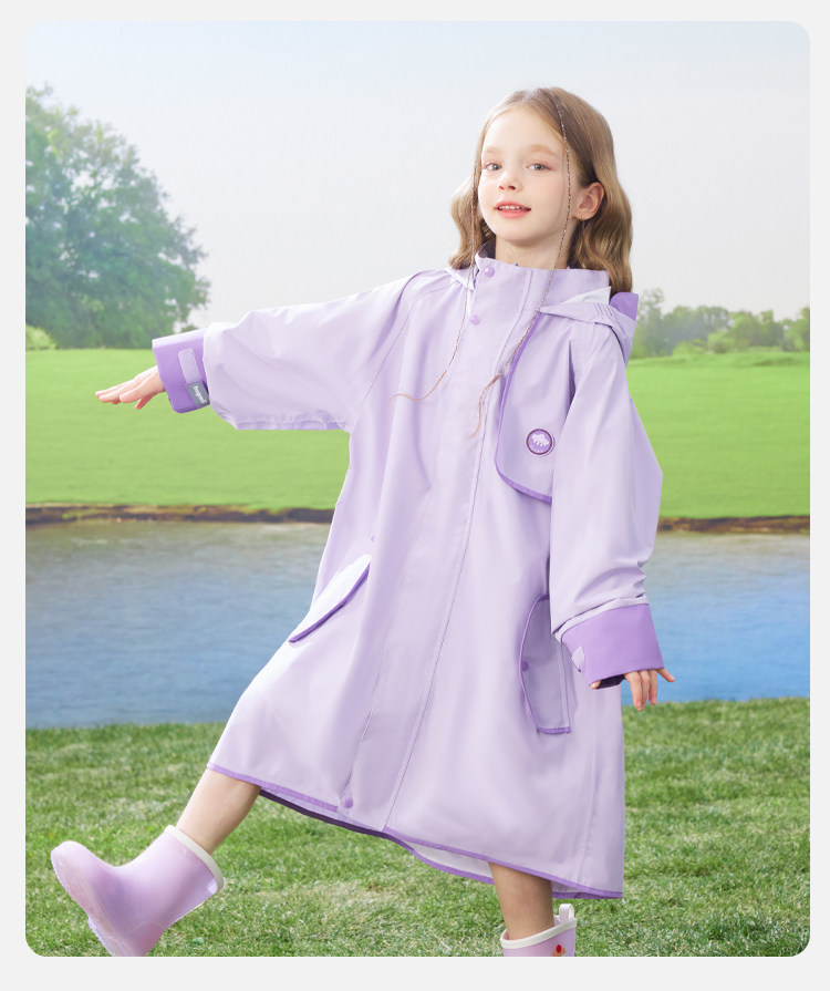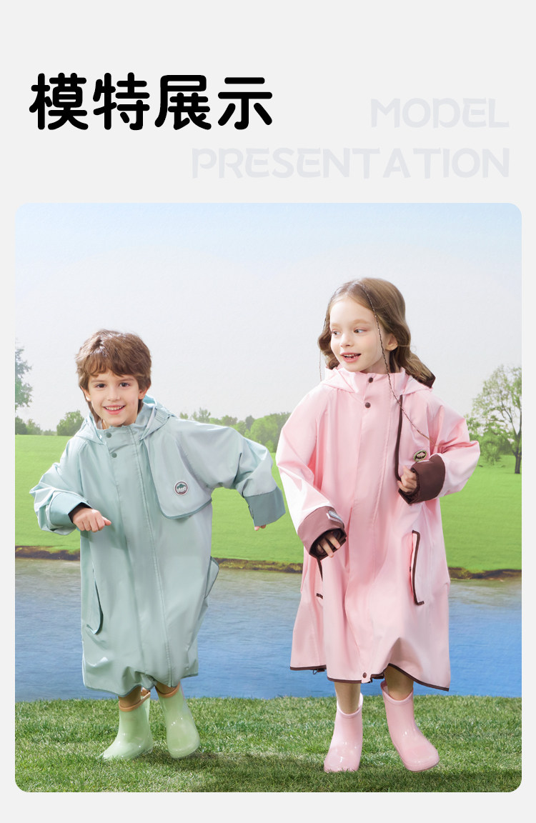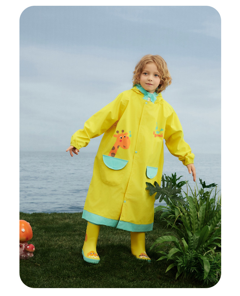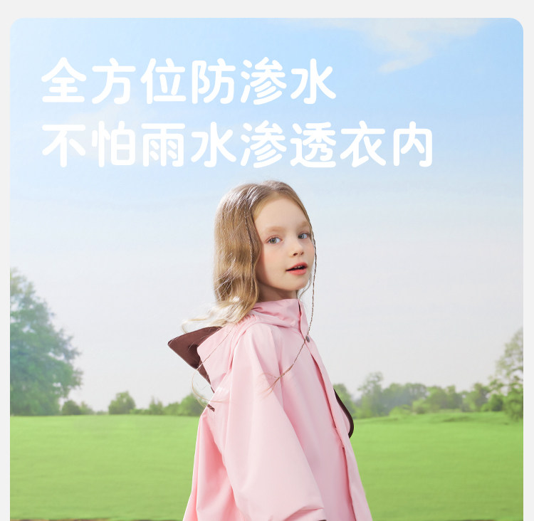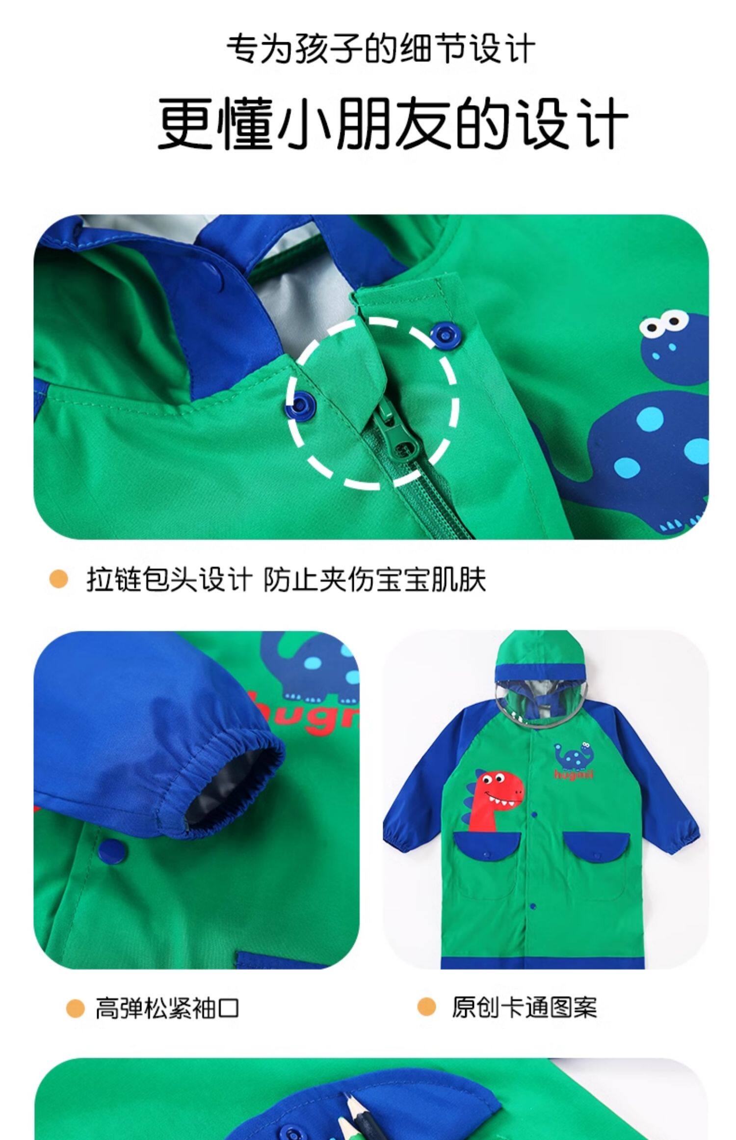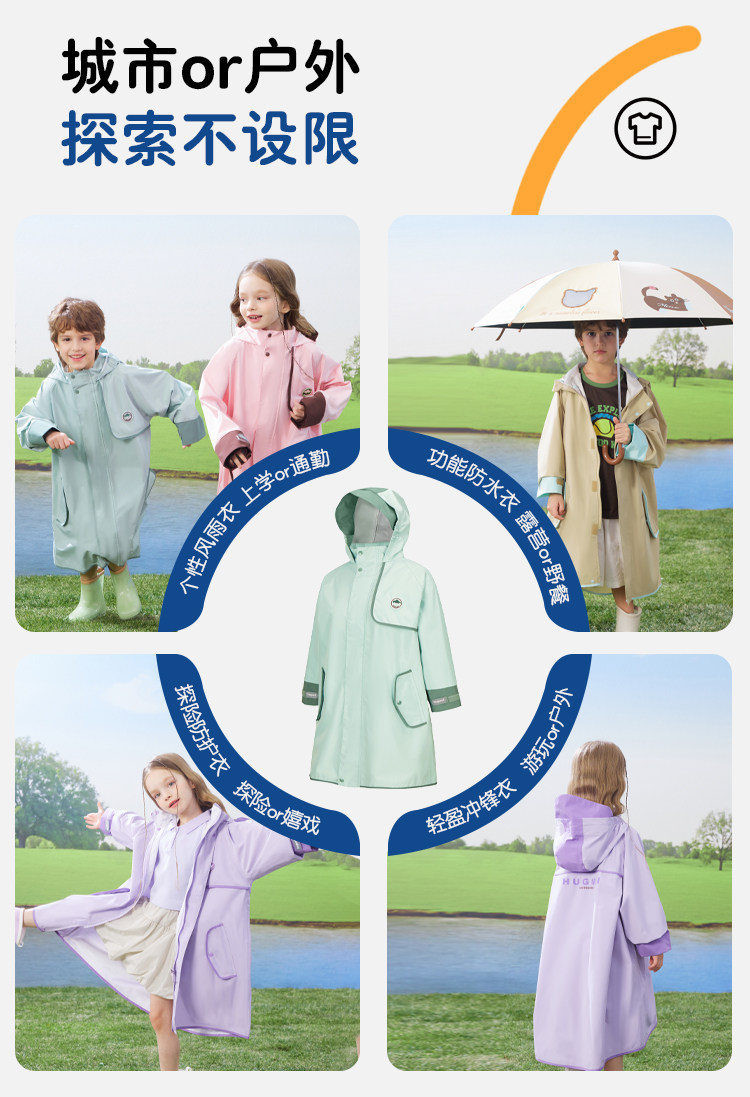 【清仓!!】hugmii哈格美儿童雨衣系列女童超轻云感雨披男童上学专用大帽檐雨衣带书包位