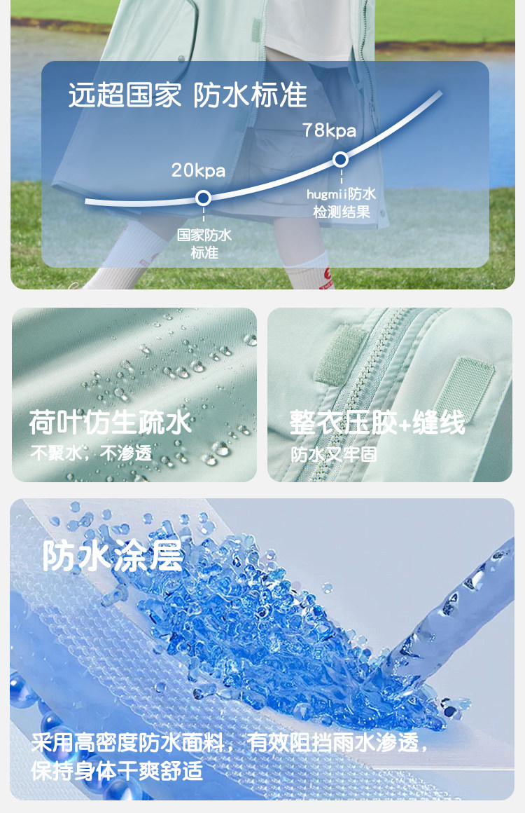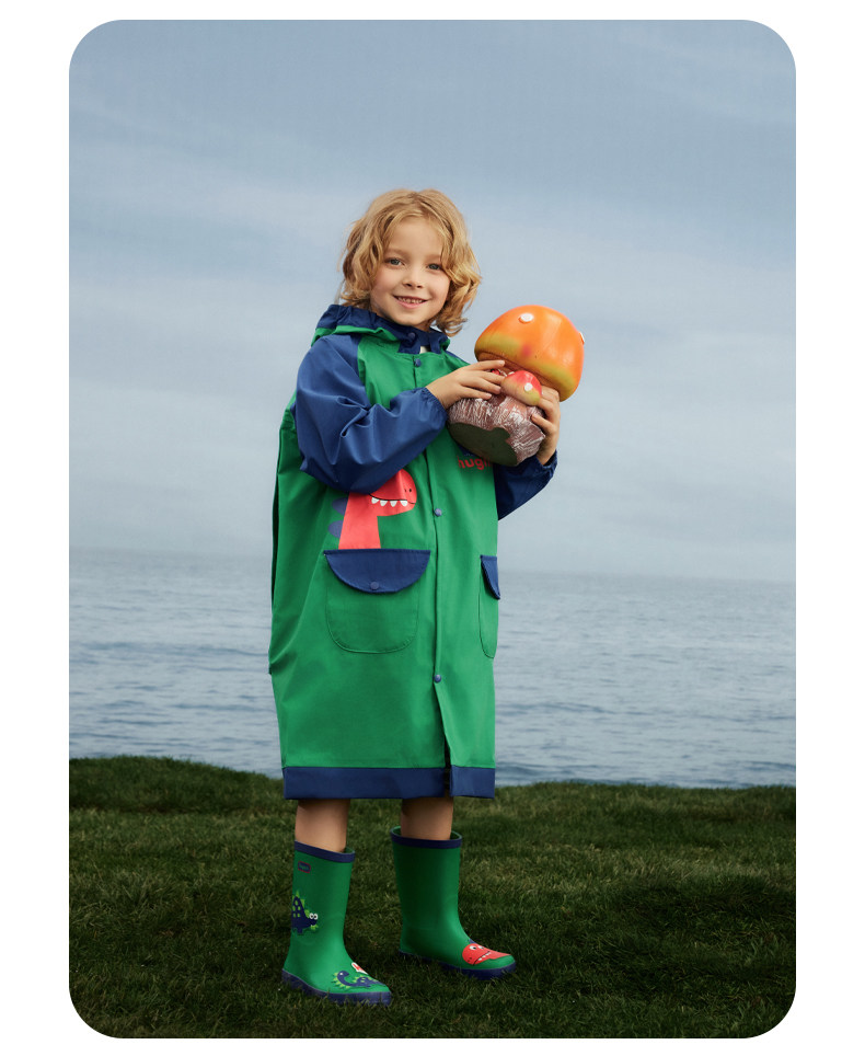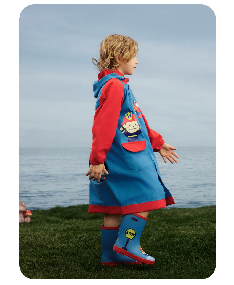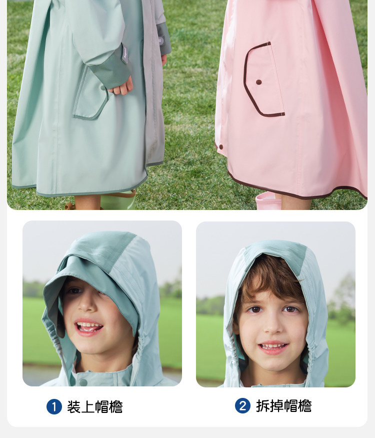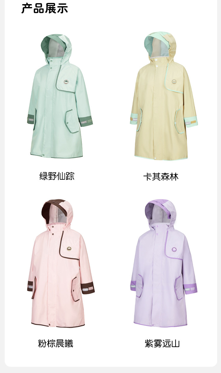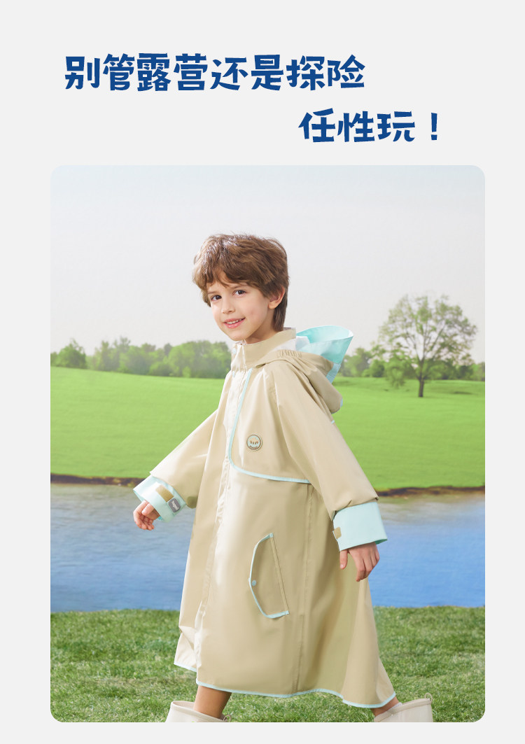 【清仓!!】hugmii哈格美儿童雨衣系列女童超轻云感雨披男童上学专用大帽檐雨衣带书包位