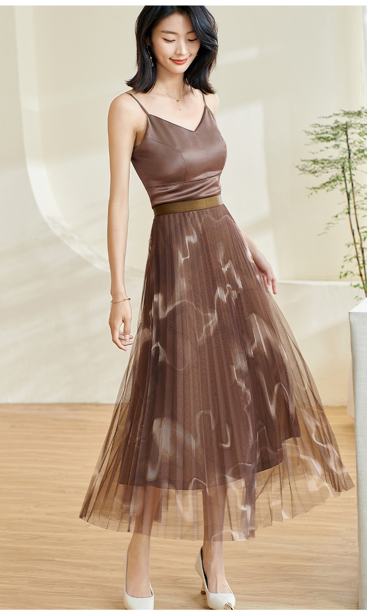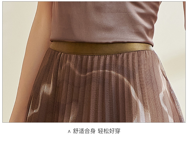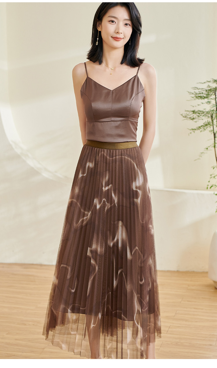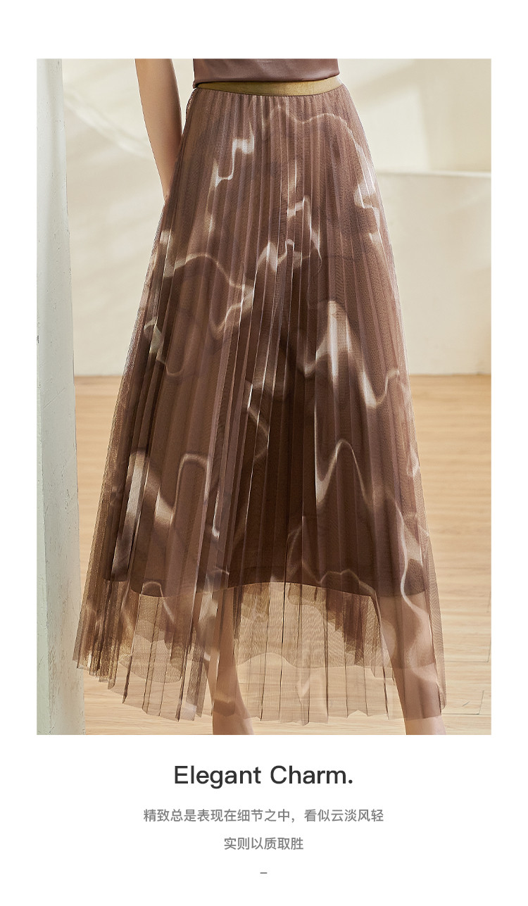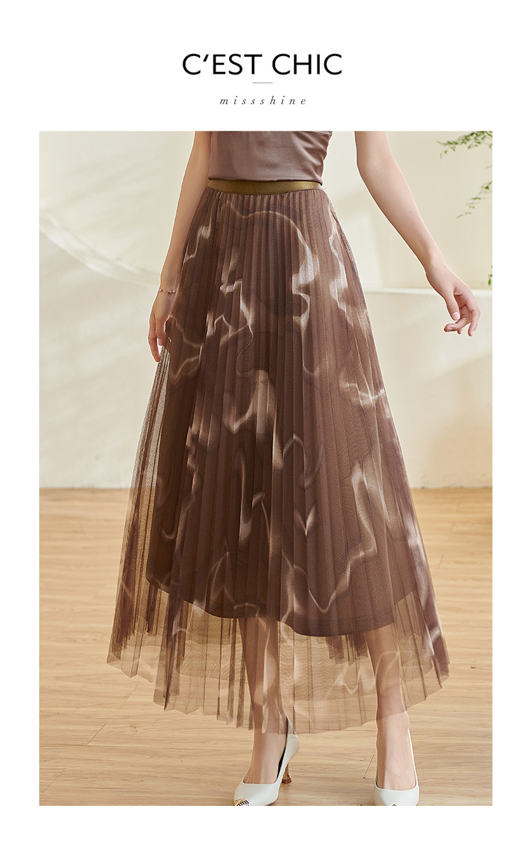 复古气质印花半身裙网纱百褶修身a字裙女0110