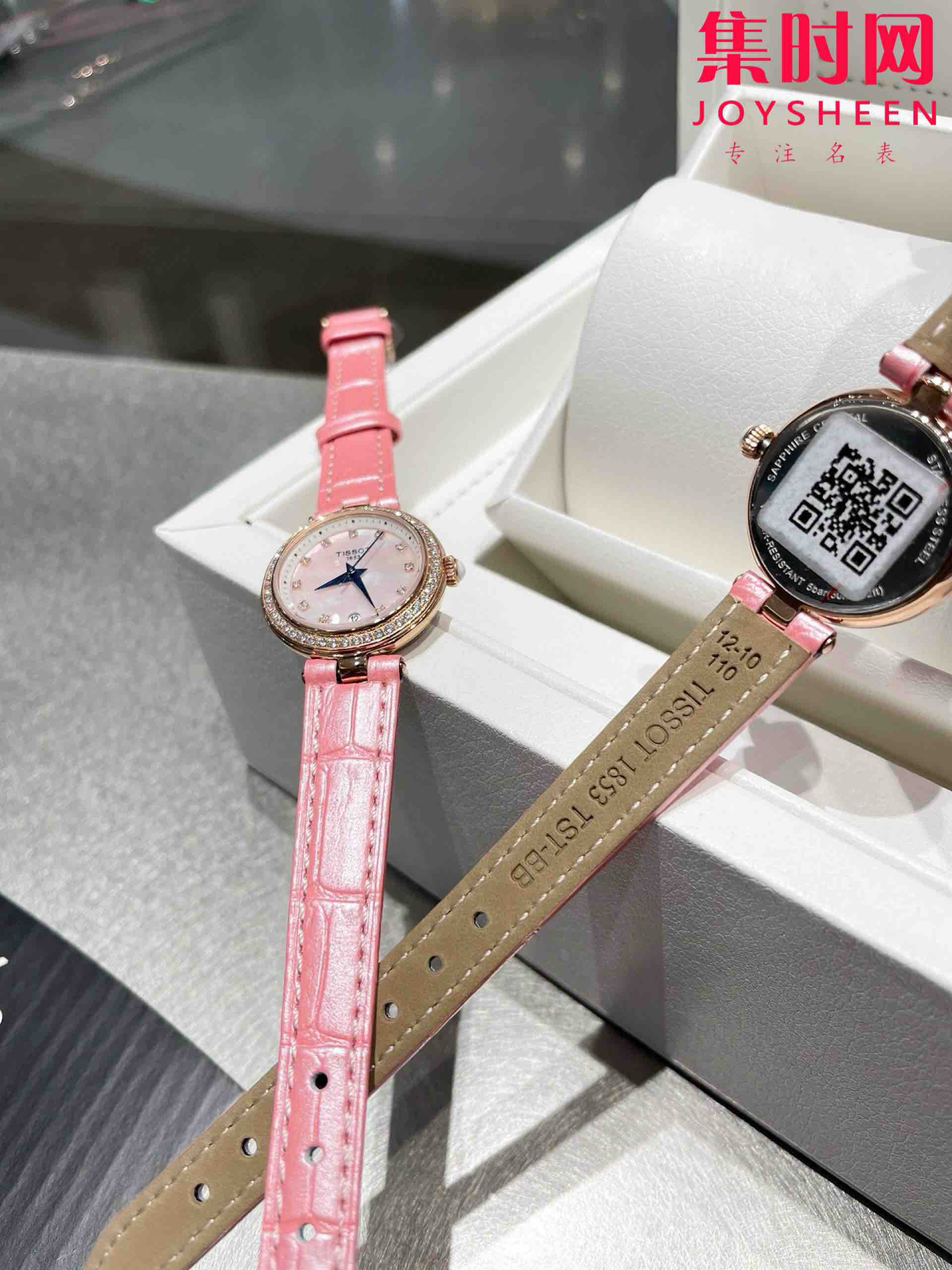 天梭新款嘉丽系列"小美人" 女士石英腕表 整体非常简洁 316L精钢表壳 蓝宝石镜面 表径26mm 很精致小巧,厚度刚刚好!不愧是小美人~戴起来也是非常好看的~值得入手手表之一 316L精钢表带或意大利牛皮表带可选