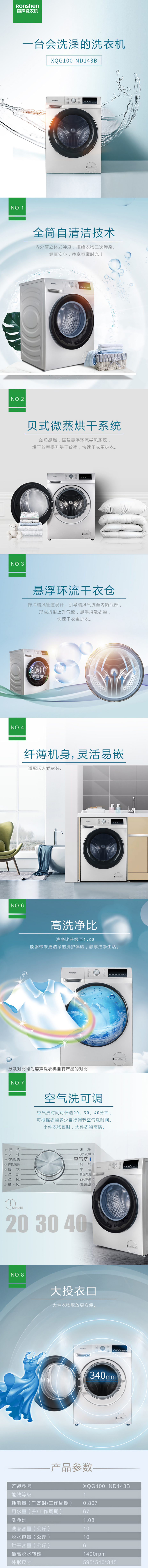 容声(Ronshen) (251999)滚筒洗衣机全自动 10KG洗烘一体 超薄变频 微蒸汽烘干 全筒自清洁 XQG100-ND143B