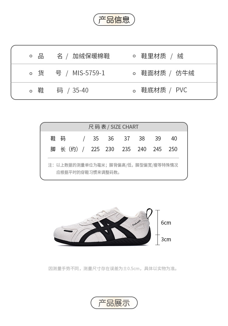 【YW】无忧购复古撞色拼接德训鞋女加绒保暖百搭通勤休闲运动阿甘鞋MIS-5759-1(截单后3-5天发货)