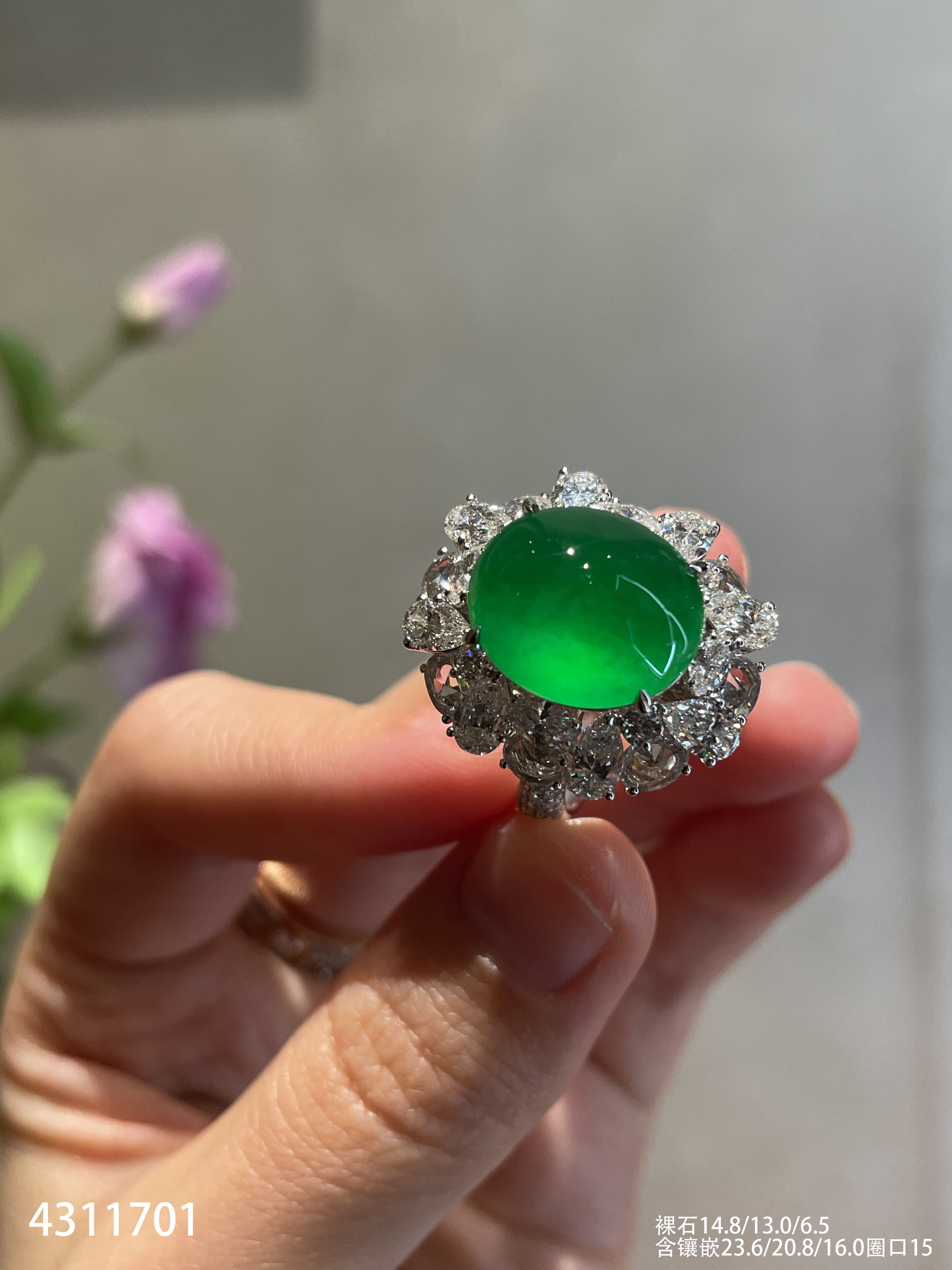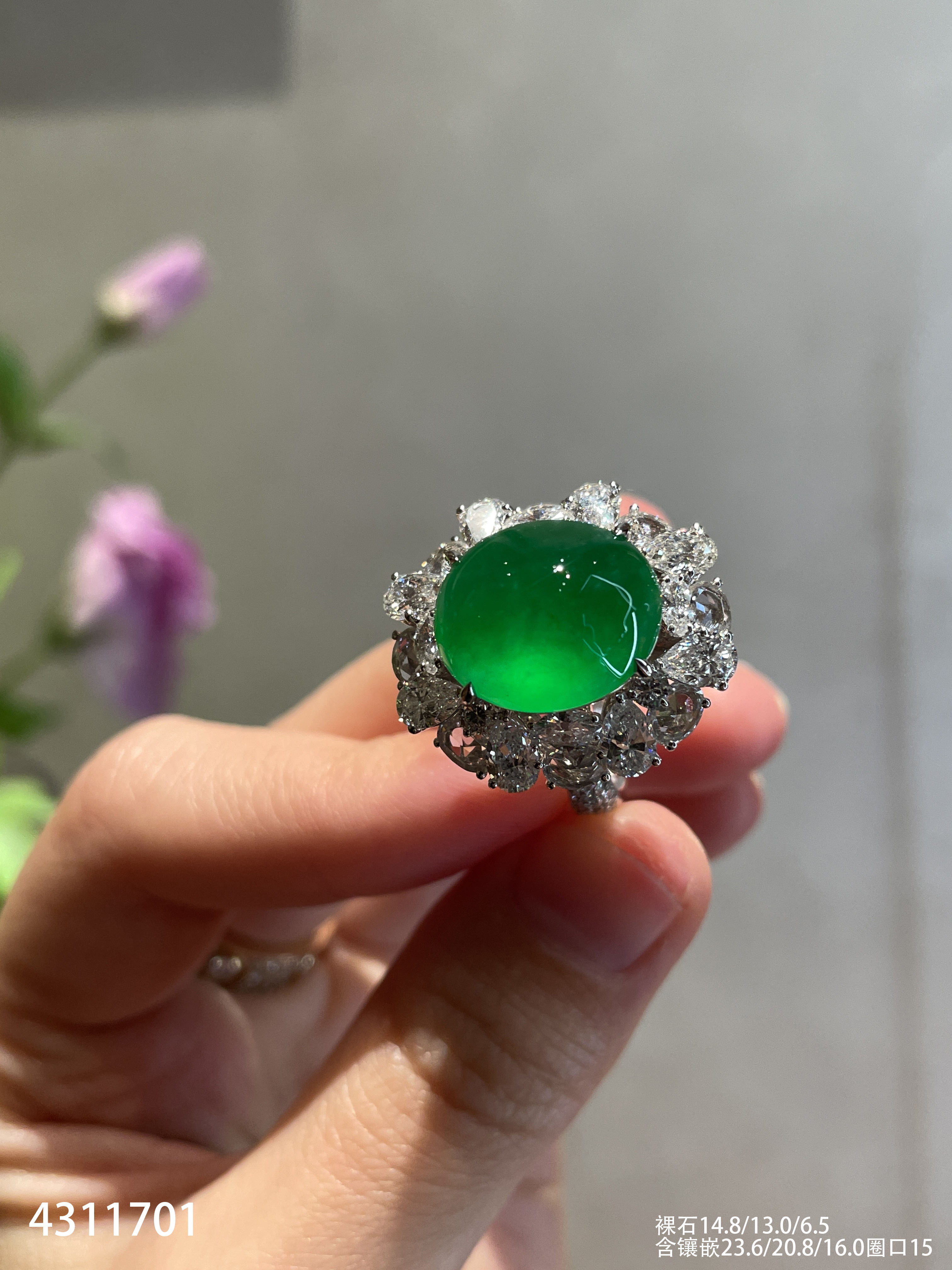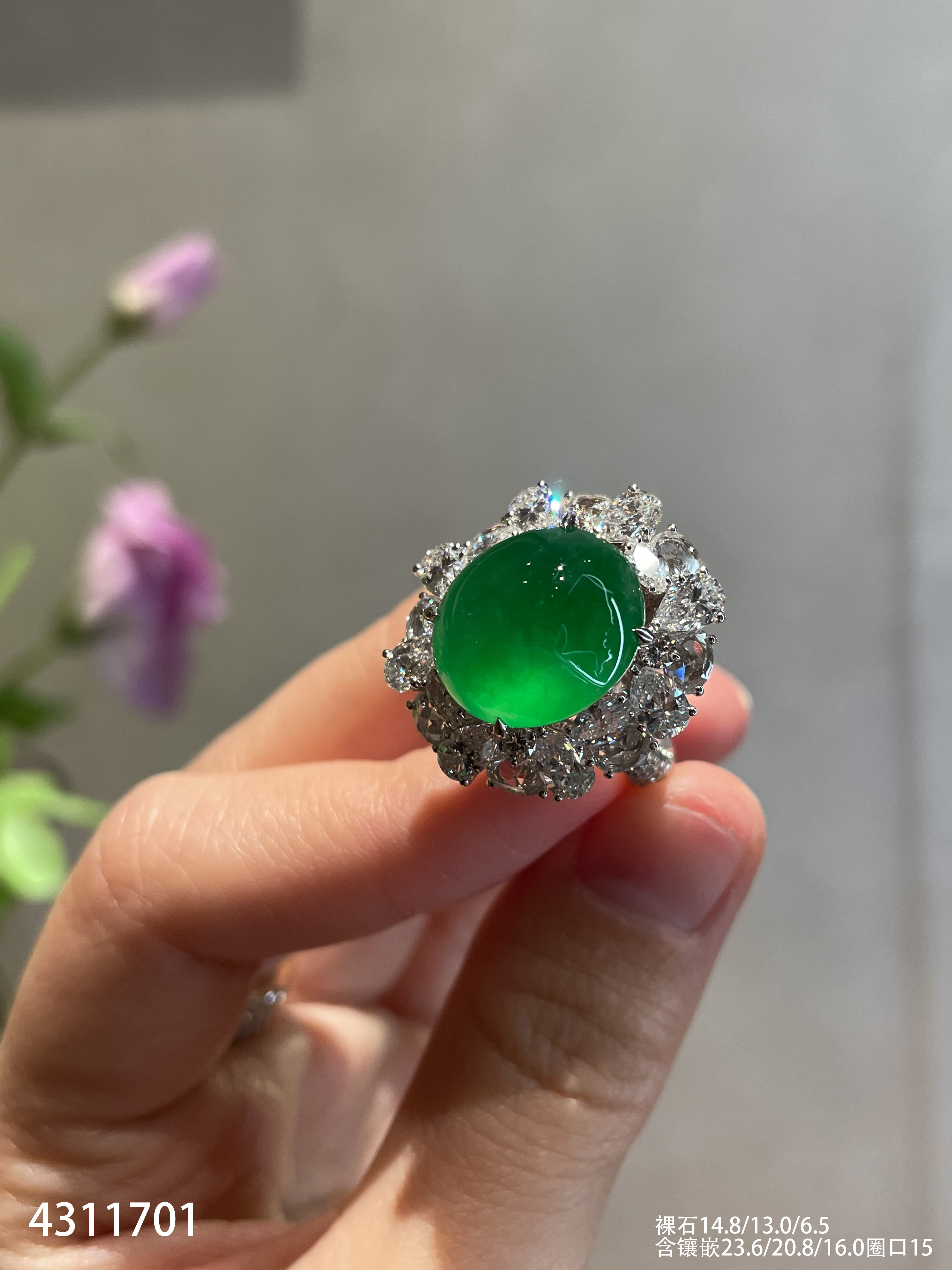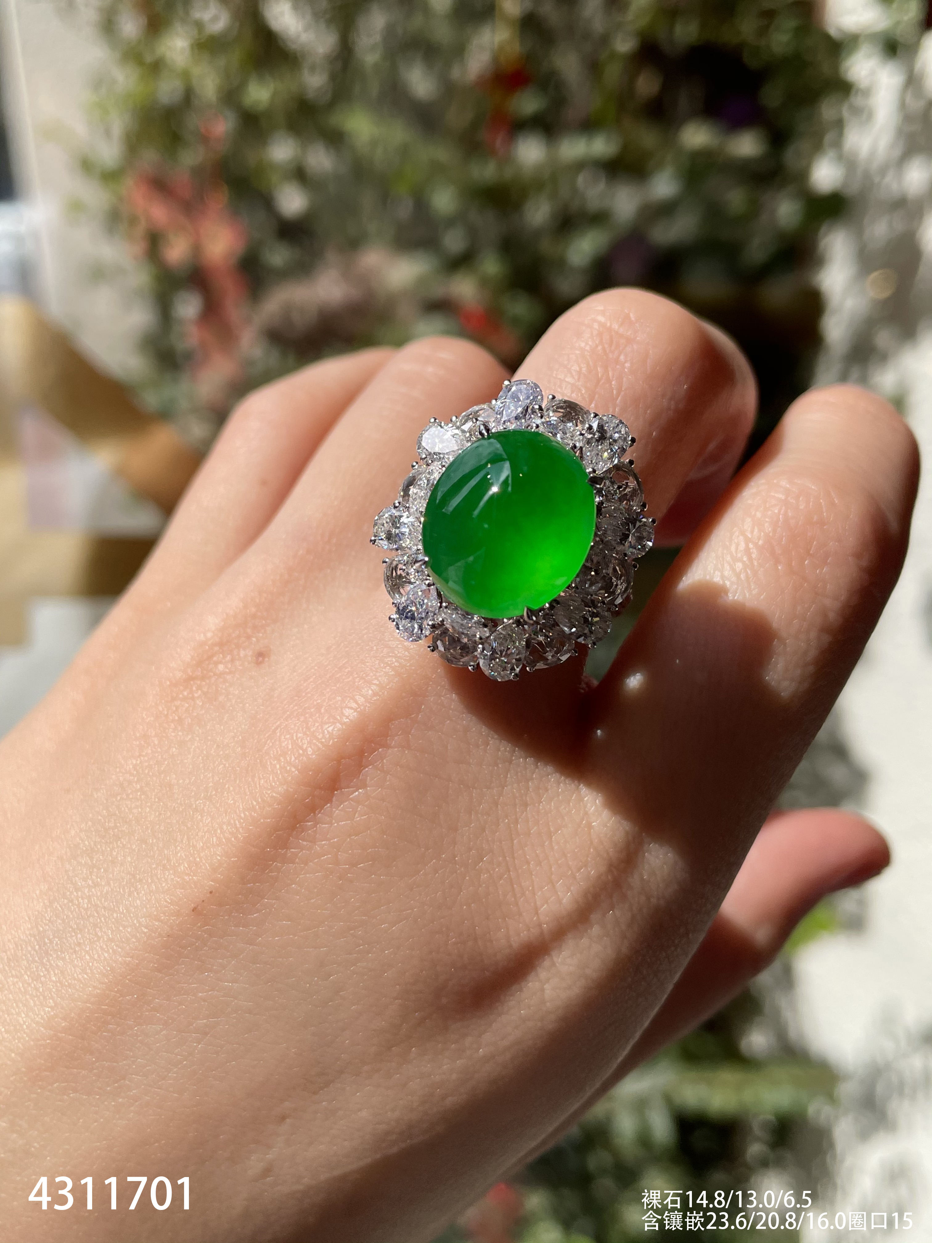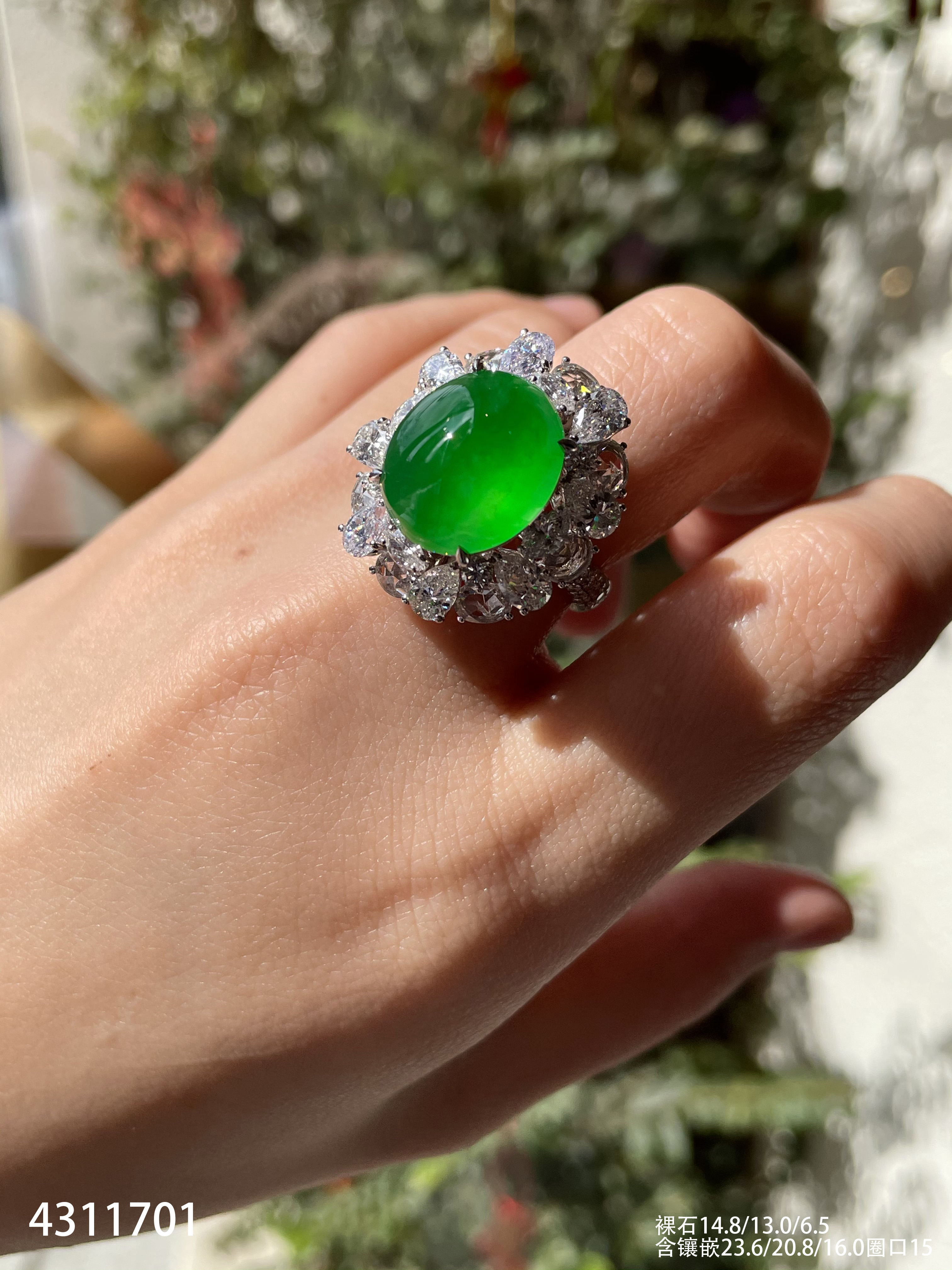 玻璃种黄阳蛋面戒指【4311701】具体价格微信咨询
