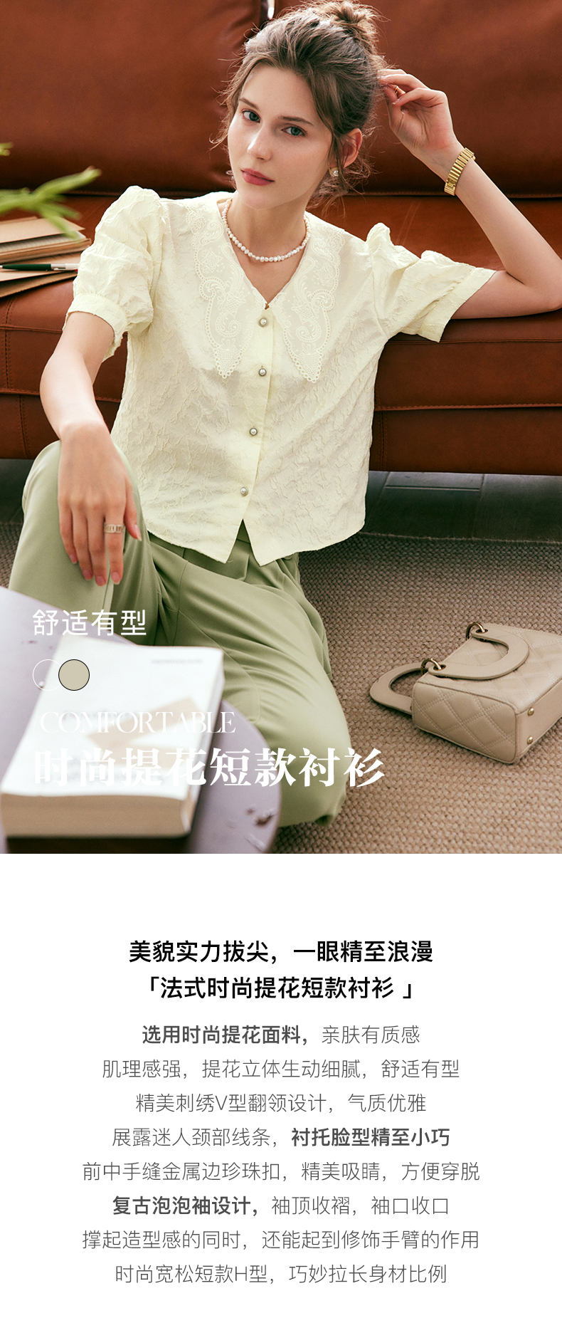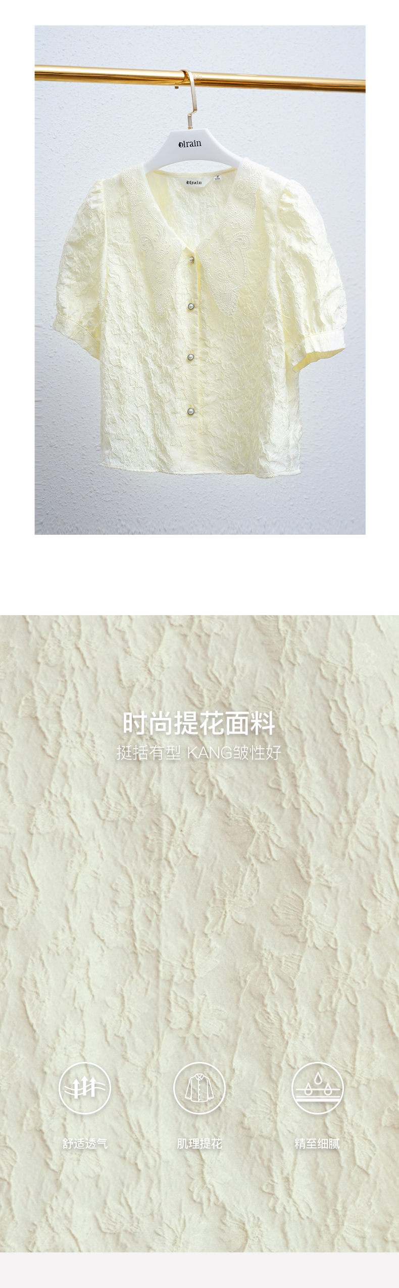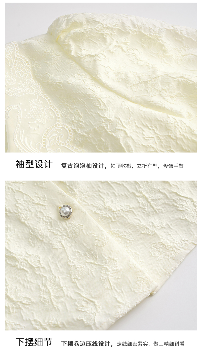 OLrain法式高级穿搭提花衬衫女夏季2022新款复古短款肌理优雅衬衣