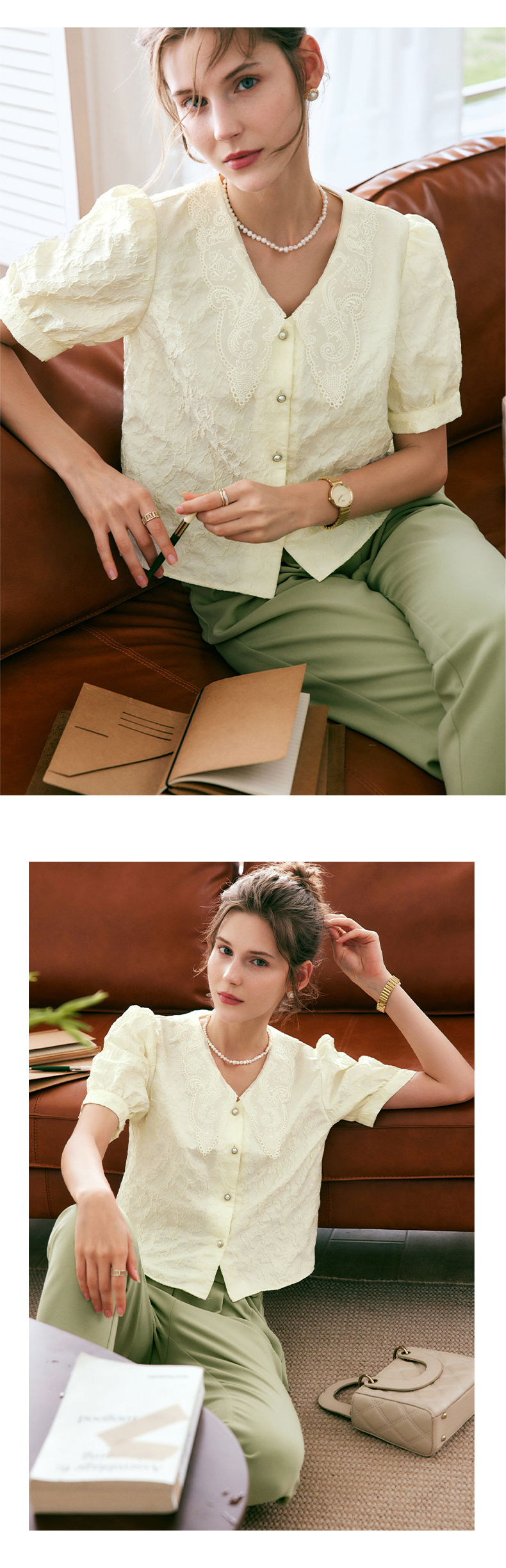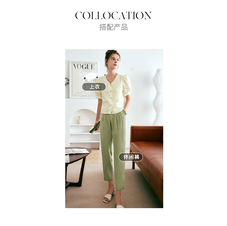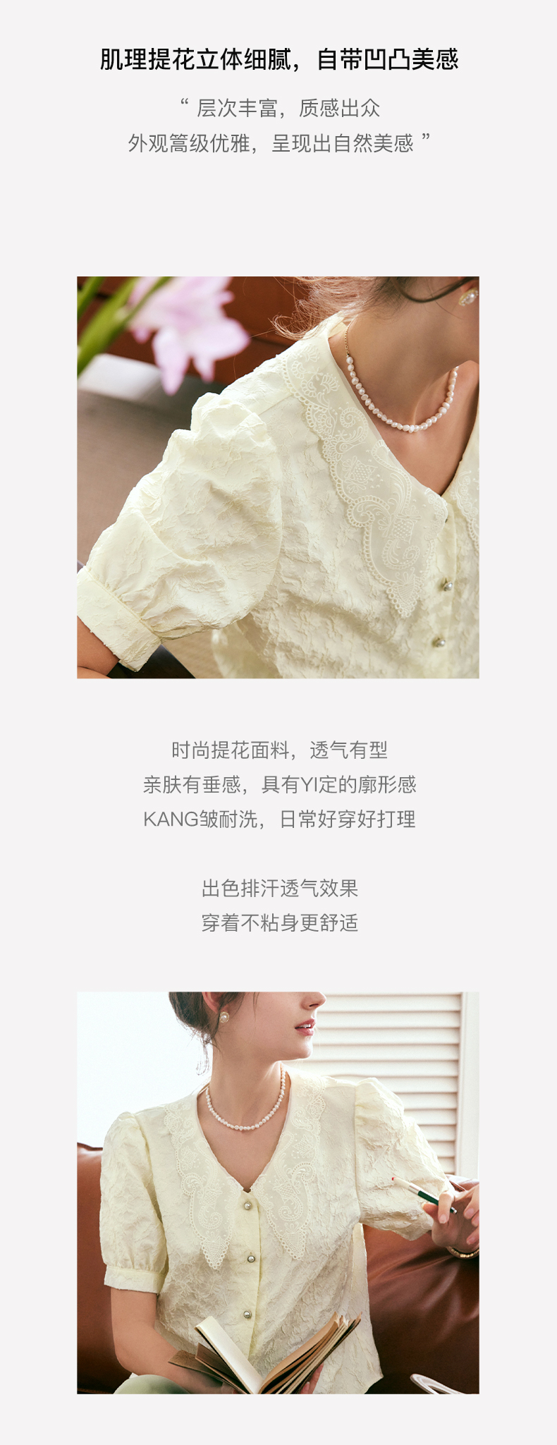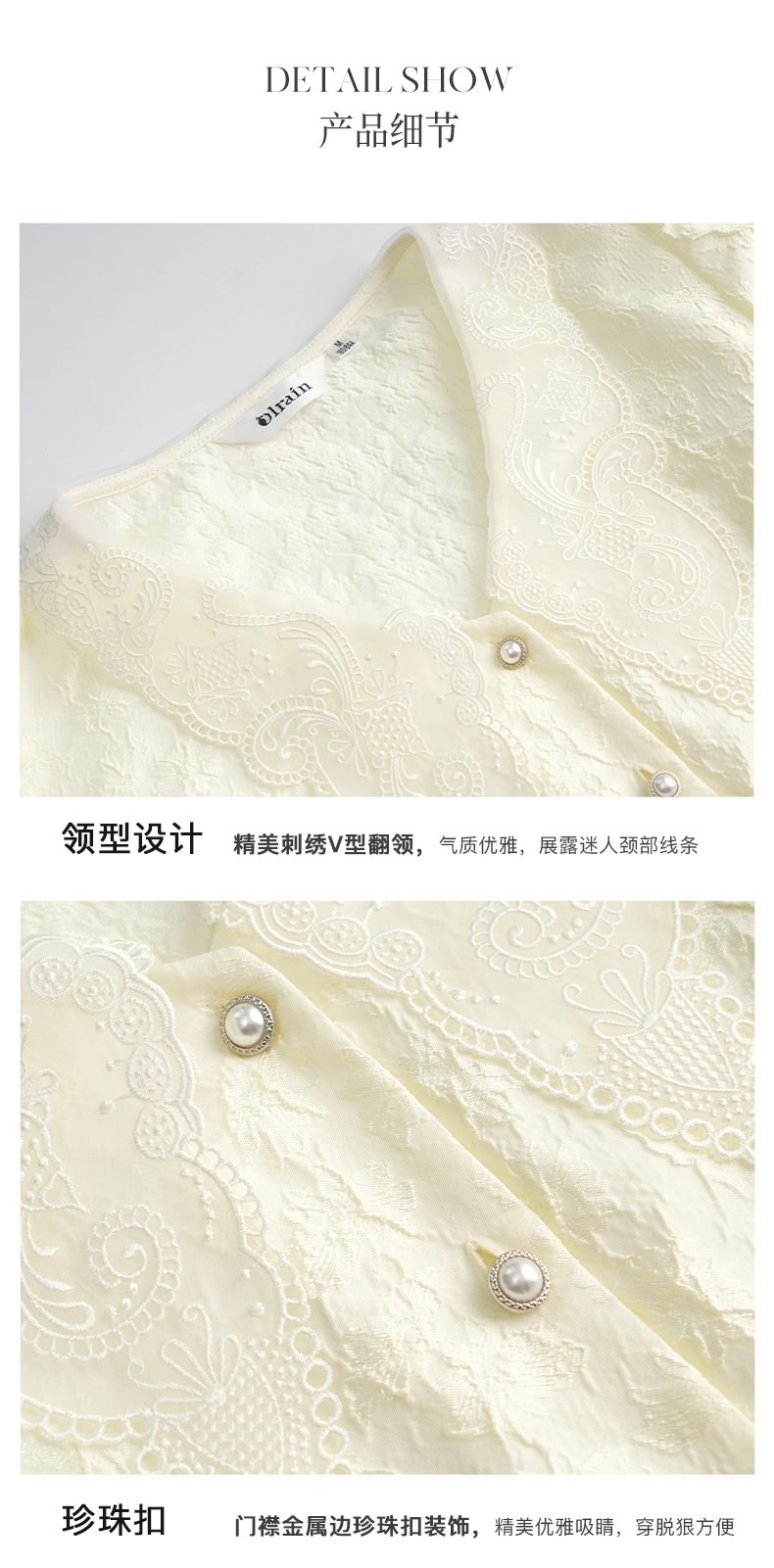 OLrain法式高级穿搭提花衬衫女夏季2022新款复古短款肌理优雅衬衣
