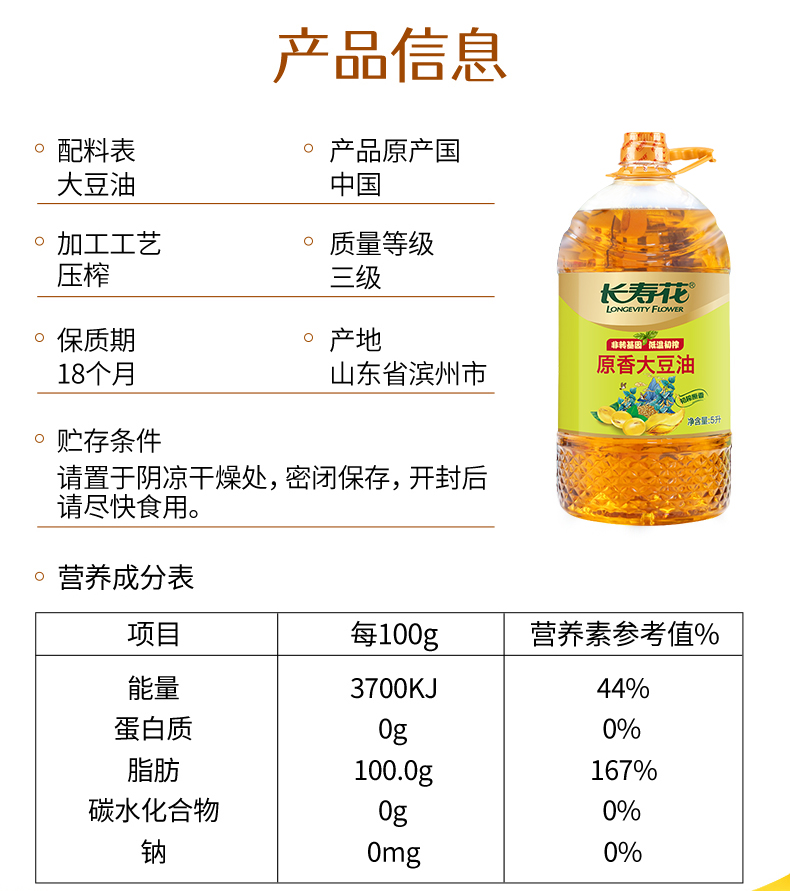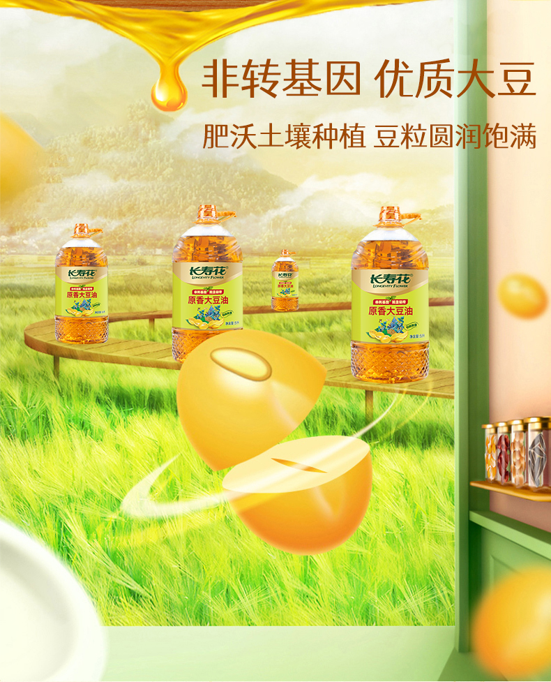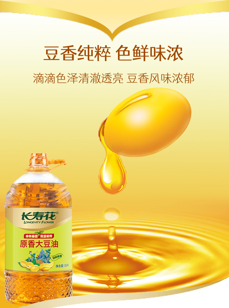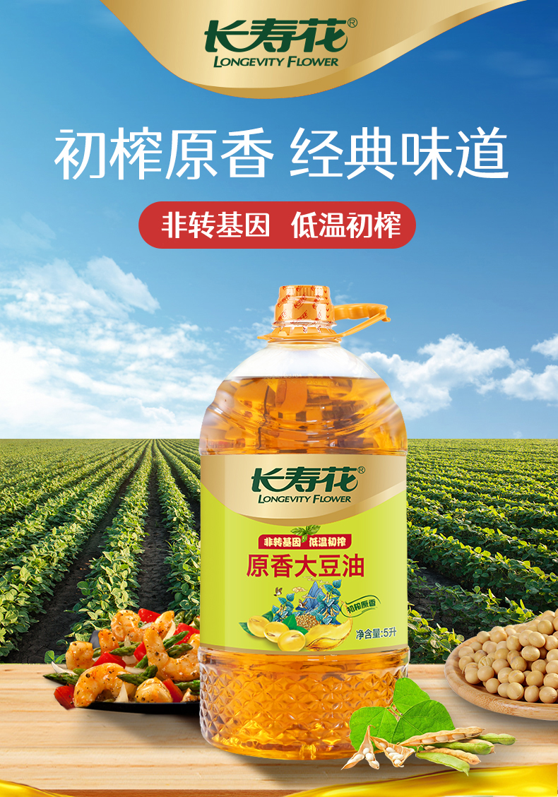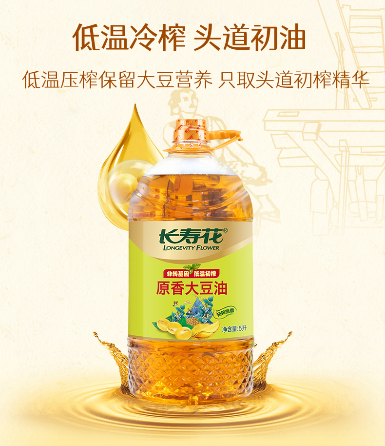 长寿花低温初榨原香大豆油5升非转基因 压榨三级大豆油5L