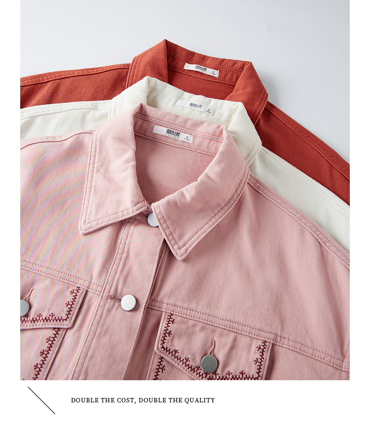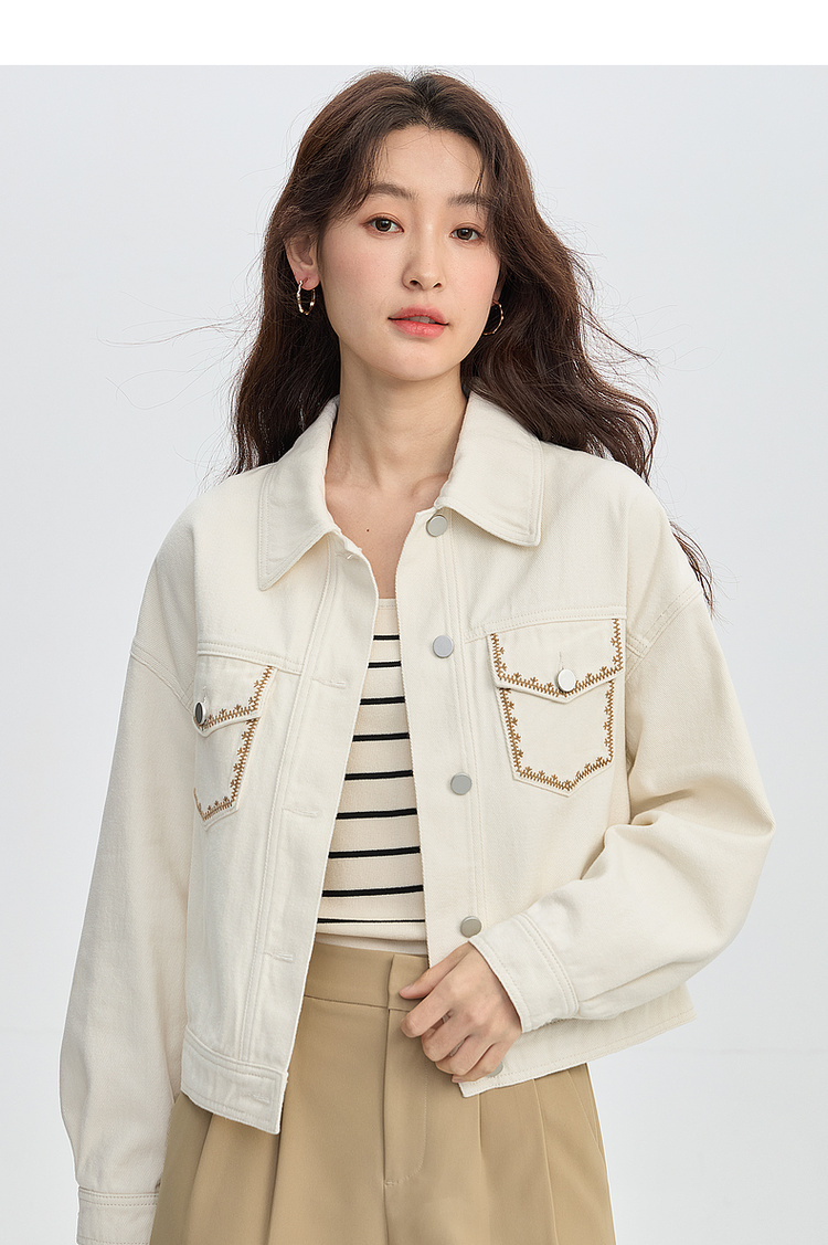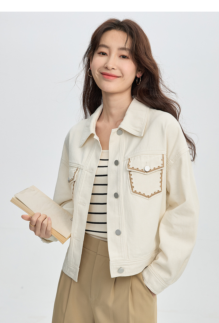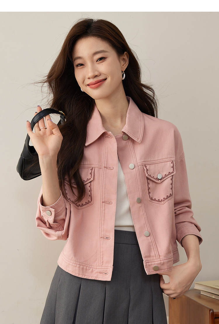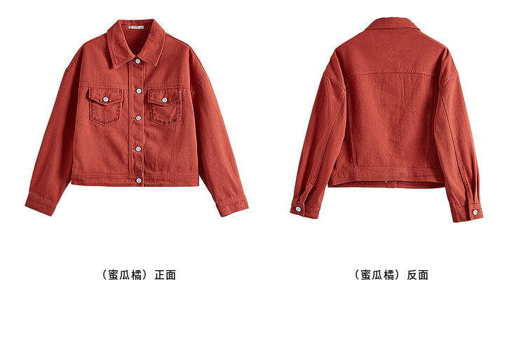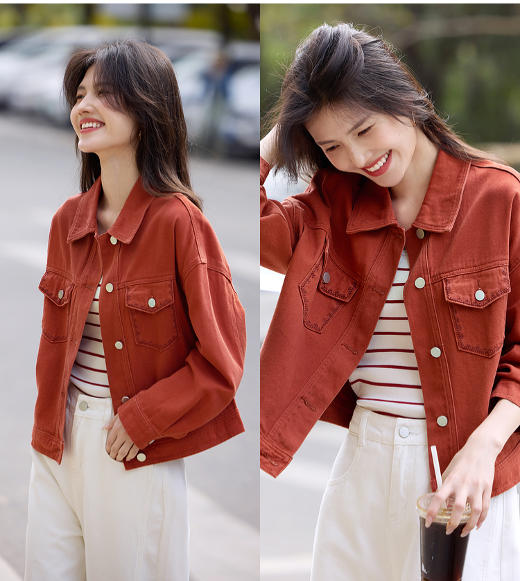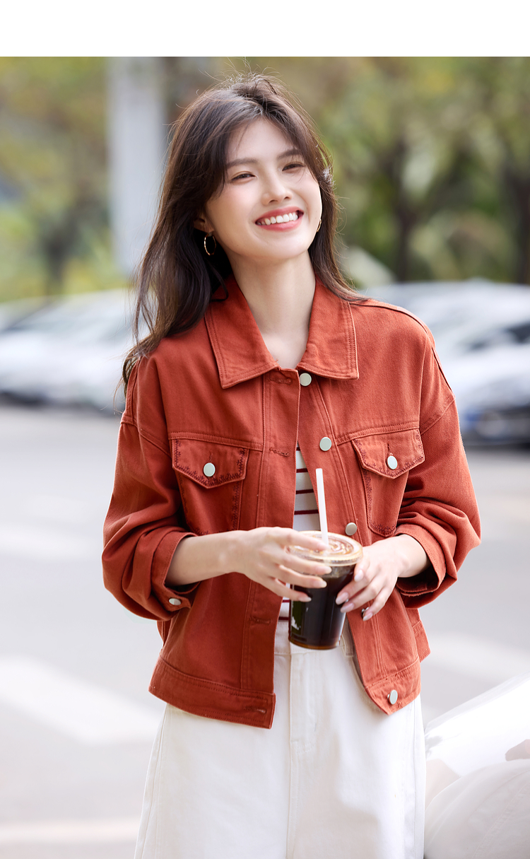 【年货节】熙世界巴恩风刺绣牛仔外套女短款小个子橘色夹克上衣2025春装新款
