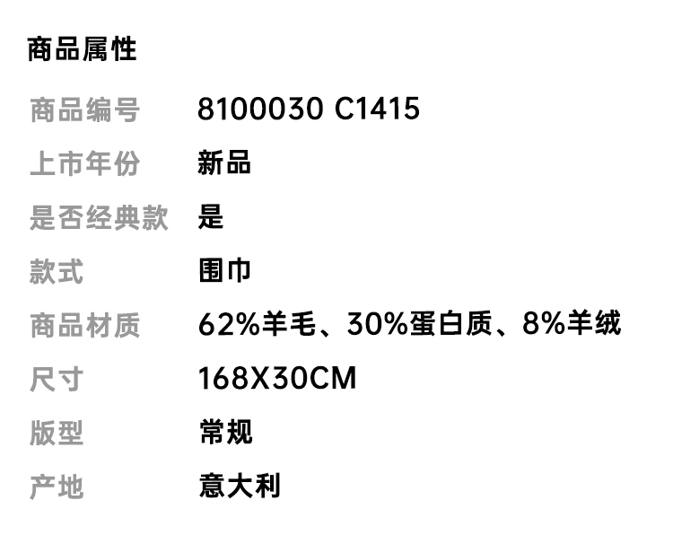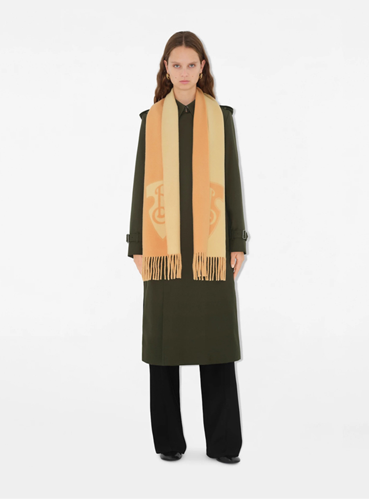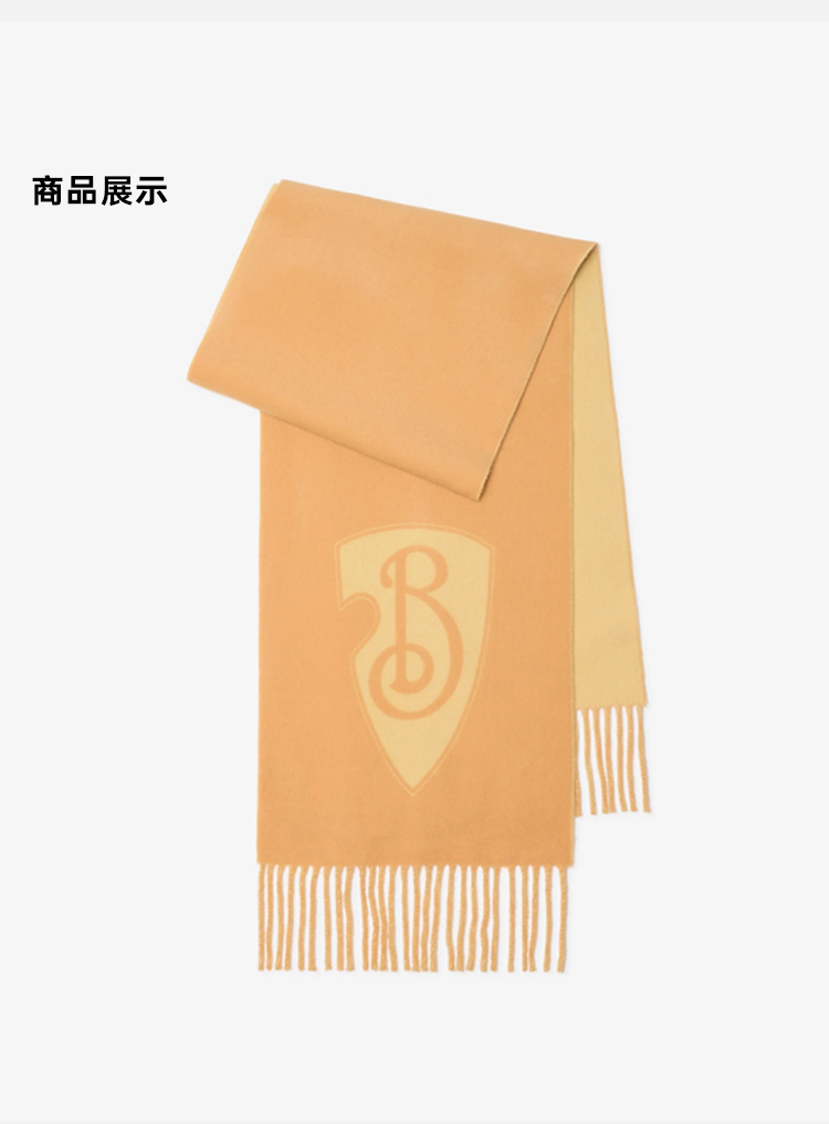 BURBERRY 巴宝莉 男女同款B Shield Wool Brewed Protein™ 羊绒混纺围巾 浅黄色 8100030 C1415