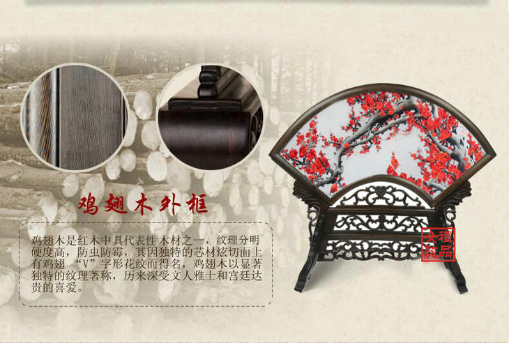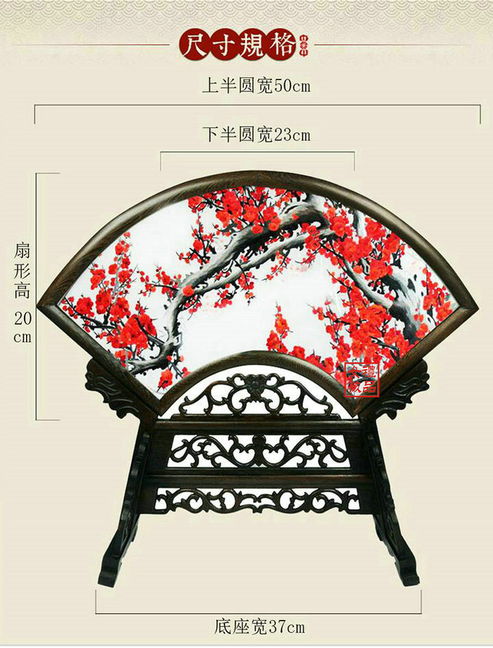 凯崎湘绣 双面绣台屏摆件 梅花竹子扇形摆件 纯手工古风刺绣 出国送礼 兰花竹林 山水绣品