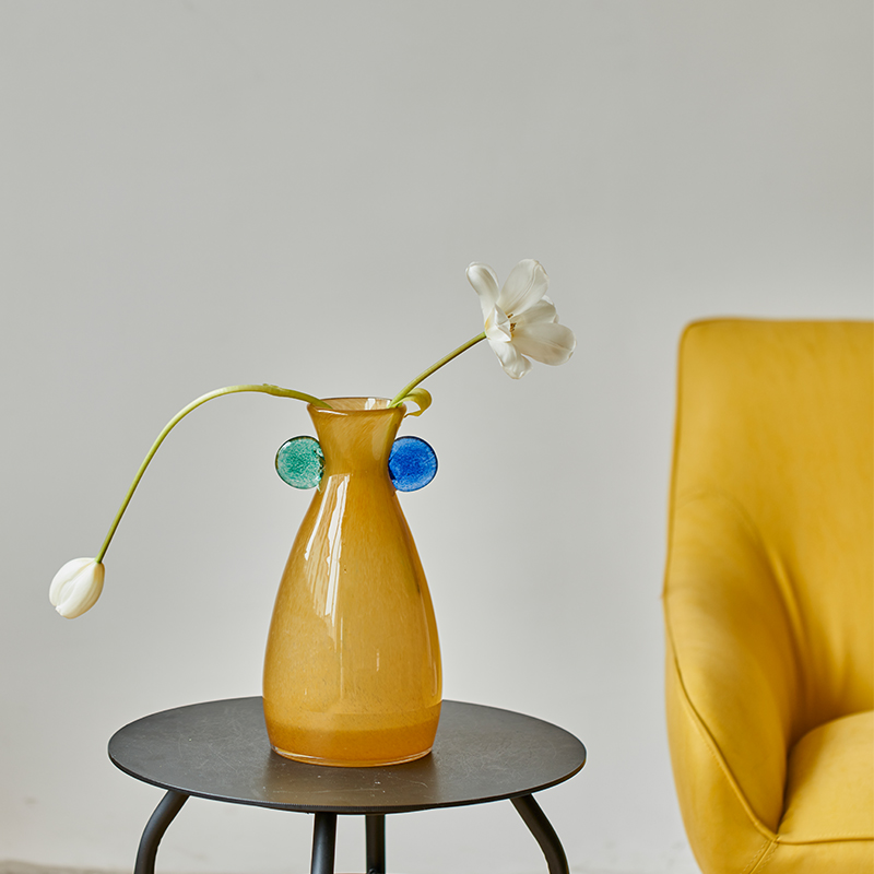 碧轩新品手工双耳渐变中古风小口花瓶餐桌电视柜鲜花台面软装饰品