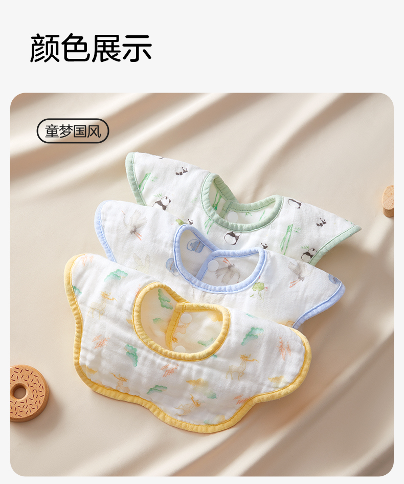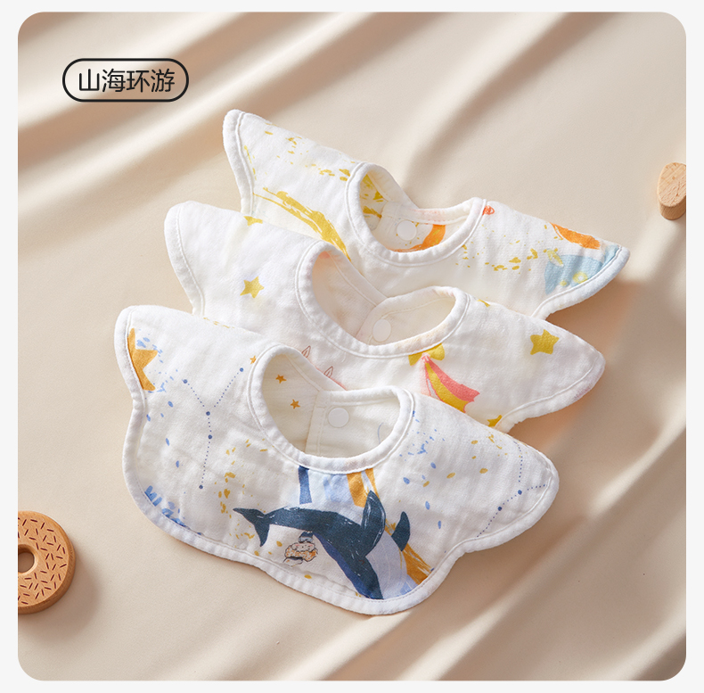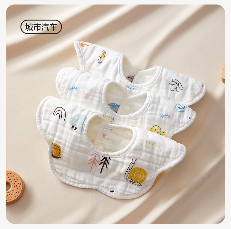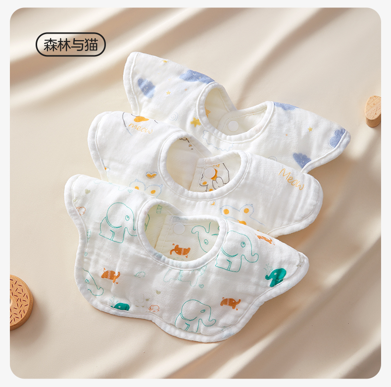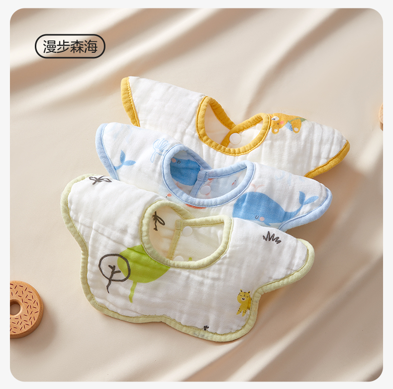 宝宝围嘴吃饭口水巾纯棉围兜防水新生婴儿可旋转春秋季