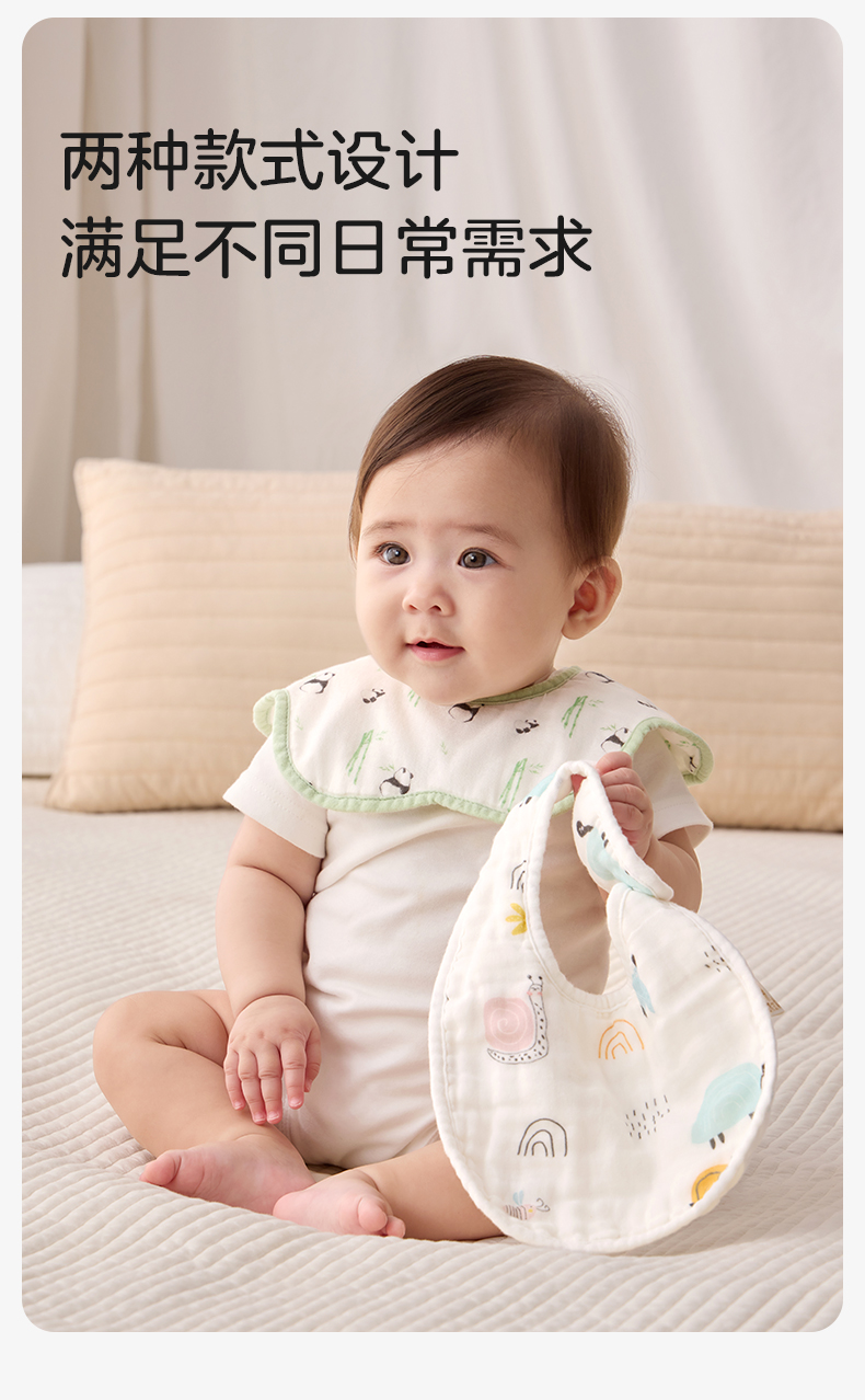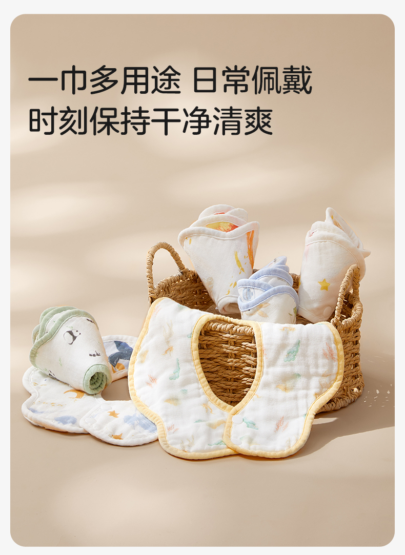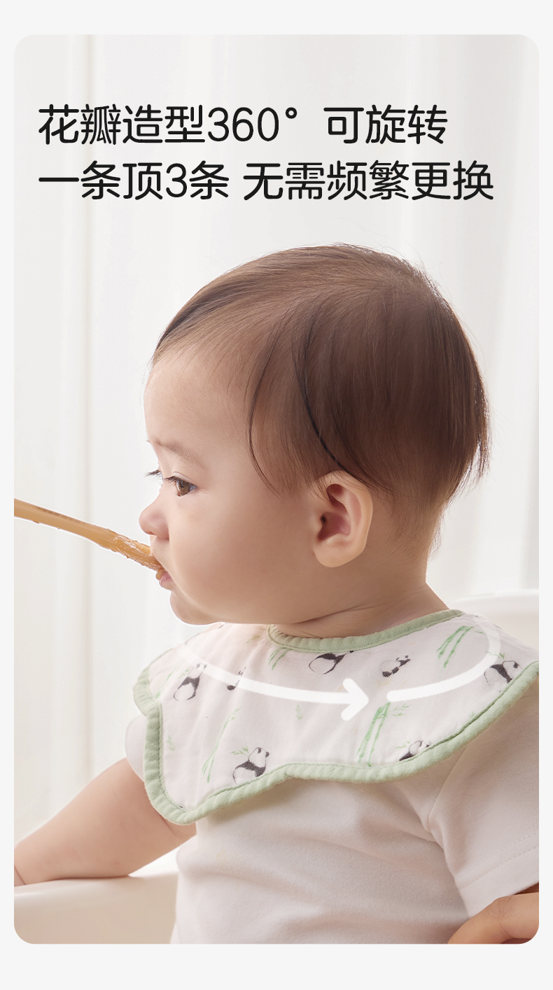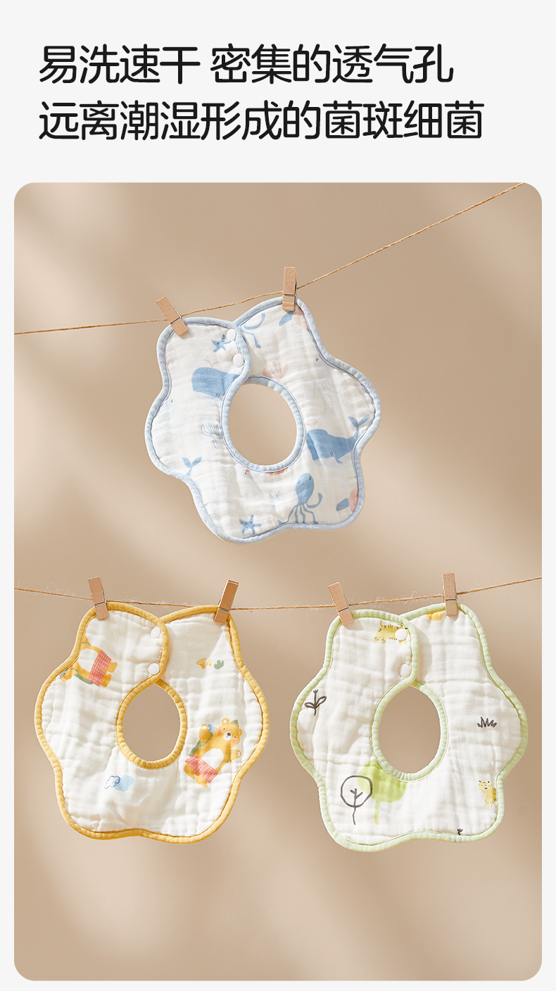 宝宝围嘴吃饭口水巾纯棉围兜防水新生婴儿可旋转春秋季