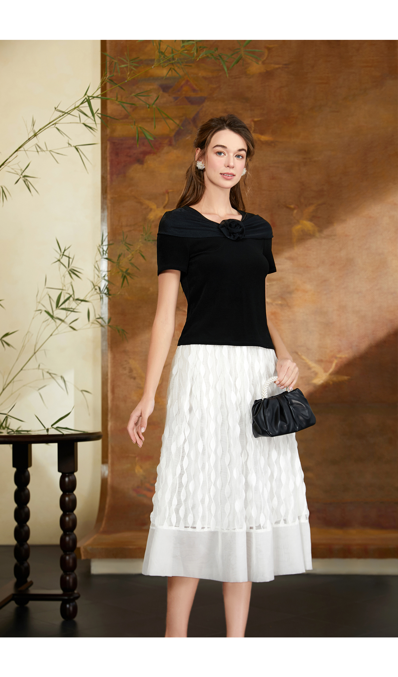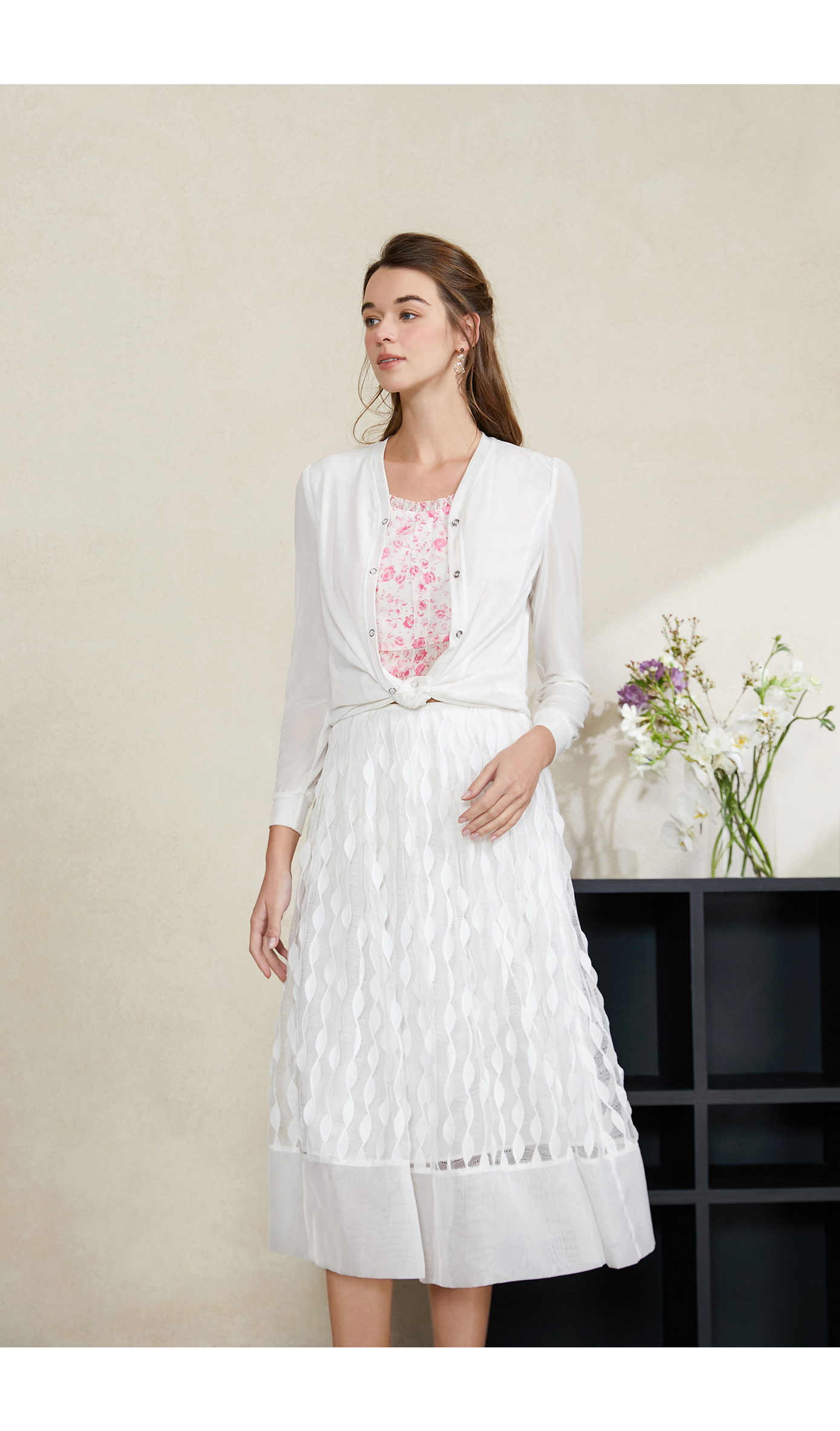 司歌重工烧花仙气白伞裙C911298X