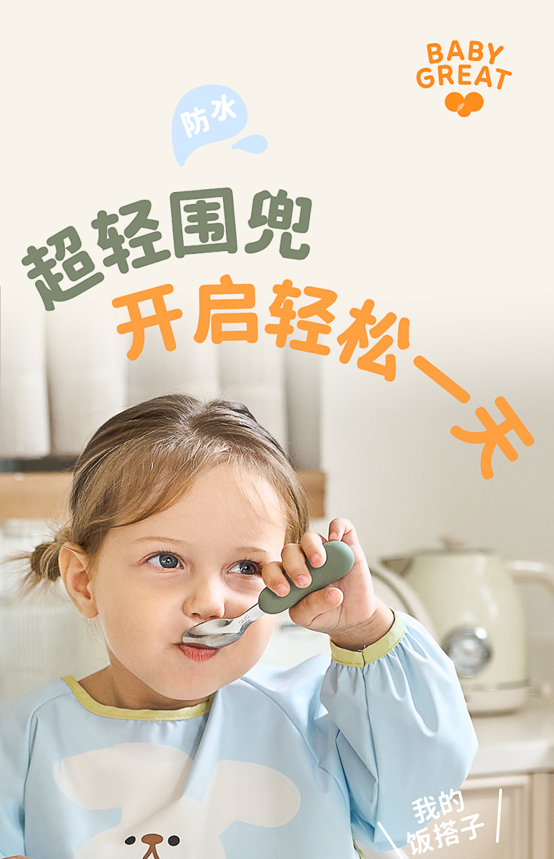 【BG】 BabyGreat宝宝吃饭围兜婴儿罩衣幼儿园防水兜罩衫反穿衣