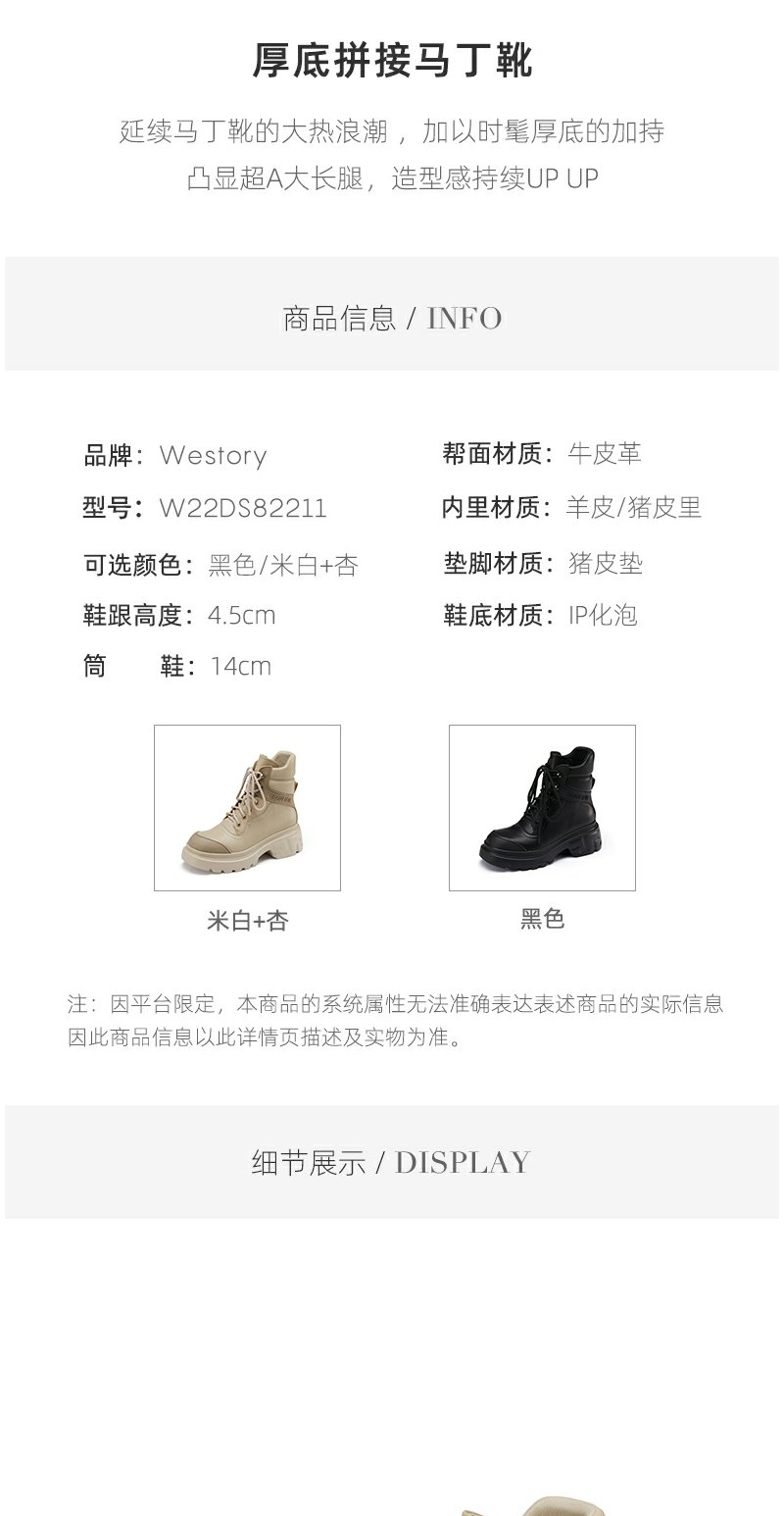 westory22秋冬新款潮酷工装靴马丁靴街头女户外皮靴82211